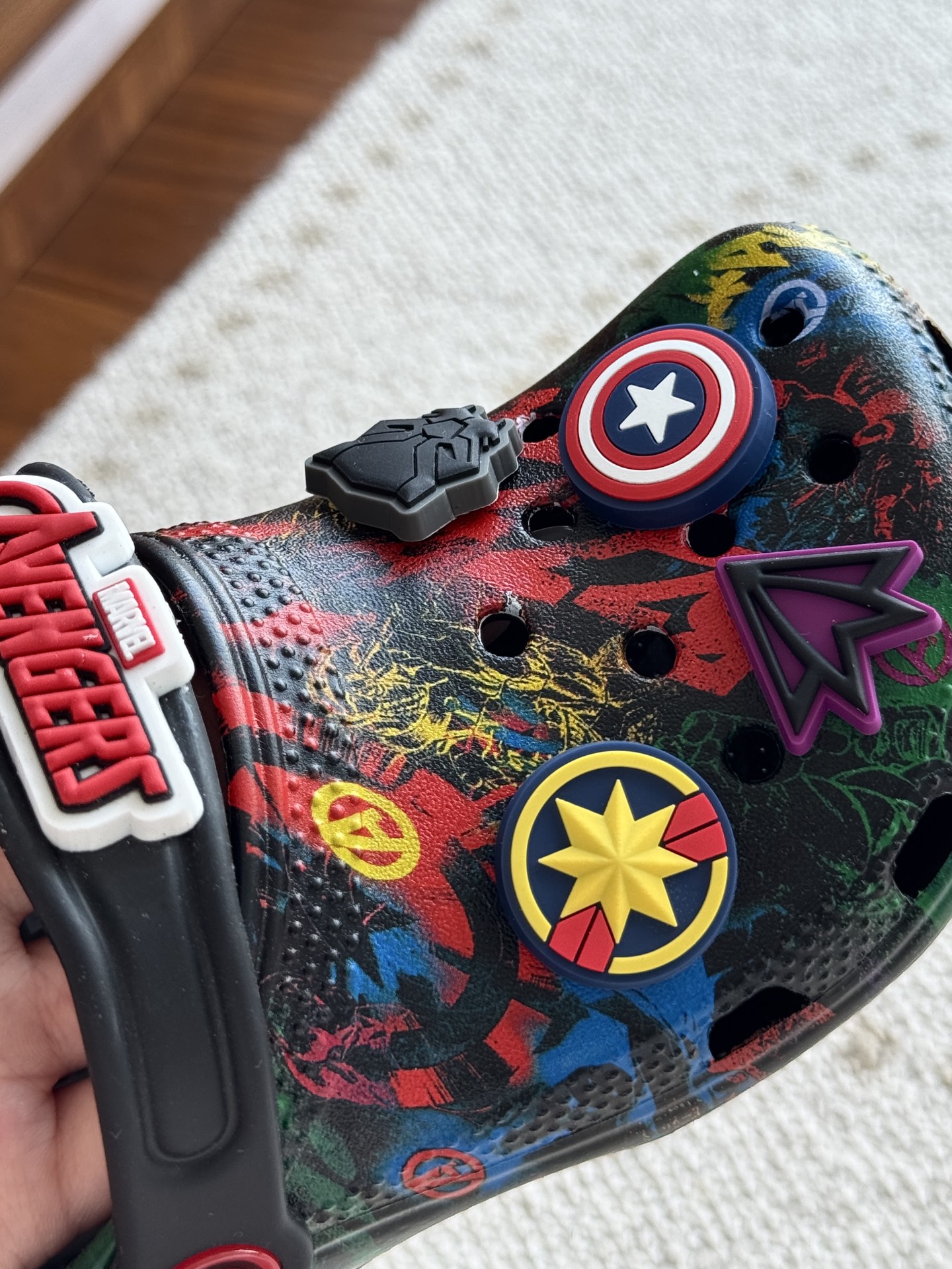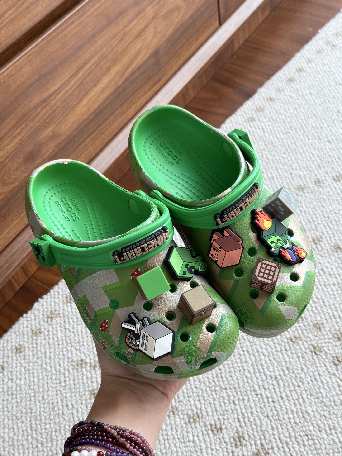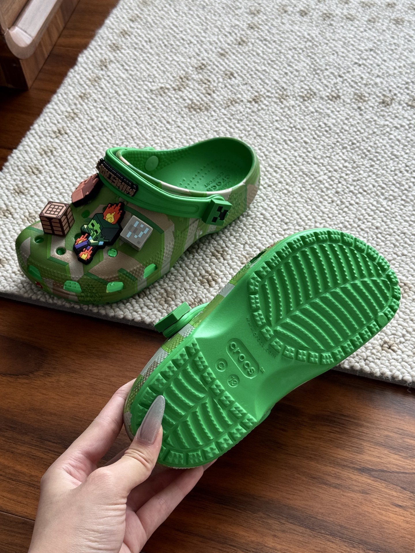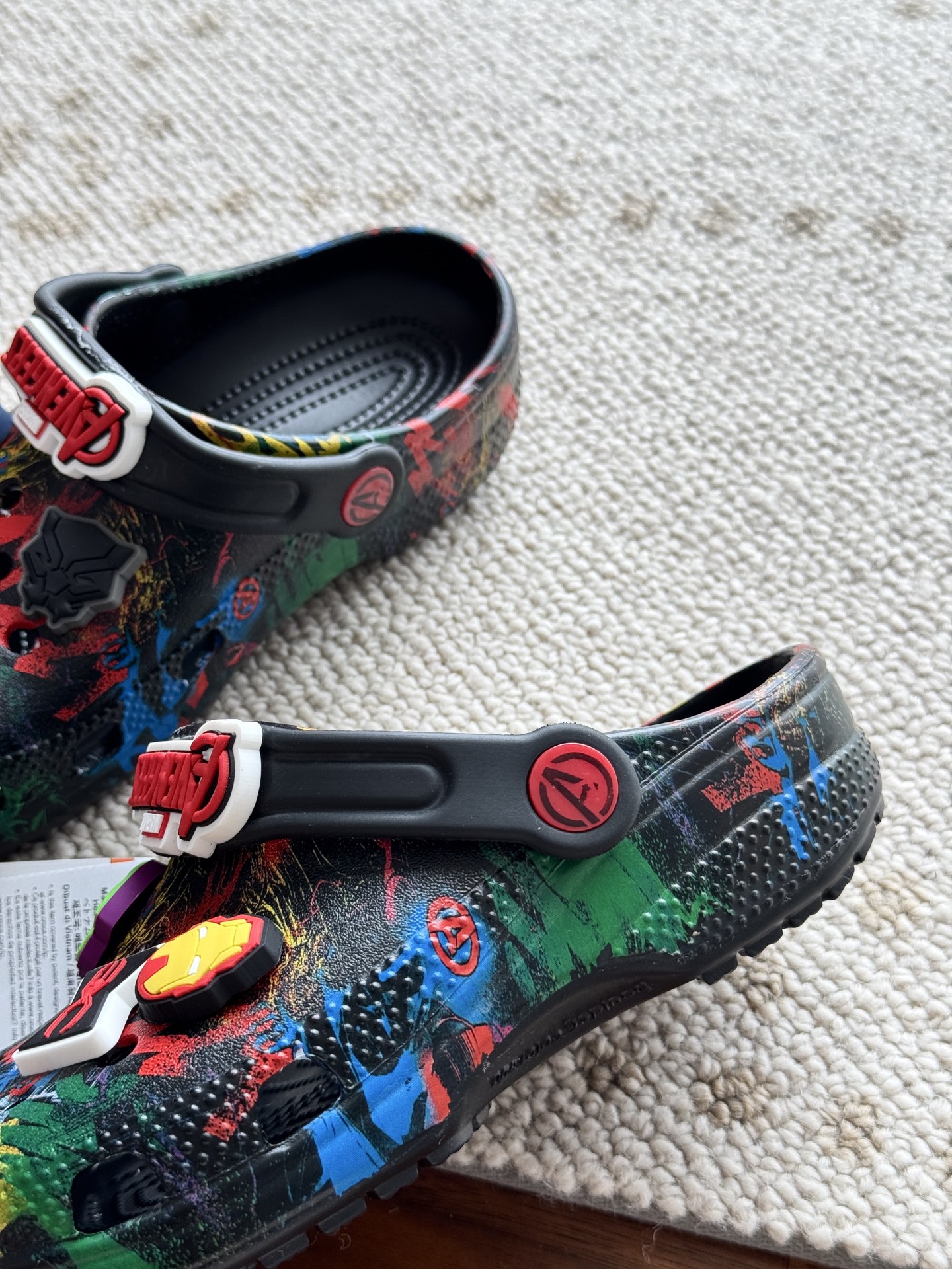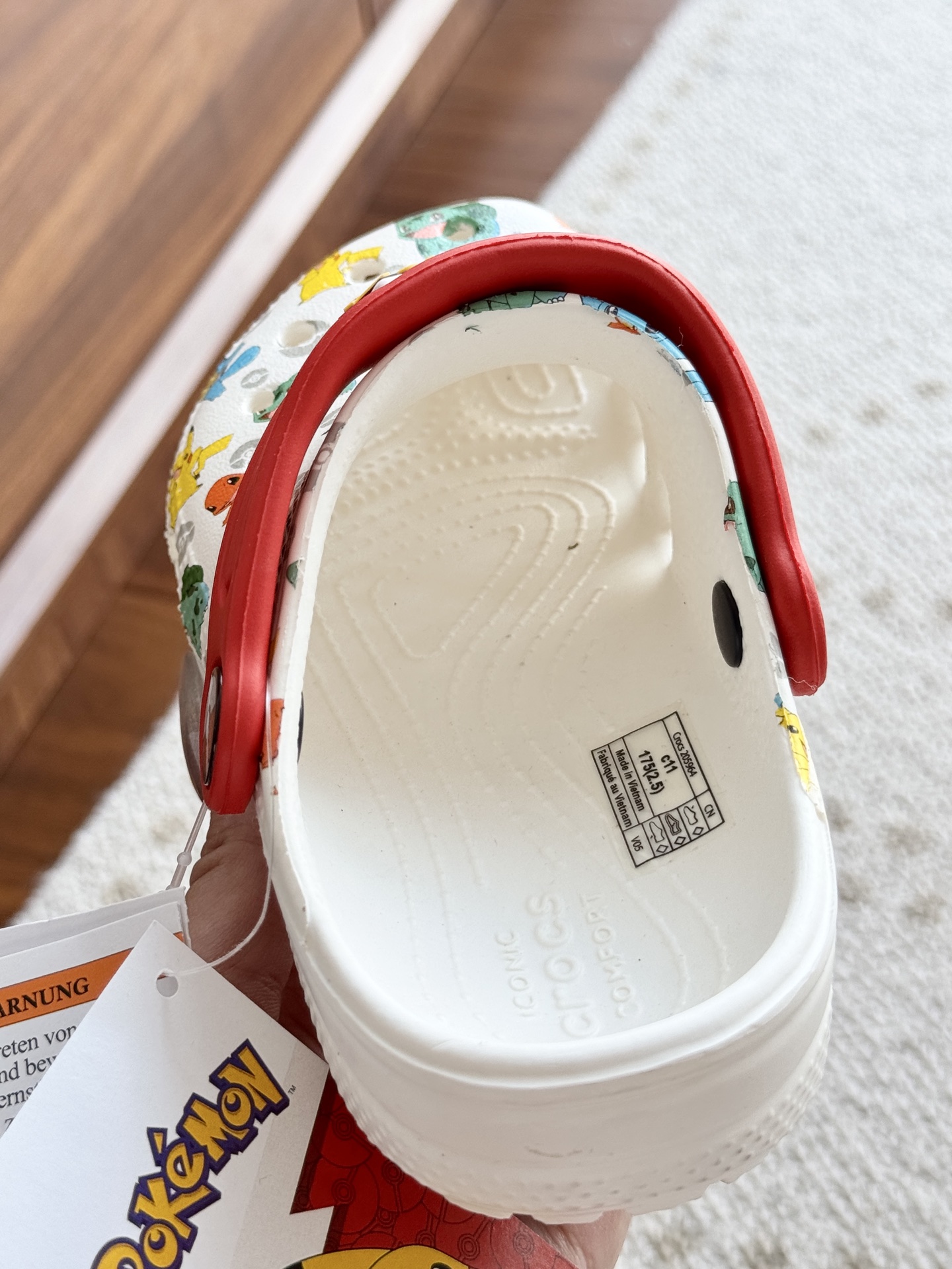 给宝贝的东西, 都是用的环保Croslite材料,封闭式细胞树脂, 能够在体温作用下自动变形以适应脚部形状。 提供轻质缓冲和舒适性,易于清洁,抓地力强, 不易打滑符合人体工学,鞋垫软弹有支撑注意看鞋内纹理,好不好自己去感受每一个都值得你细品 真材实料!很柔软鞋身全是通风洞洞,夏天脚丫秒散热,搭配可调后跟带,当凉拖或踩跟穿都行,一鞋两穿超灵活!Croslite™特殊的封闭式细胞树脂材质,能够在体温作用下自动变形以适应脚部形状,这也是洞洞鞋最好穿的细节!