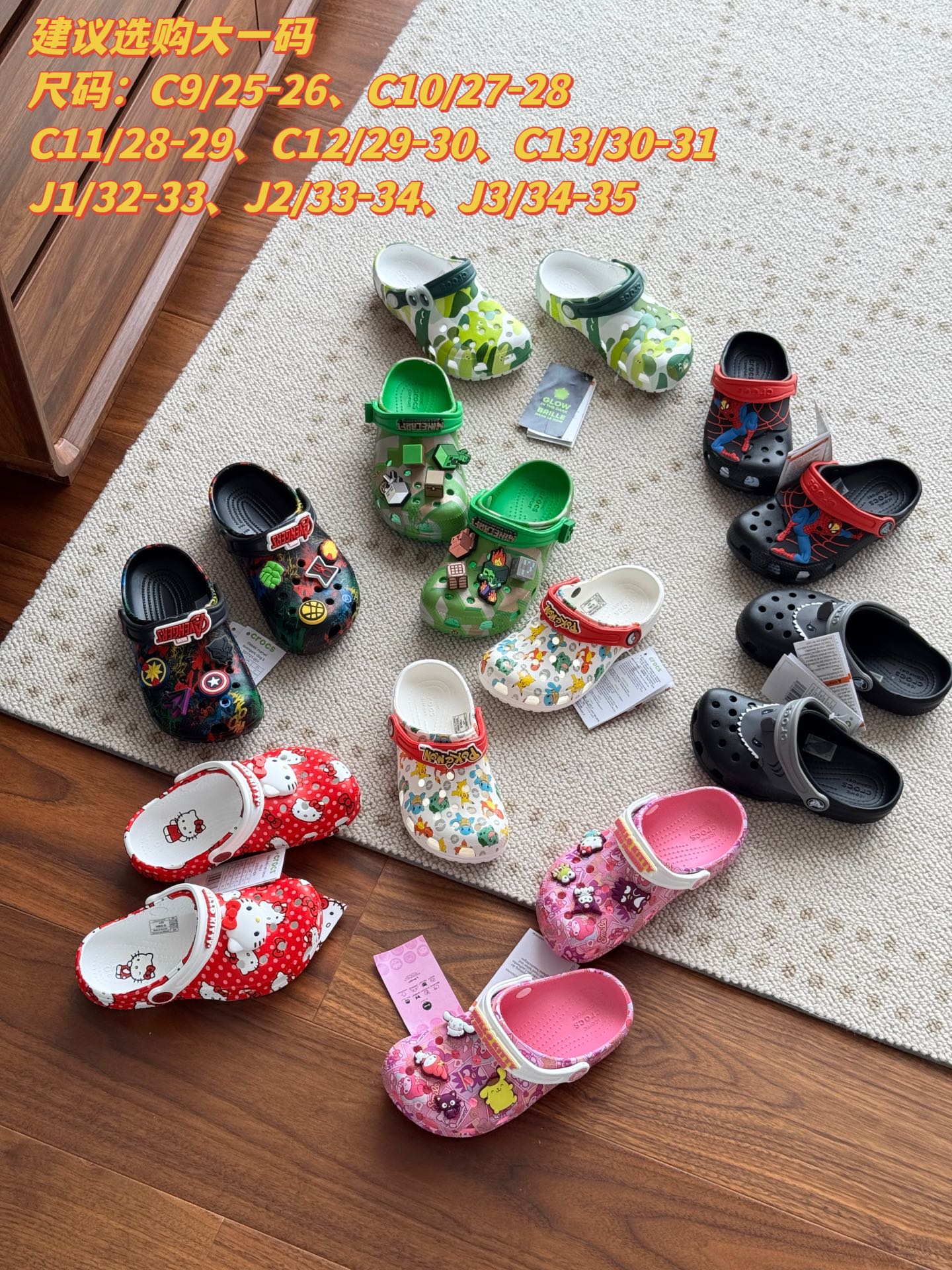 Croc*卡&驰 儿童洞洞鞋 男女款 ‼️纯原正单! 纯正单❗️Crocs 卡洛驰儿童洞洞鞋这次都给你们安排齐了,超多宝宝都在穿的洞洞鞋,儿童夏季必备!整一批全部都是订单线的原装货, 细节工艺和大家大几百入手的 没有丝毫区别 每一双都配有原包装的, 送人自留都OK! 超级舒服的洞洞鞋, 一整个夏天穿这一双就OK,搭配性超级好,可以当拖鞋、还可以当凉鞋,超级舒服的特供材质,柔软回弹、韧性十足,随意怎么穿都不卡脚⚠️建议选购大一码 尺码:C9/25-26、C10/27-28、C11/28-29、C12/29-30、C13/30-31、J1/32-33、J2/33-34、J3/34-35