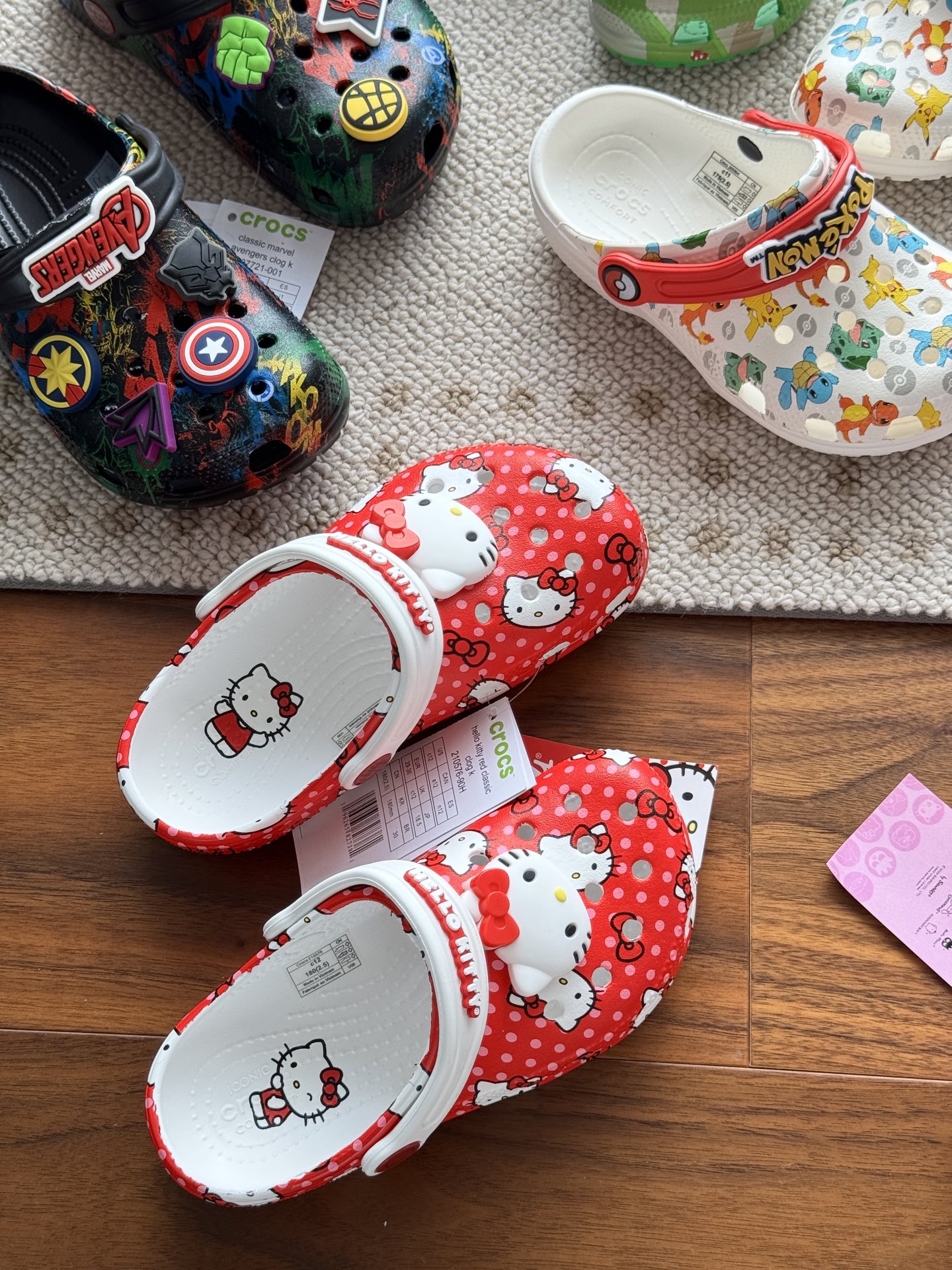 越穿越舒服无论是男女宝都爱的卡通款!还有男宝专属的酷酷联盟系列,也有萌化人心的kitty系列!赶紧为宝贝挑几双,让宝贝在节日里穿上新鞋,开心加倍吧 官网在售300+软妹币! 老渠道!工艺品质大家收过成人款的都知道有多好!几百入手的没有丝毫区别! 夏天宝宝日常居家玩耍或者去沙滩海边都很实穿 的鞋子!六一儿童节孩子的鞋安排一波!!老渠道!卡骆家儿童系列洞洞凉鞋