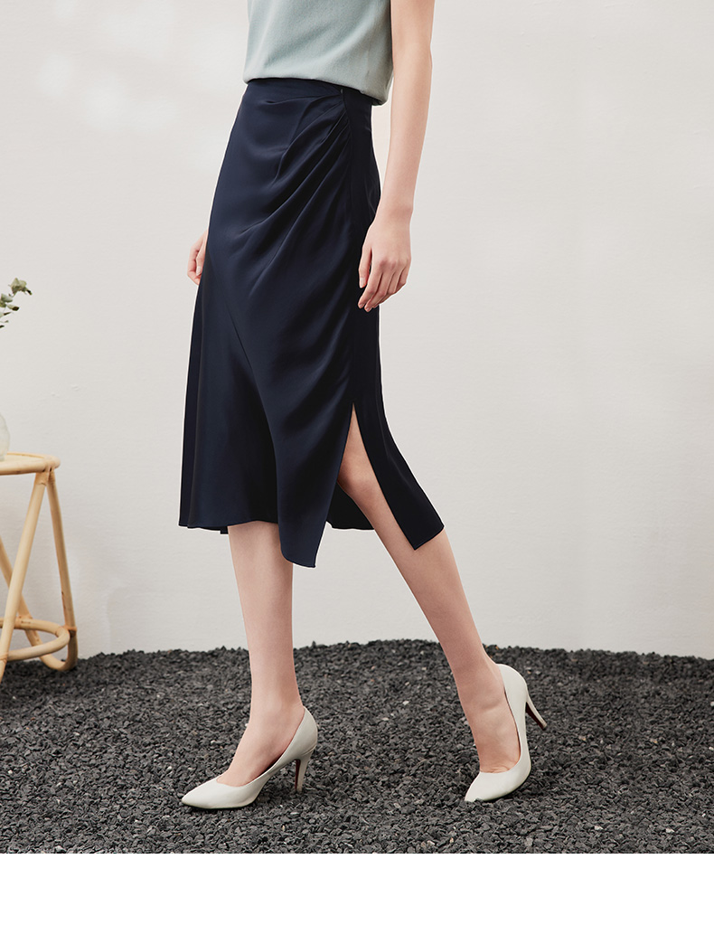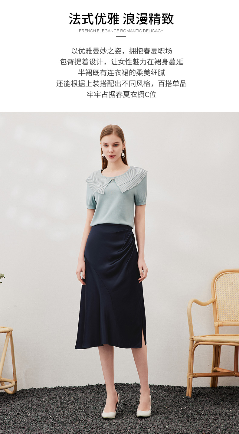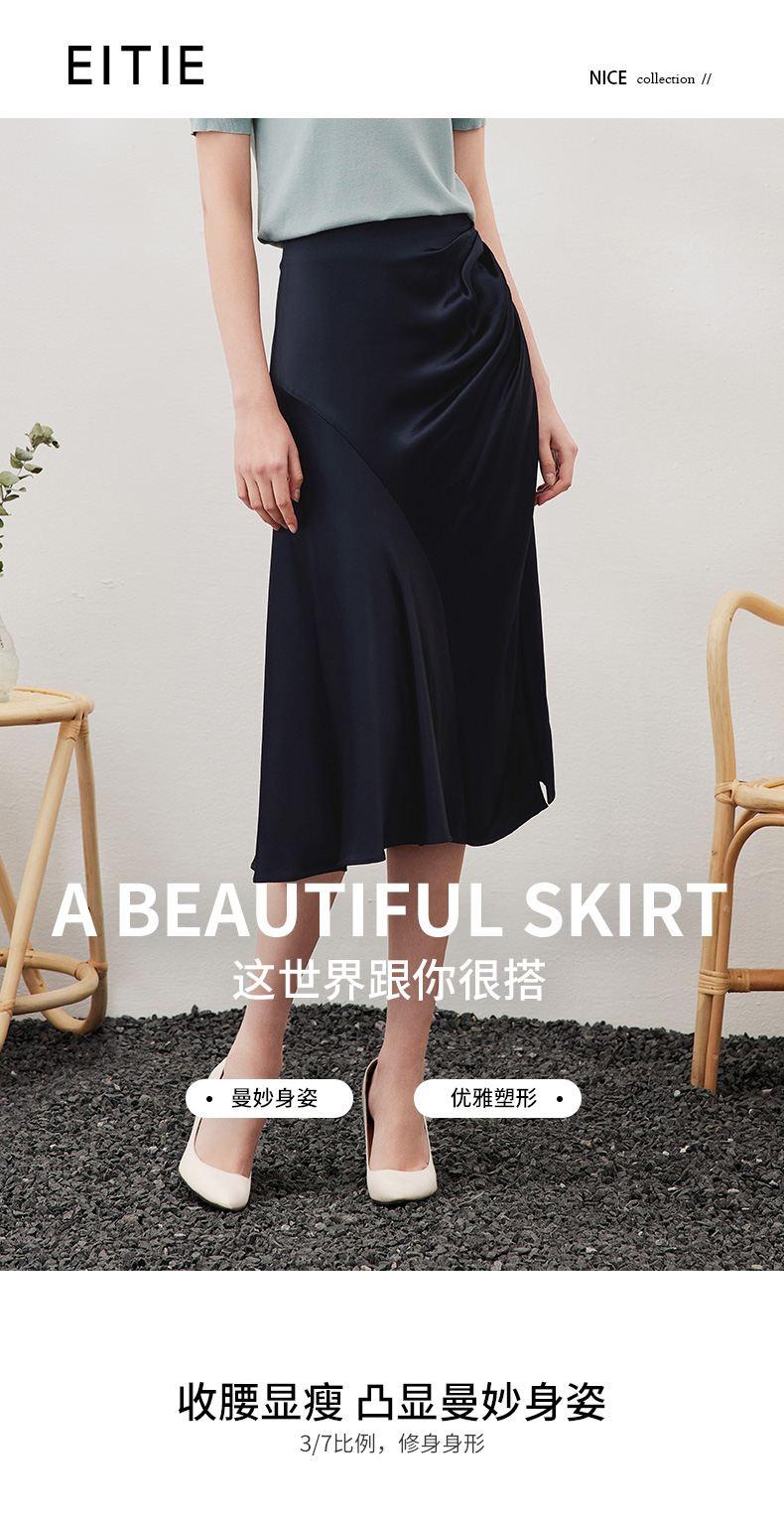 EITIE爱特爱品牌女装秋款优雅纯色日常婚宴礼服中长款A字裙5877509