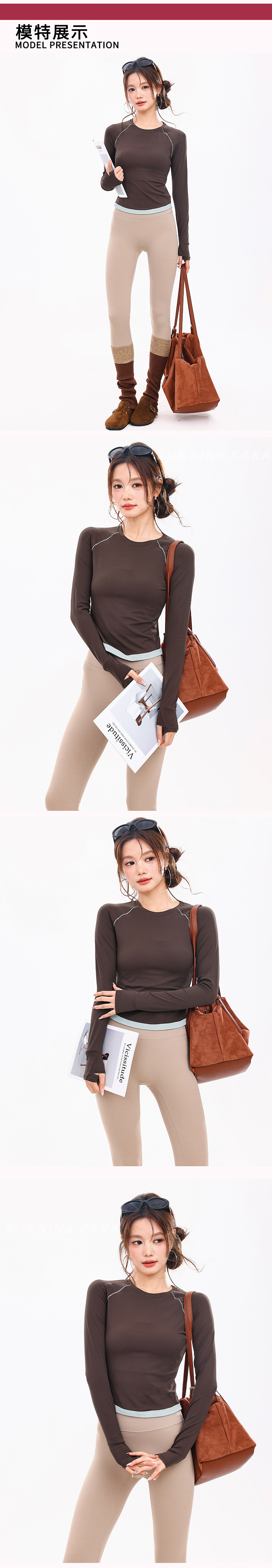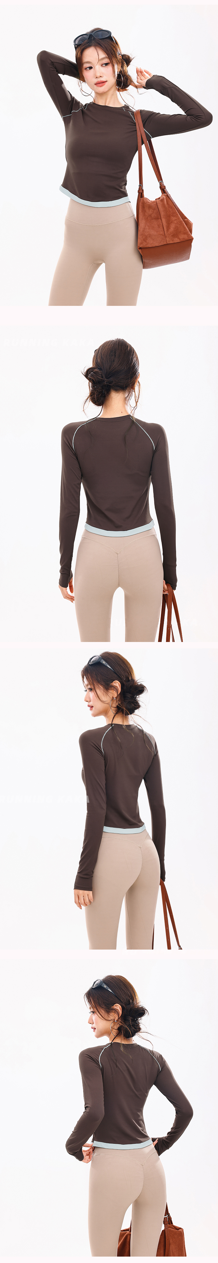 跃牌【禅语梵心】抗菌休闲运动长袖撞色收腰修身透气瑜伽T恤CX5734
