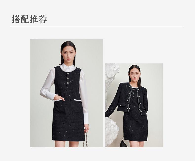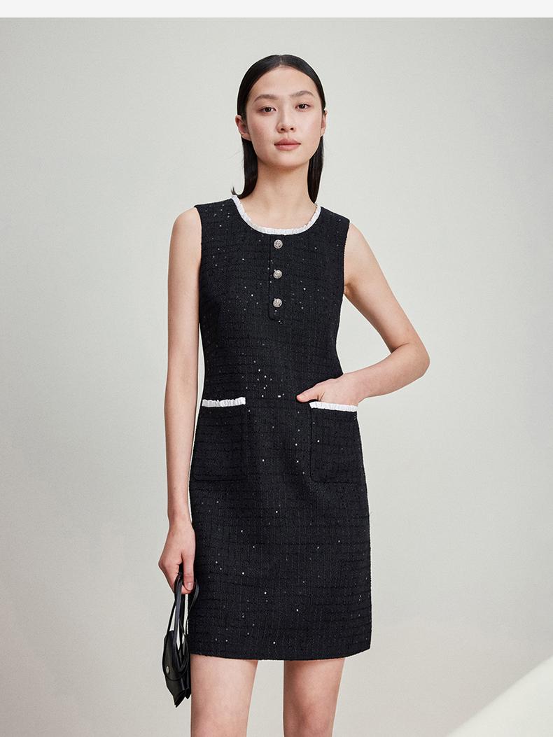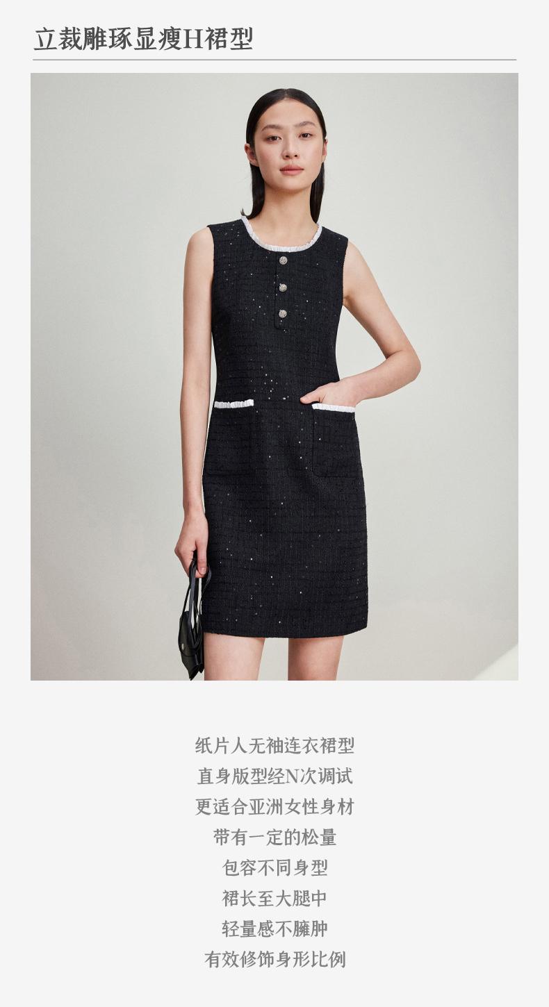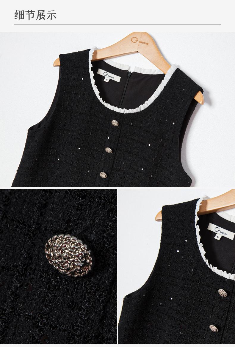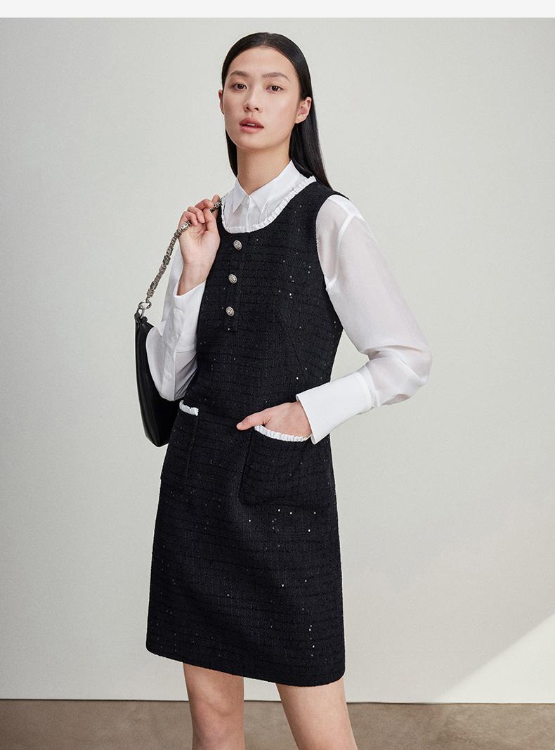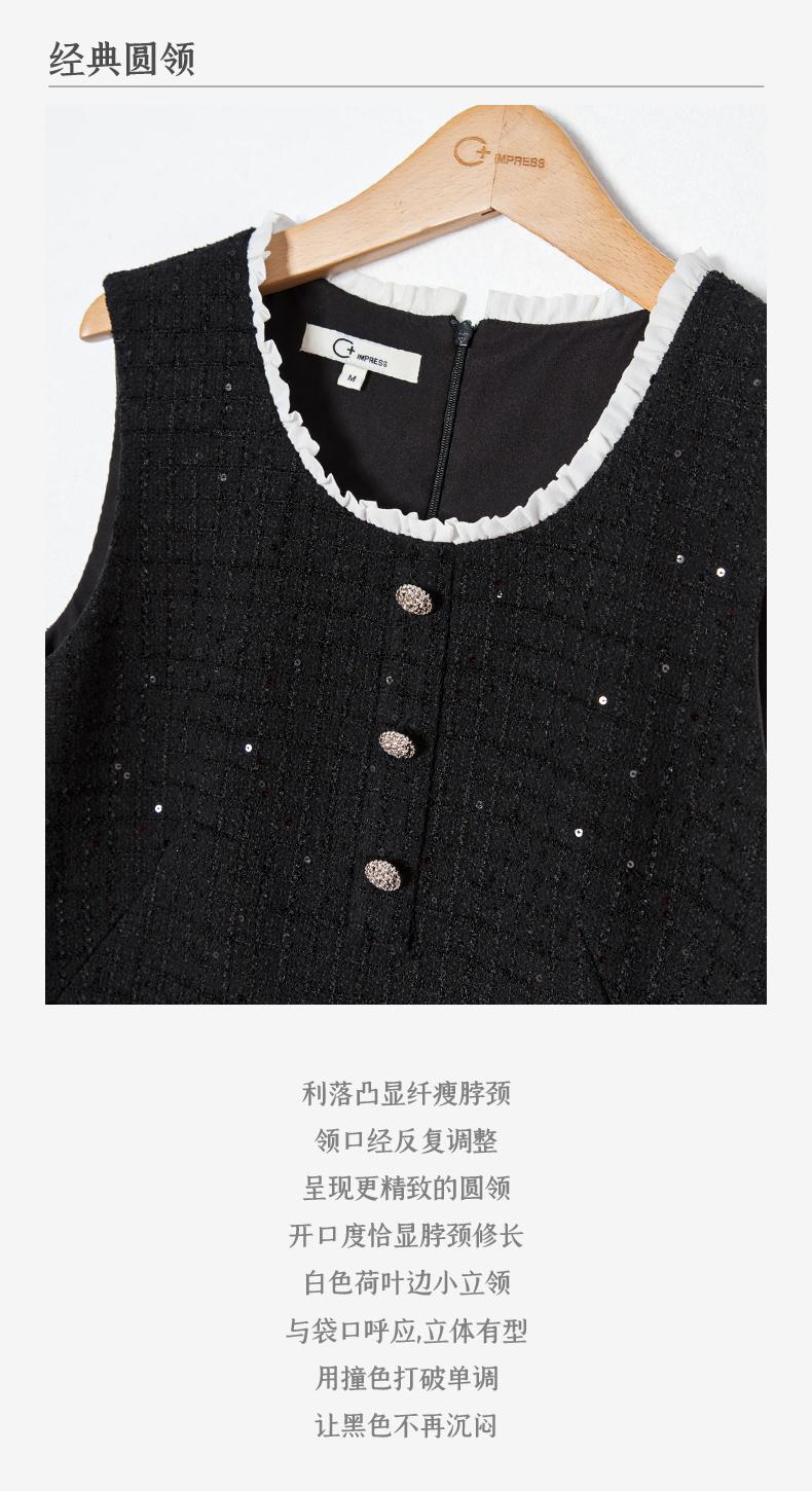 西嘉C+IMPRESS/西嘉暗格肌理亮片黑色小香风背心裙女荷叶边领口连衣裙LYQ2401066