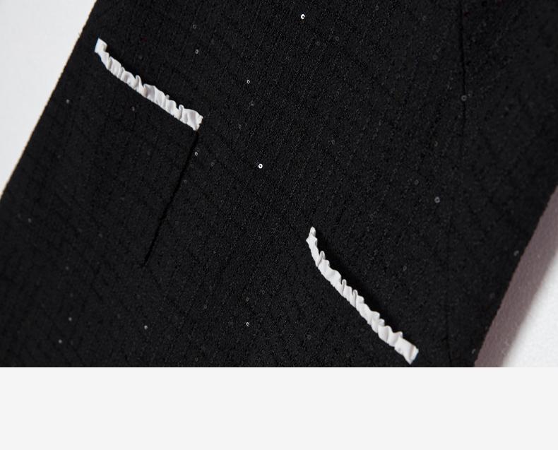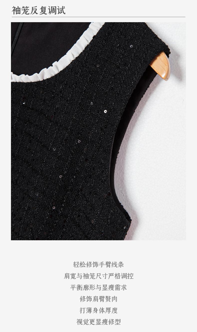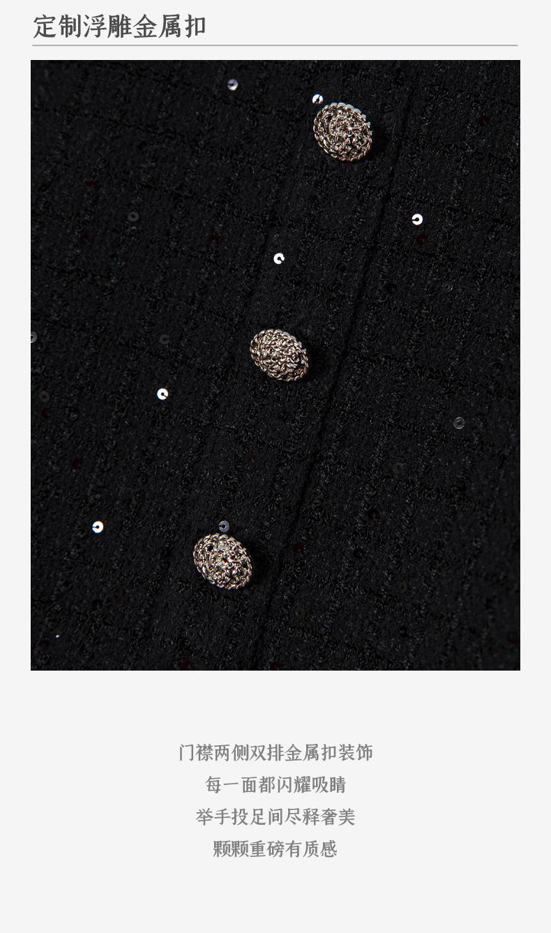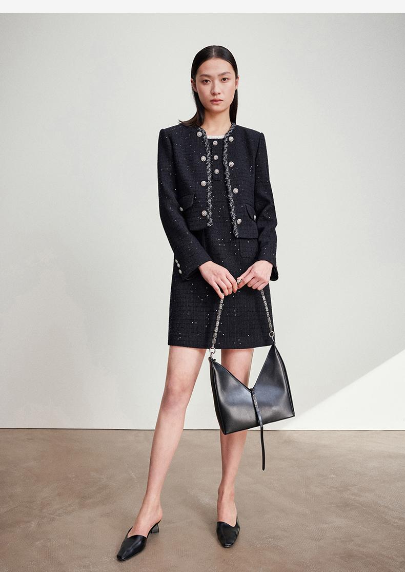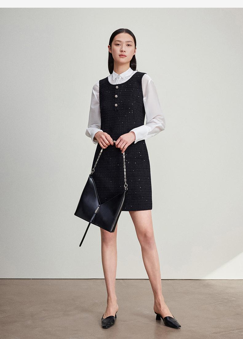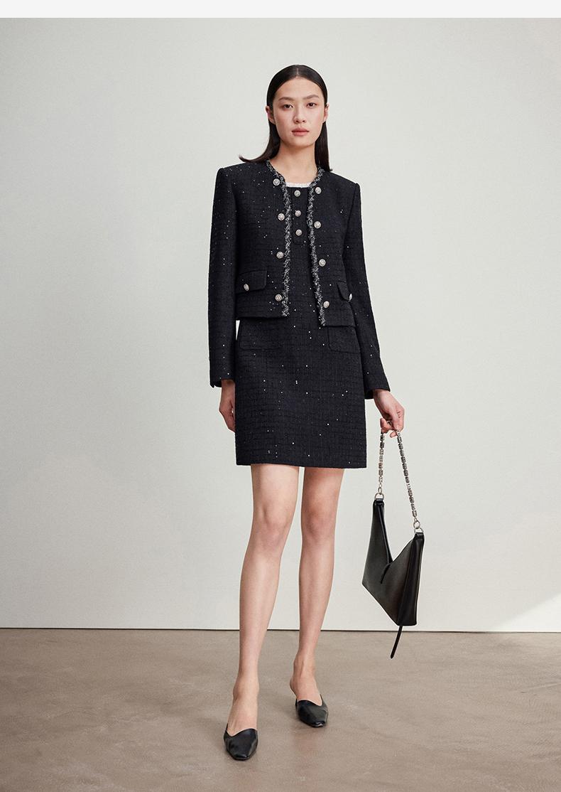 西嘉C+IMPRESS/西嘉暗格肌理亮片黑色小香风背心裙女荷叶边领口连衣裙LYQ2401066