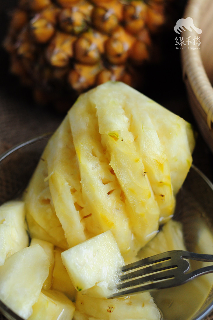 2、凤梨削皮后即可食用,亦可盐水稍微浸泡后食用。