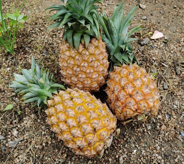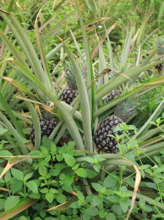 产地处于山坳坳里,周边无人任何工业污染,凤梨的地块抛荒两年多,处于半野生状态,2020年以前无人工管理。