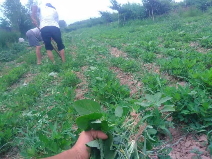 花生在整个生长季节都在和当地野草竞争,而它没有玉米那么快的生长速度,能迅速超过野草,占领更高的地上生态位;也没有小麦那么高的密度,能迅速排挤野草,占领更多的地表生态位。所以不管是在相对生长缓慢的干旱春季,还是迅速生长的夏天雨季,花生都在和当地一年生甚至多年生野草顽强竞争。这种同生态位的竞争如果没有人类干预,最终花生会完败,长不出几粒花生。因为被身边到处穿插生长的野草阻挡,花生的果针要想扎进土壤很困难,最终大多数都会"夭折"。