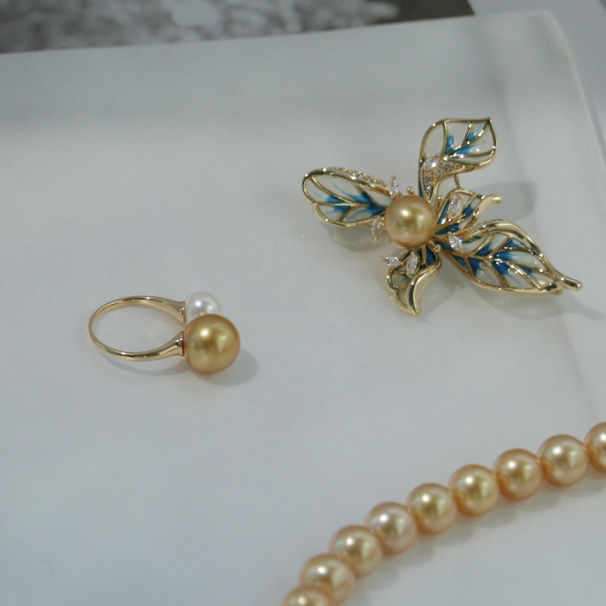 甄珠贝 贵气迷人的海水双珠 倪妮同款 极强光镜面akoya 7-8mm + 金珠正圆11-12mm 简洁大气设计 惊艳的让人移不开眼