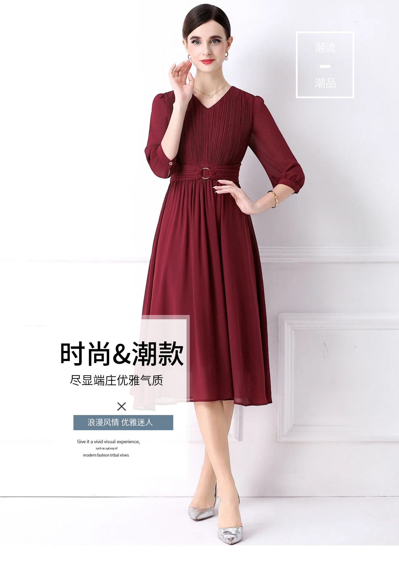 「高货deo」全新升级【铂金会员441/天猫599/差价158】(12654)洛诗琳气质雪纺连衣裙2026春季优雅通勤收腰显瘦A字裙