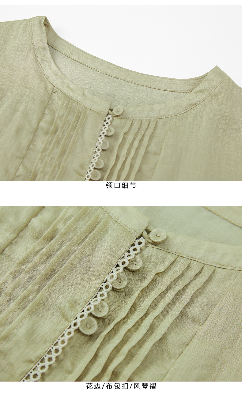 HM-C032夏季新款纯苎麻旅行文艺连衣裙花边灯笼短袖宽松怀旧复古袍子
