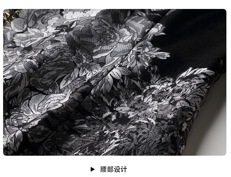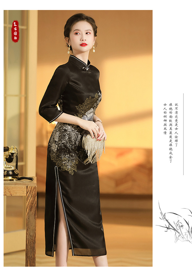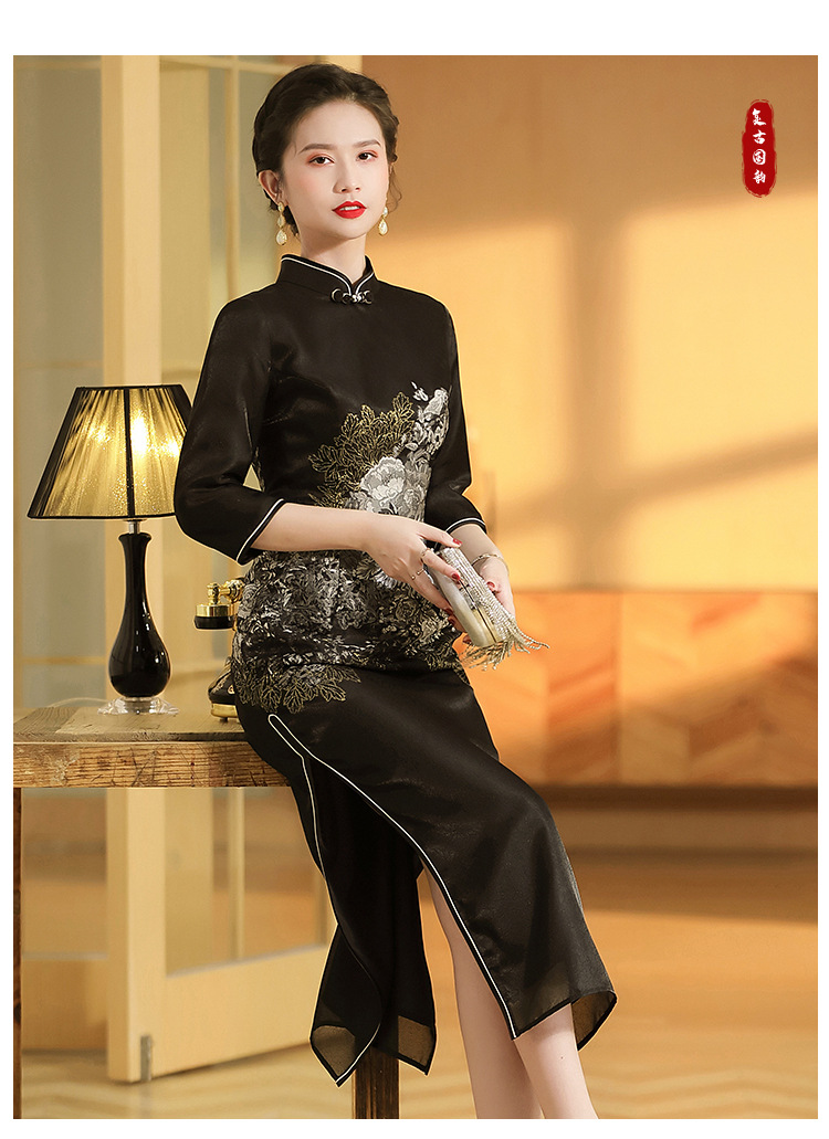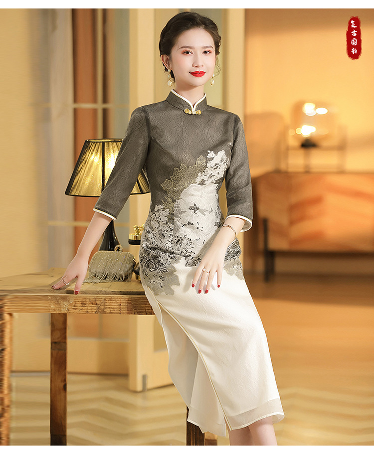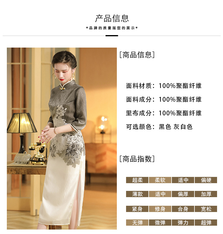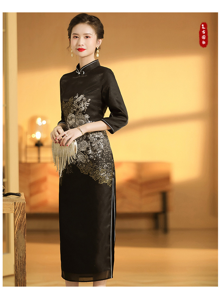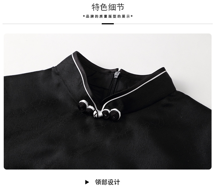 上海旗袍厂AYK-QF-200617提花鸟修身长款旗袍改良国风拼接撞色连衣裙秋季女装