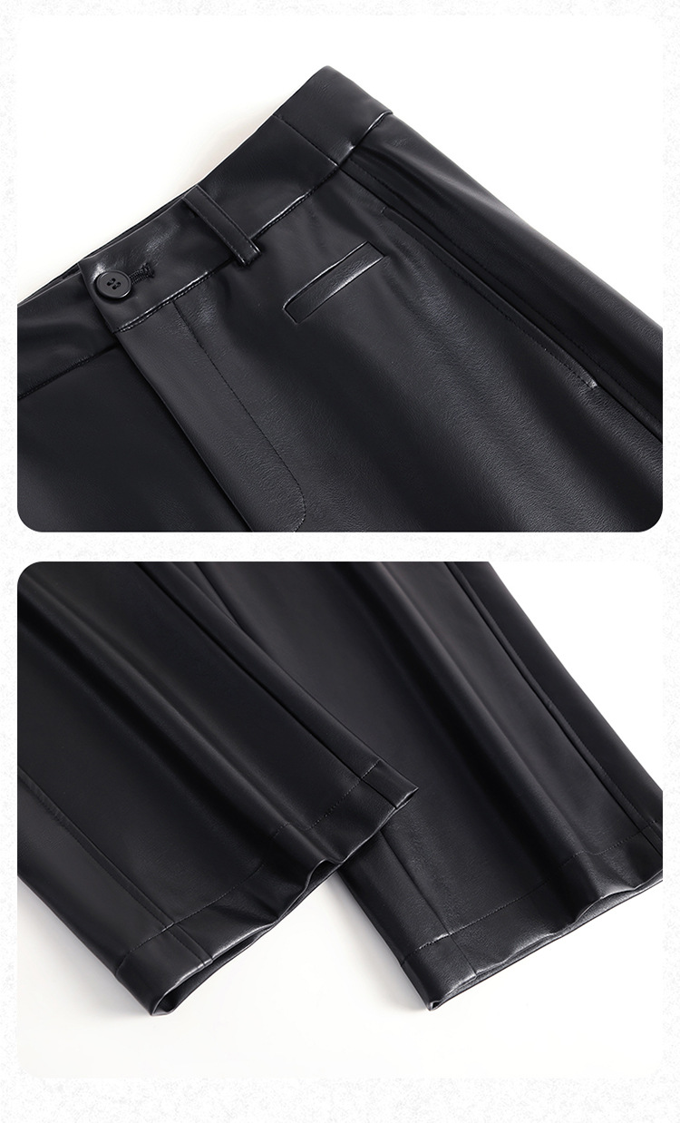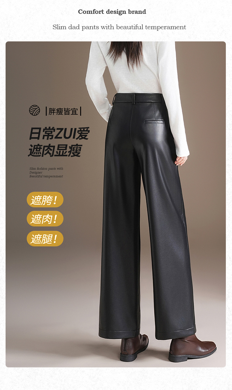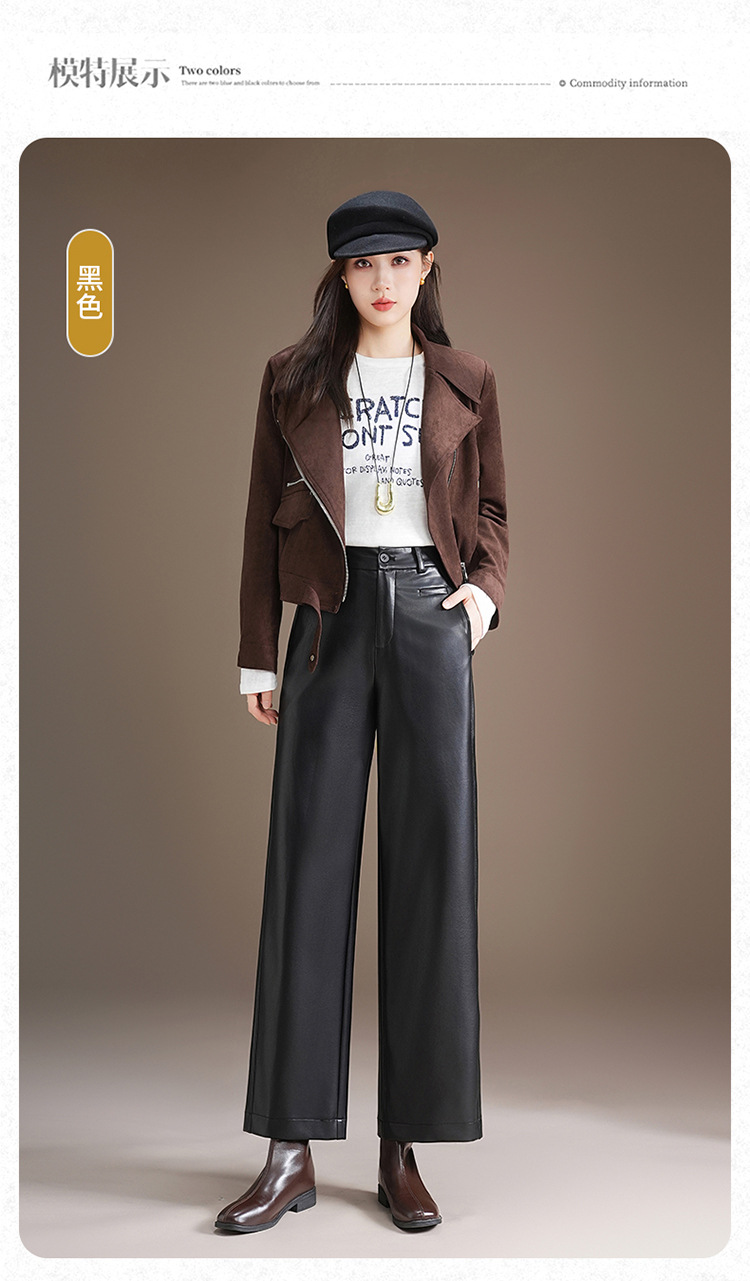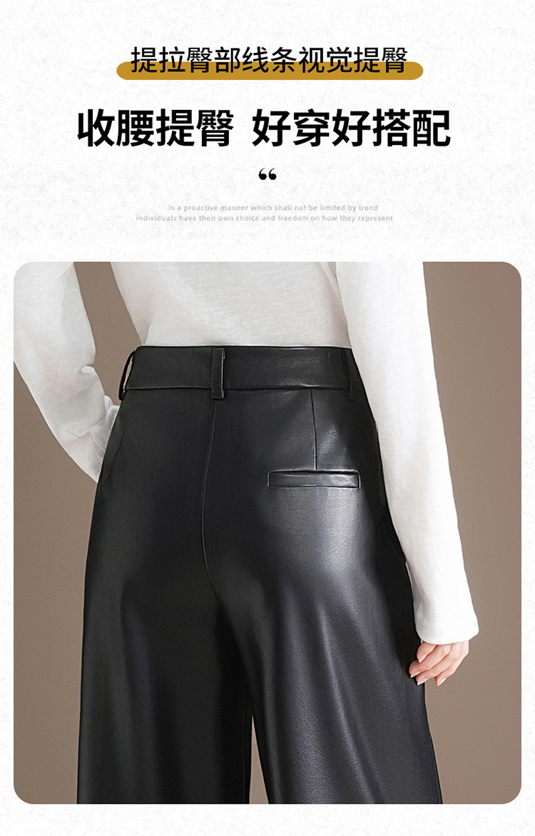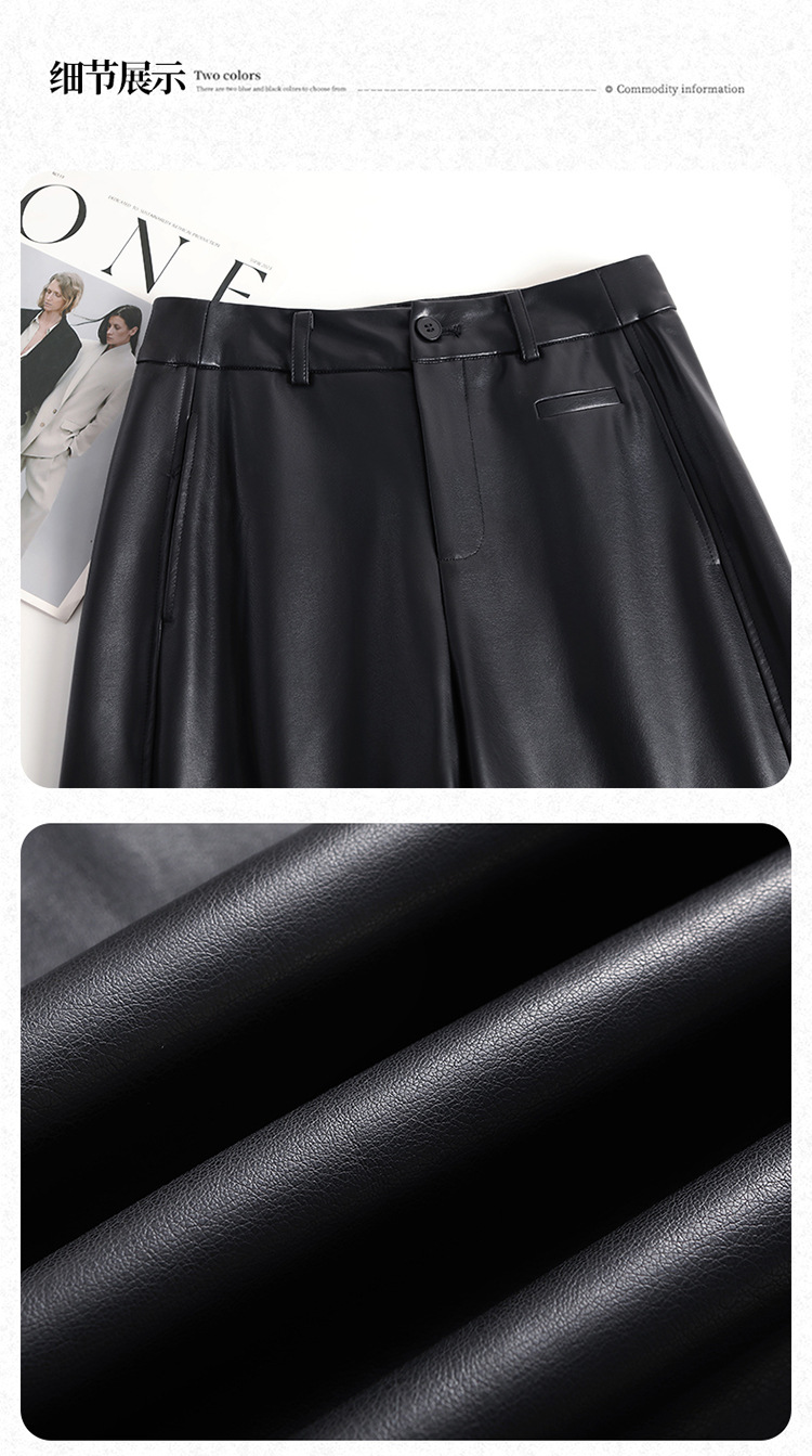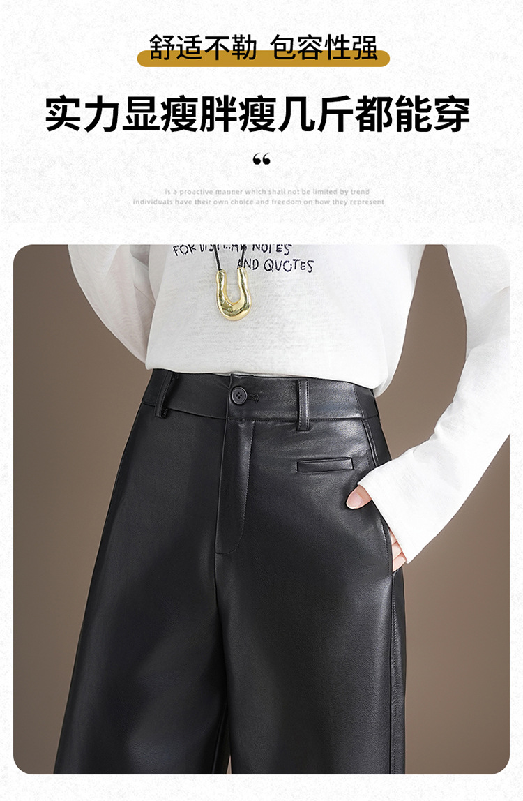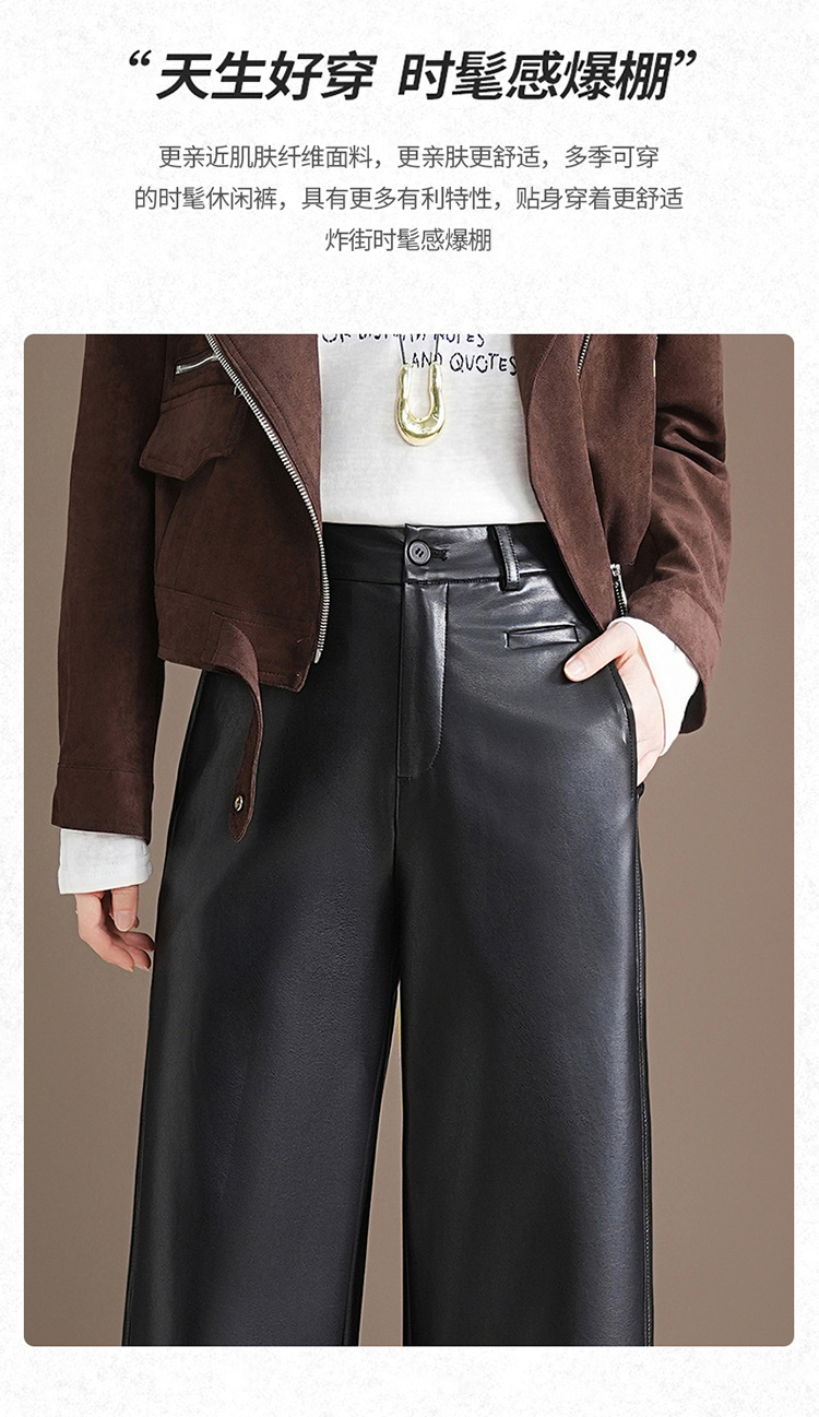 MYX小个子九分PU皮裤2025年秋季新款垂感修身直筒裤减龄洋气阔腿裤女