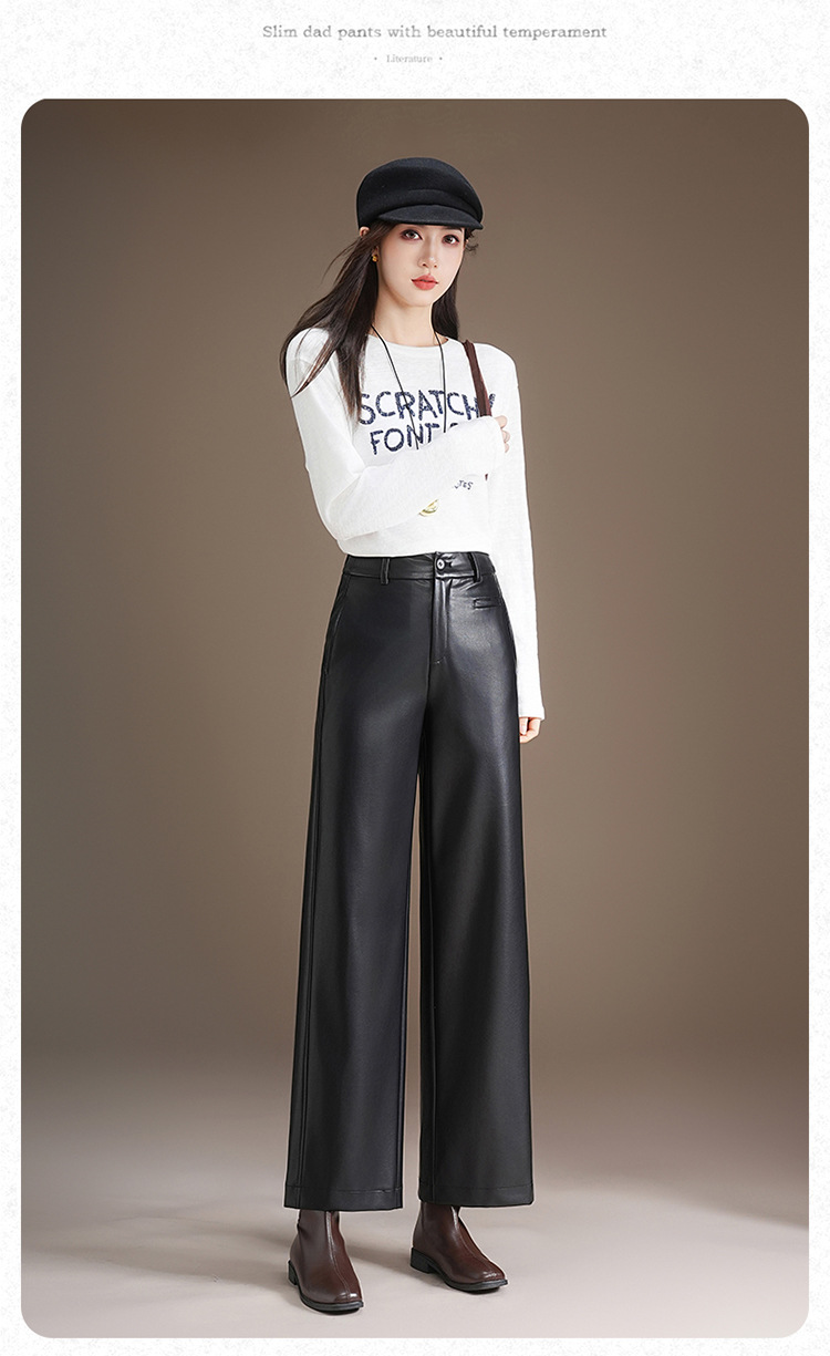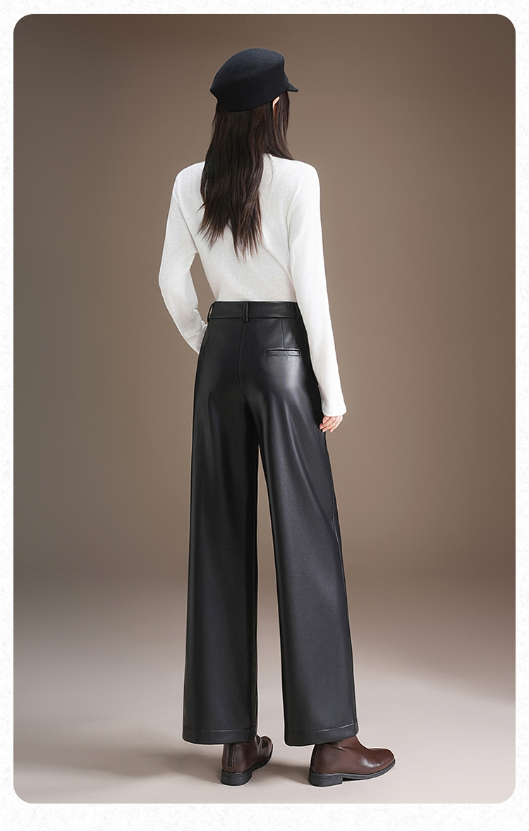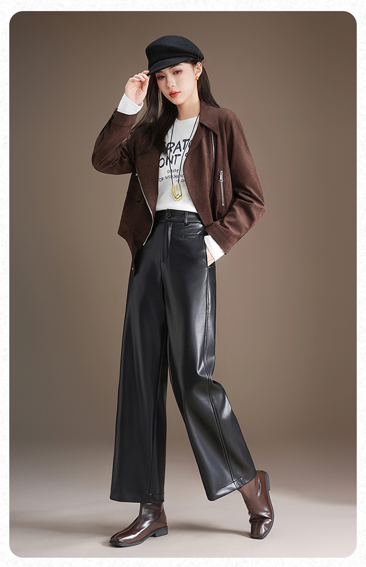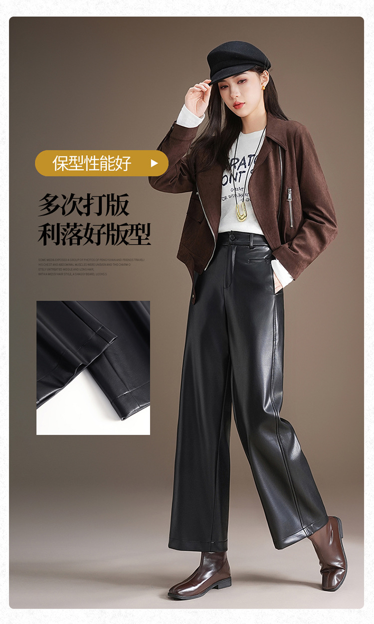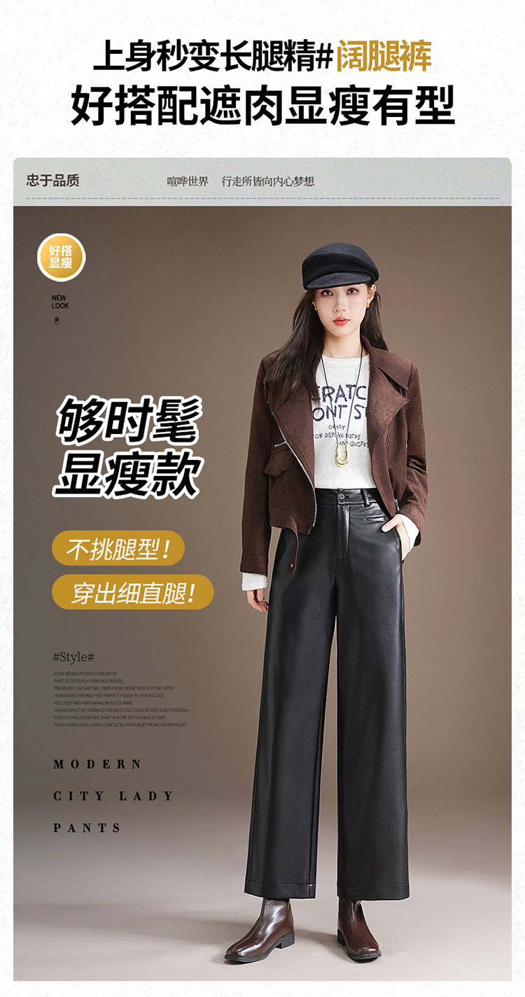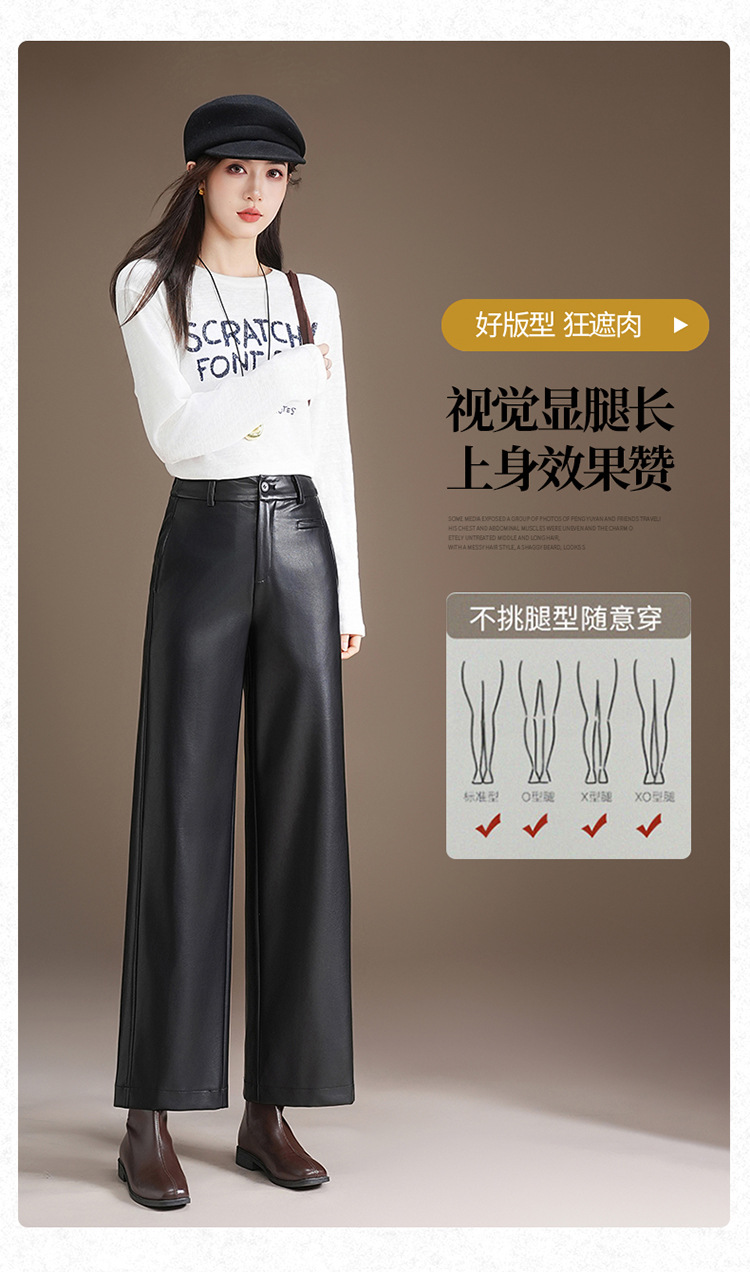 MYX小个子九分PU皮裤2025年秋季新款垂感修身直筒裤减龄洋气阔腿裤女