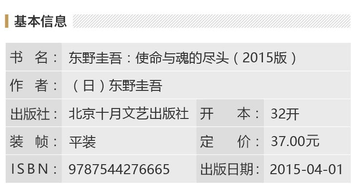 东野圭吾,日本作家,直木奖、吉川英治文学奖、推理作家协会奖、江户川乱步奖、本格推理小说大奖等日本重要文学奖项得主,2011—2013年日本票选受欢迎作家名,作品中文版系列销量已突破600册。