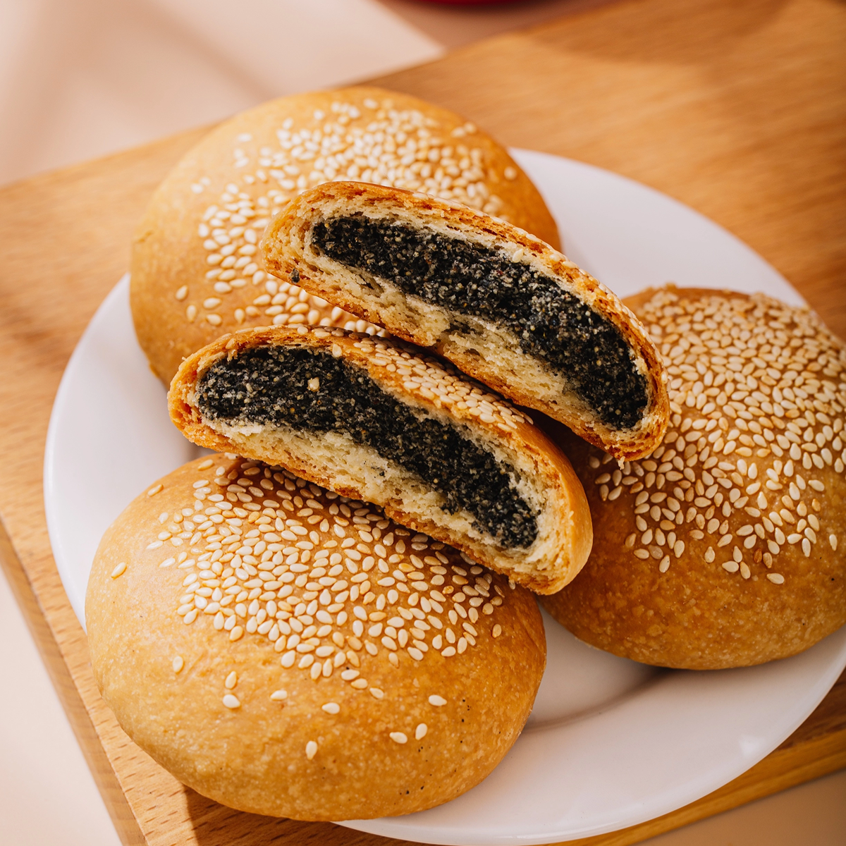 一枚好吃的麻仁饼,关键在于饼和馅的配比,三分皮,七分馅,一口咬下去,全是芝麻香。