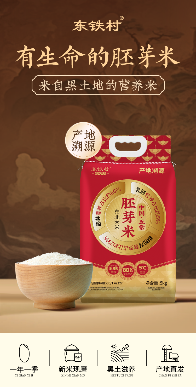 拓高 东铁村东北黑土地鲜活胚芽米5kg/袋【周日不发货】