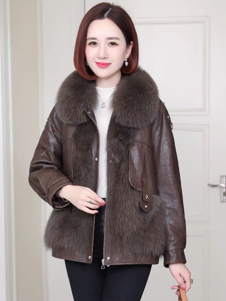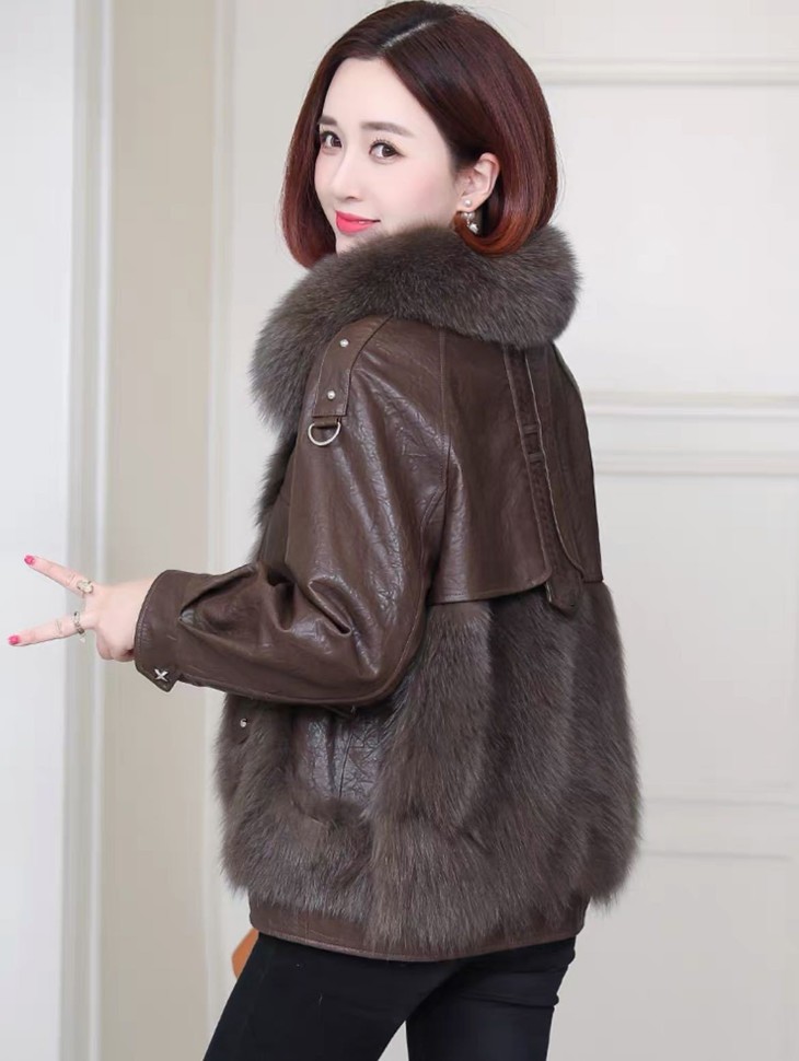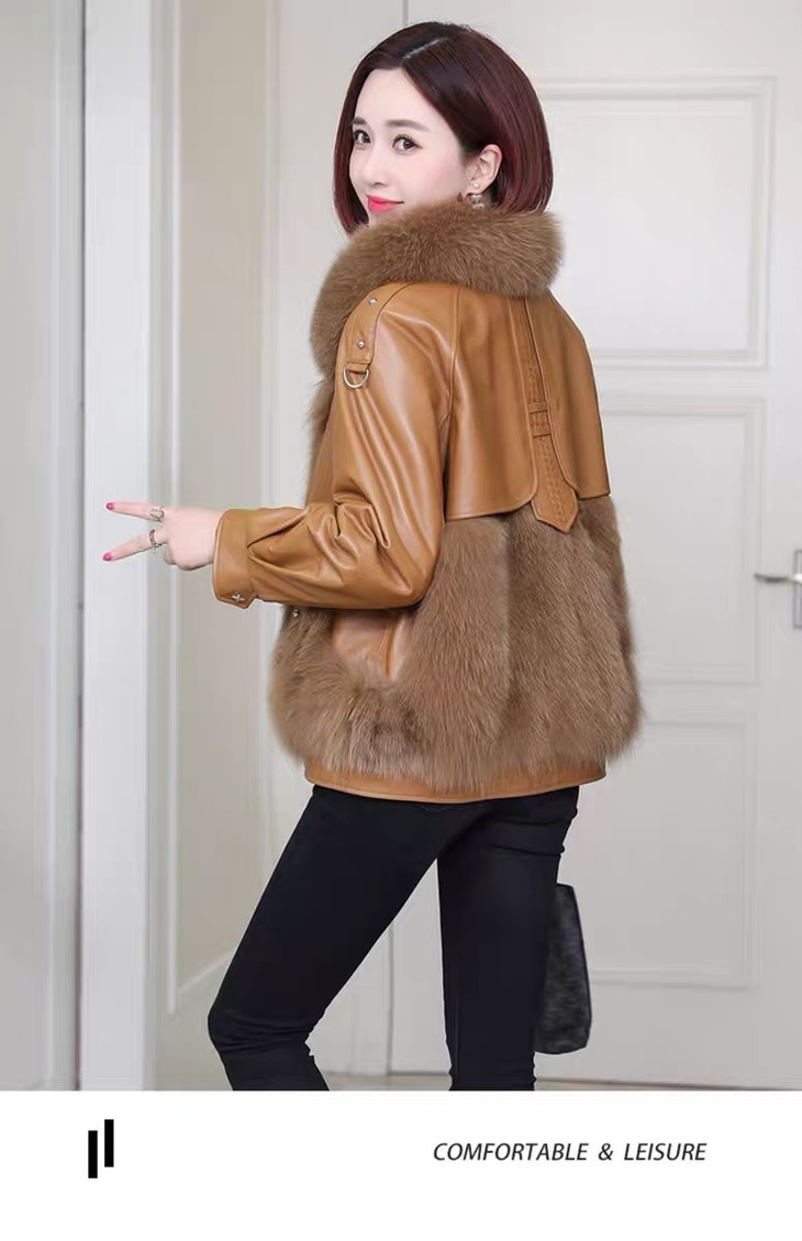 冬季皮草狐狸毛领皮衣,时尚显瘦加厚保暖外套LJX-032