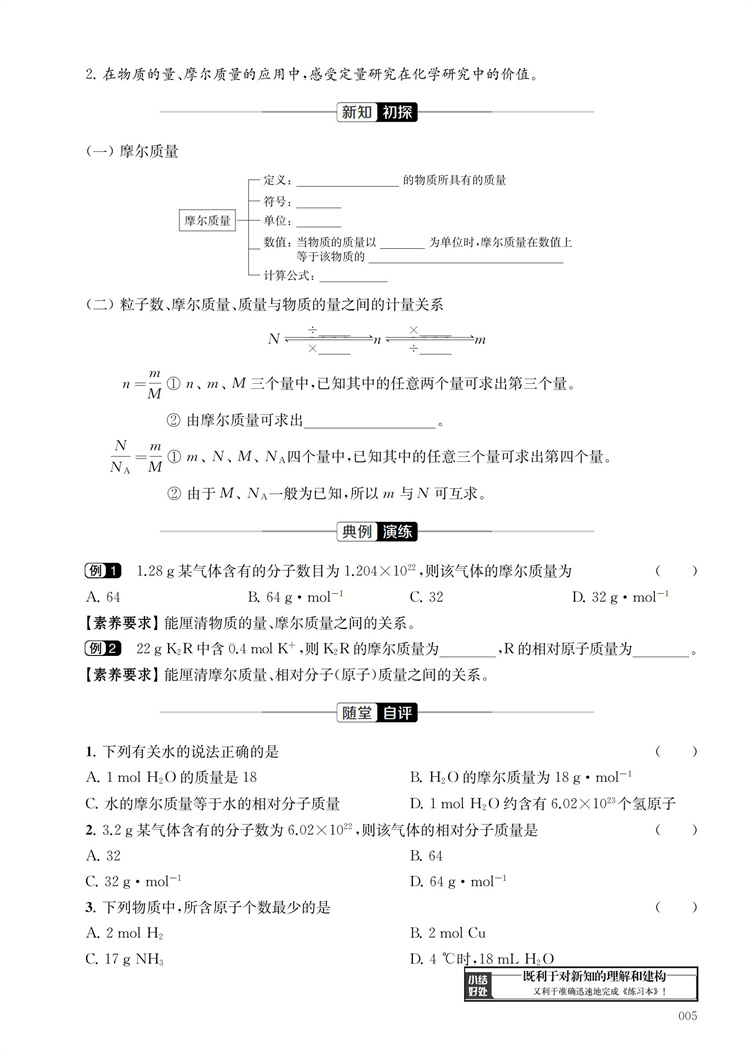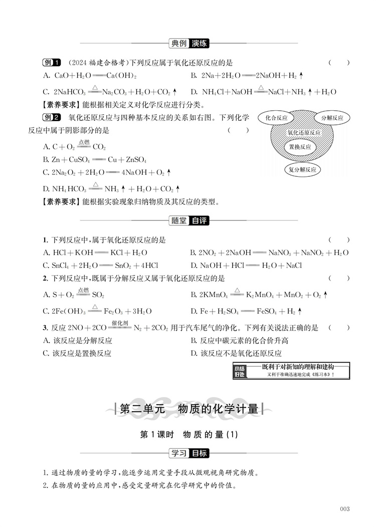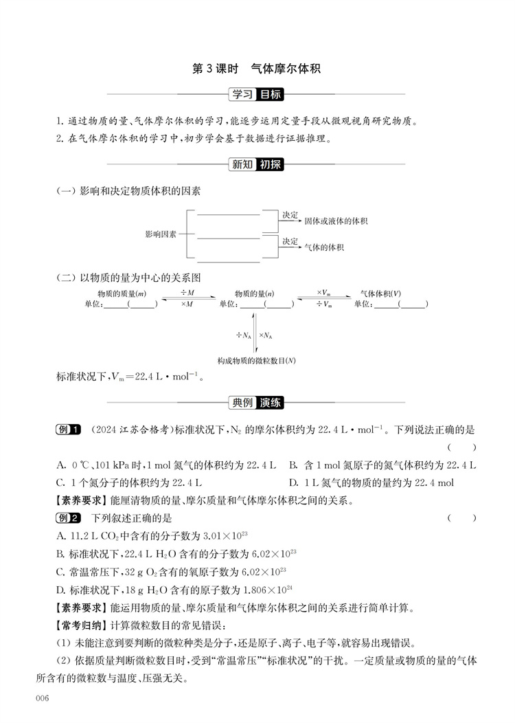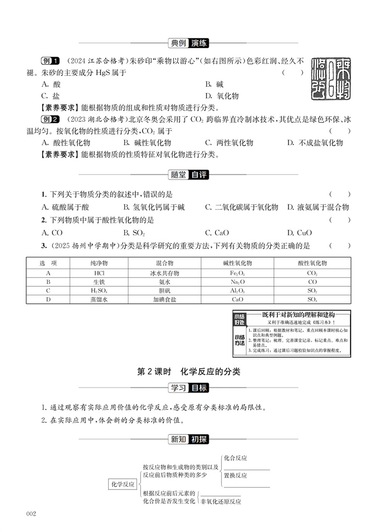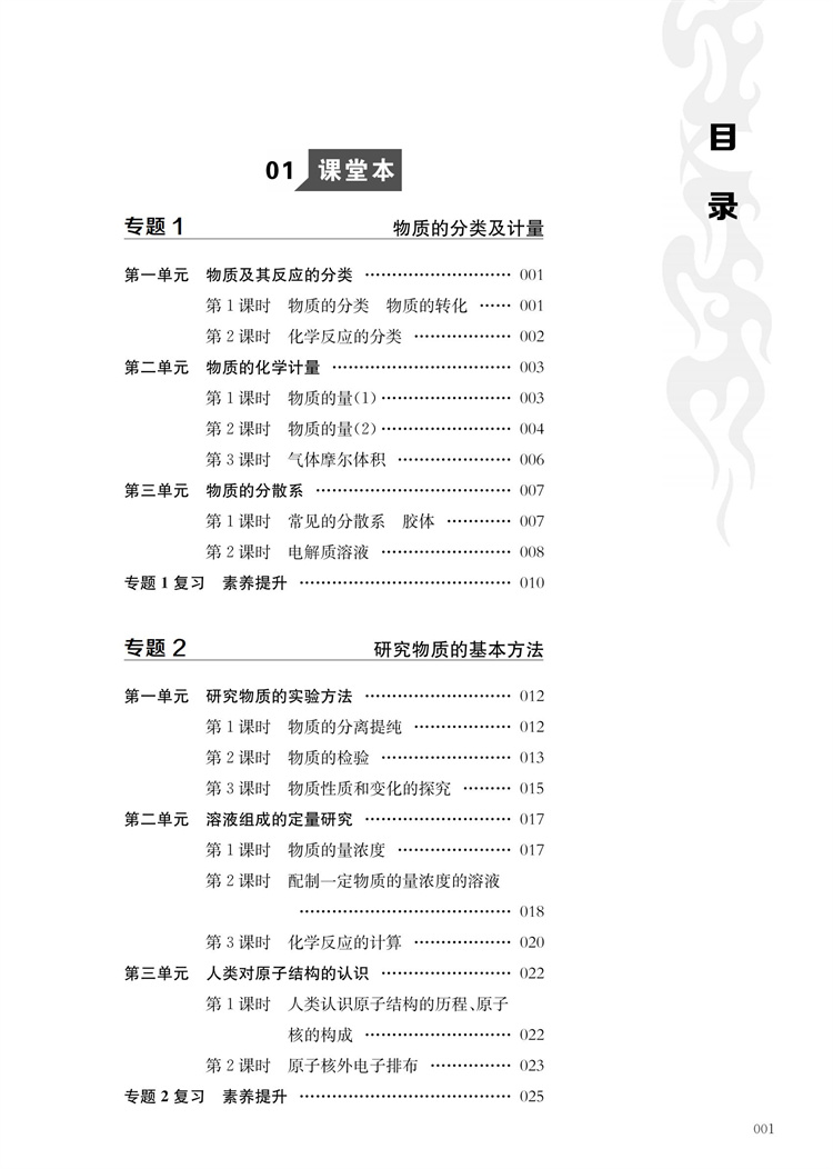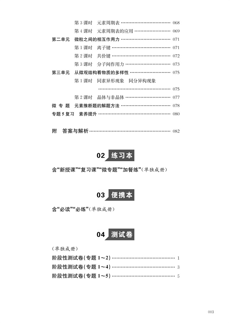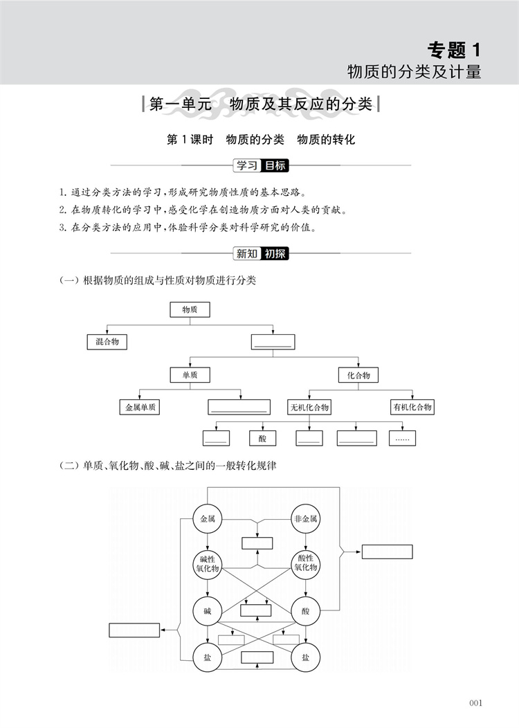 2025年 凤凰新学案 高中化学 苏教版 必修第一册 第1册 练习本 高中教辅 学生用书 核心素养版 江苏凤凰教育出版社