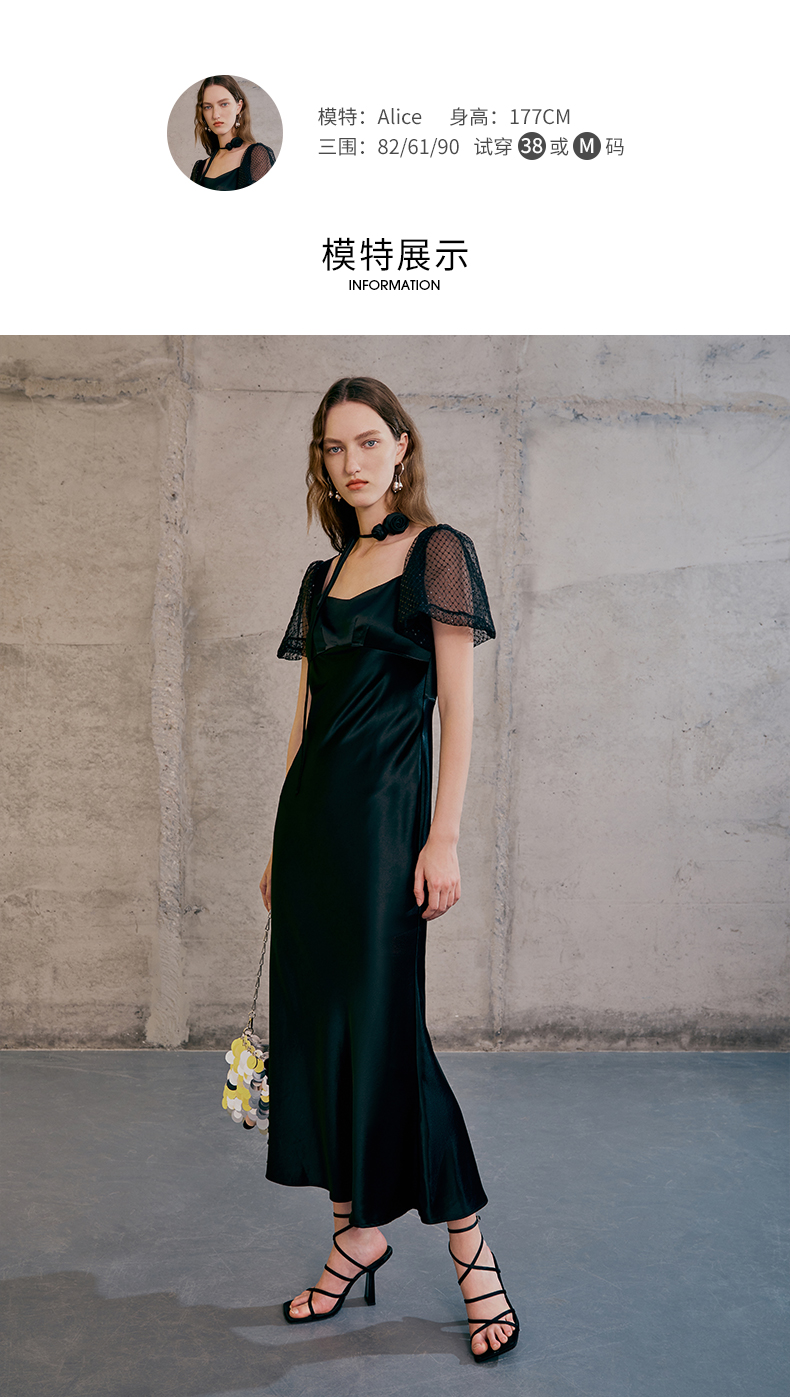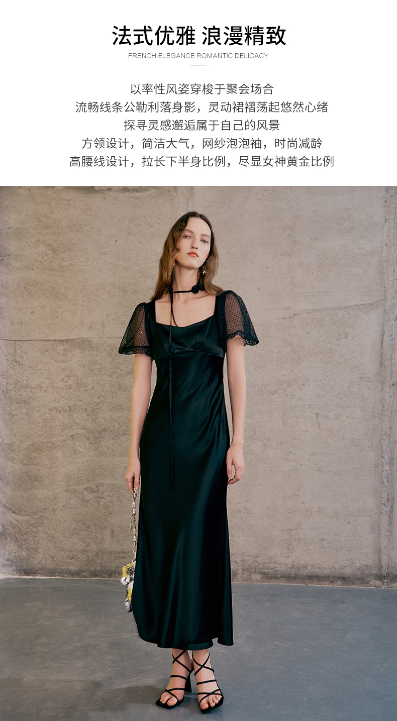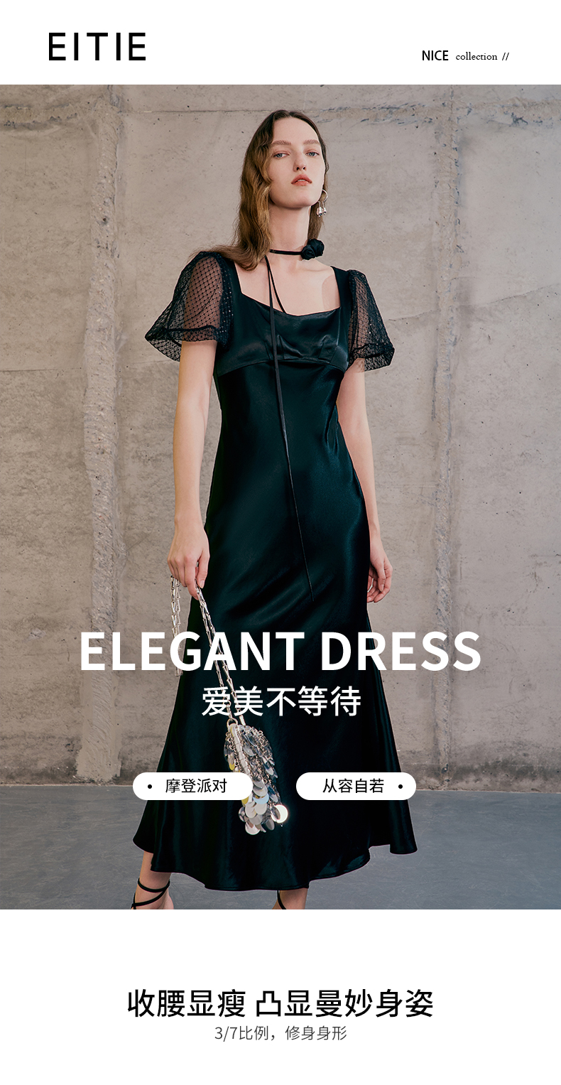 EITIE爱特爱春季新款洋气气质高腰显瘦礼服连衣裙长裙7377006