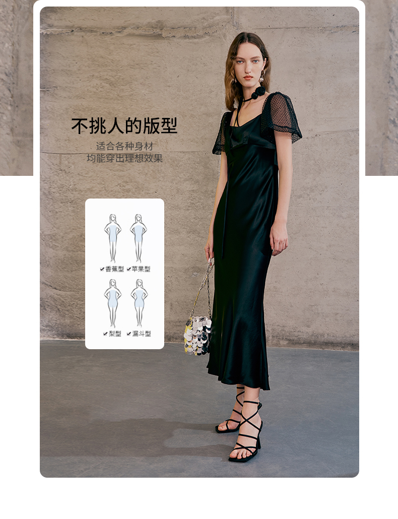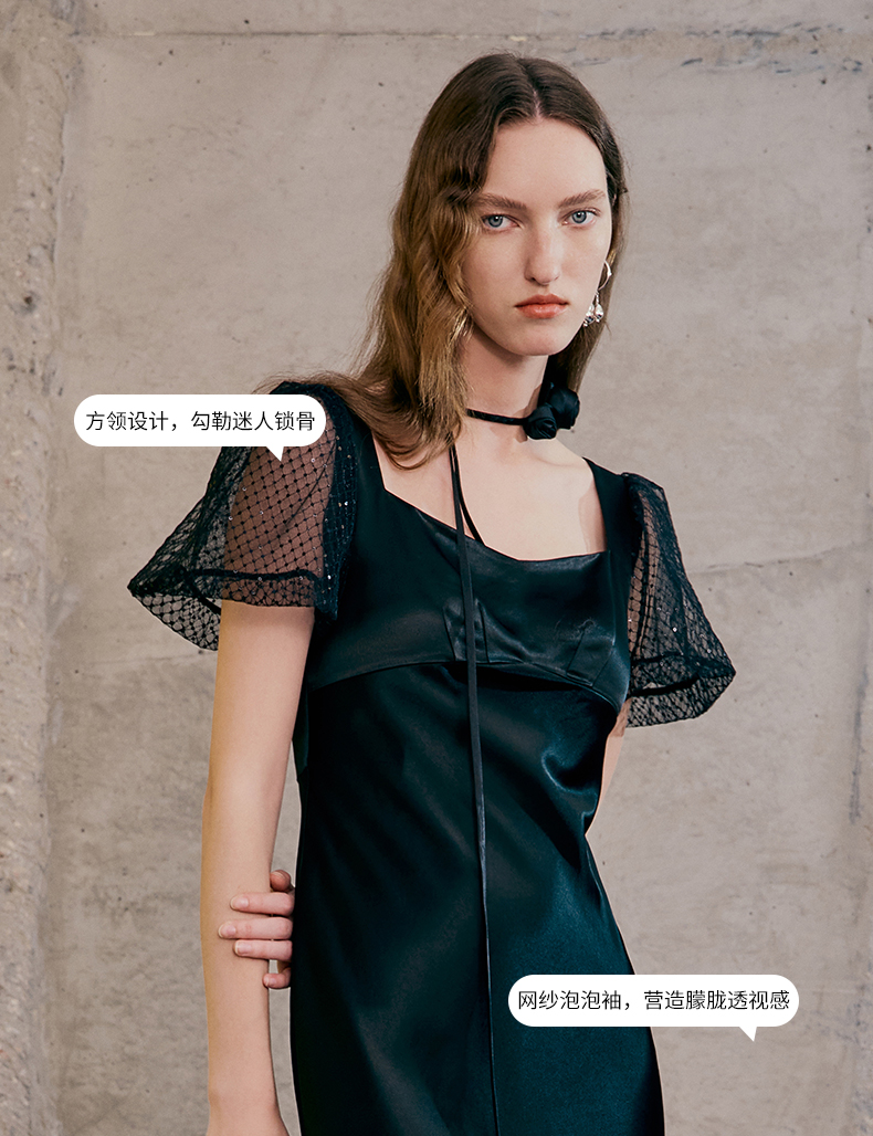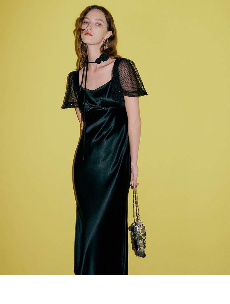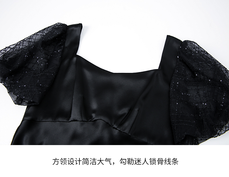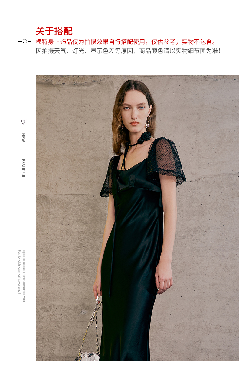 EITIE爱特爱春季新款洋气气质高腰显瘦礼服连衣裙长裙7377006