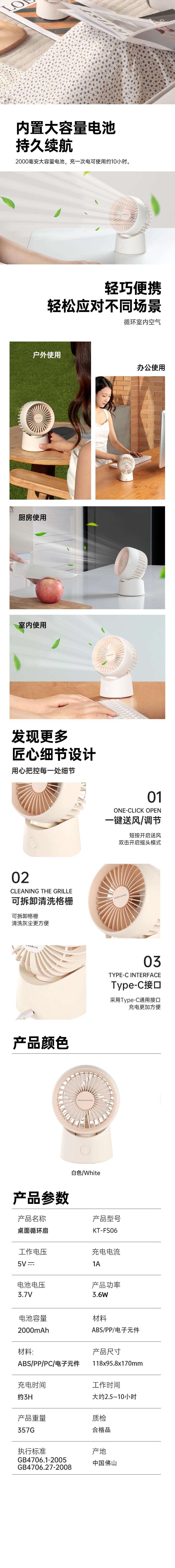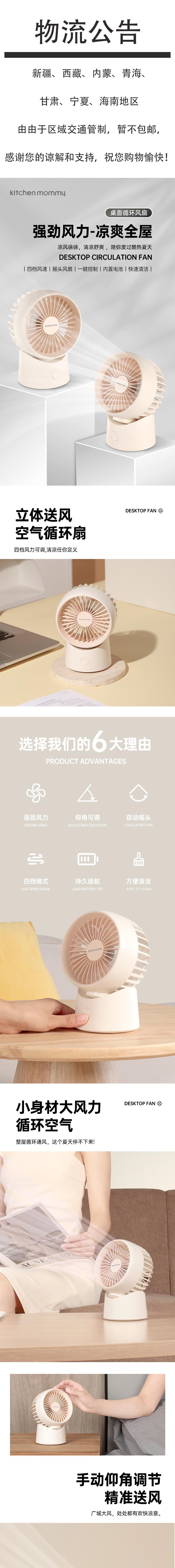 厨创妈咪 桌面转头循环风扇2000mAh KT-FS06