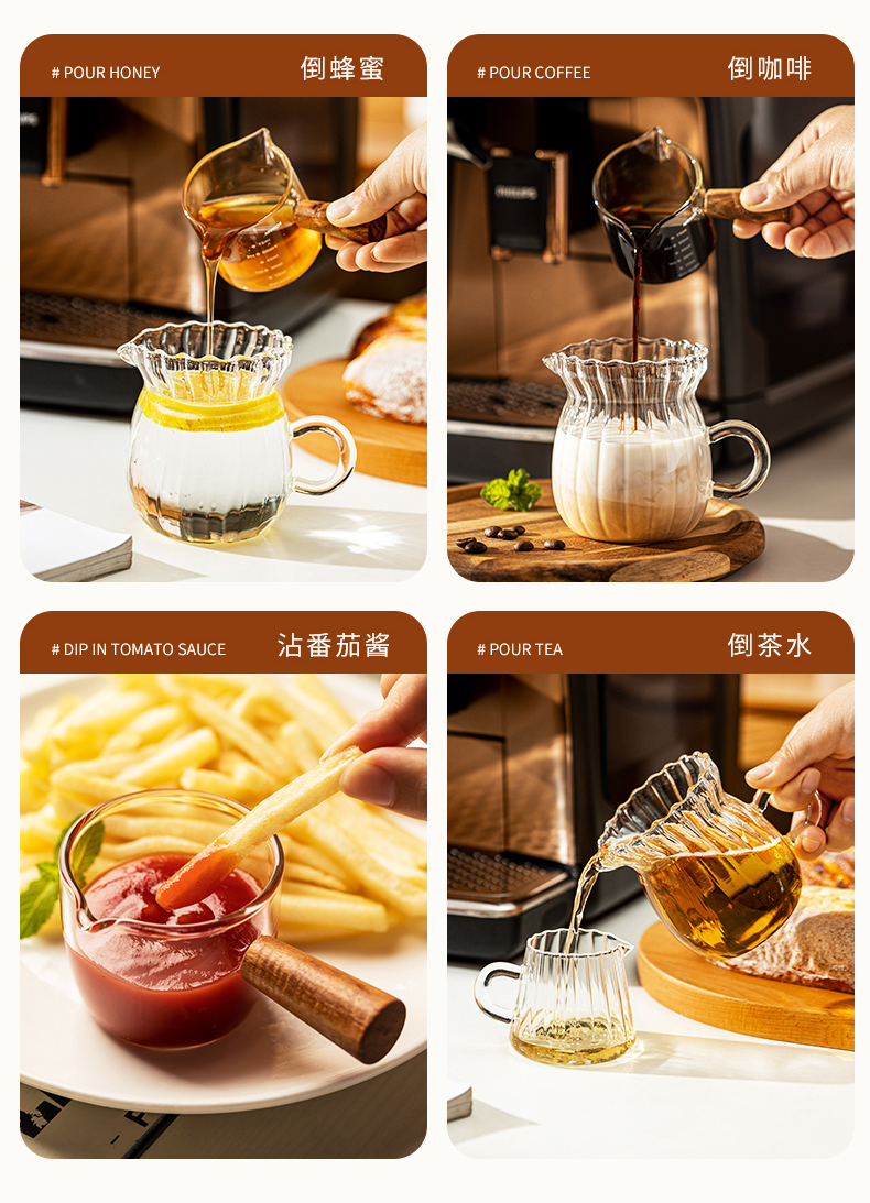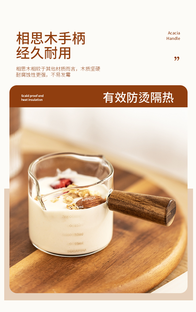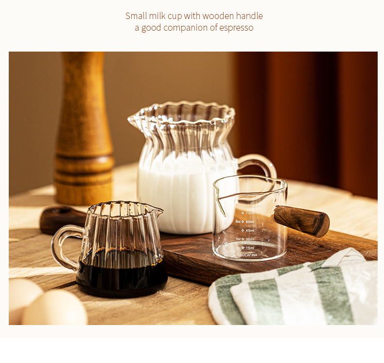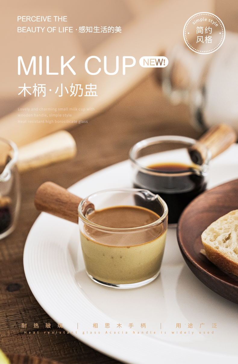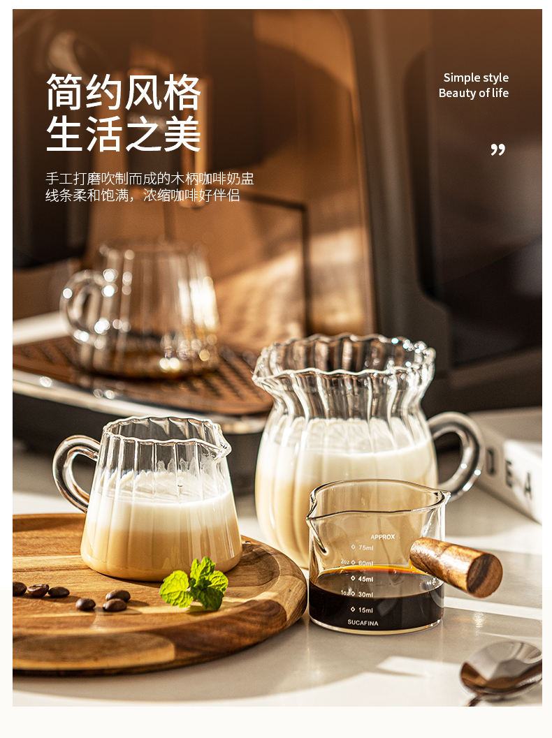摩登主妇玻璃小奶盅牛奶壶浓缩咖啡刻度量杯咖啡加奶杯木柄小奶罐