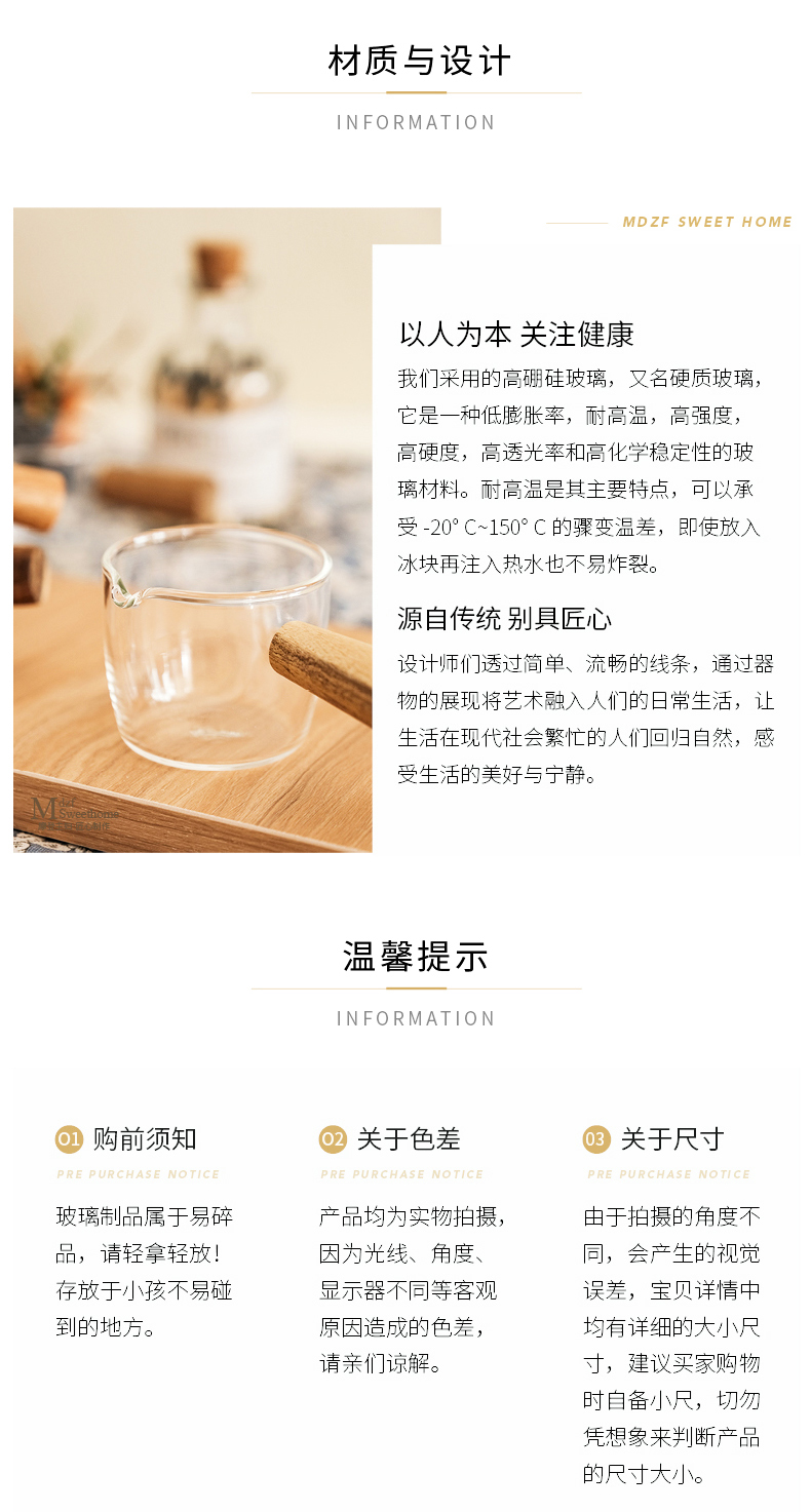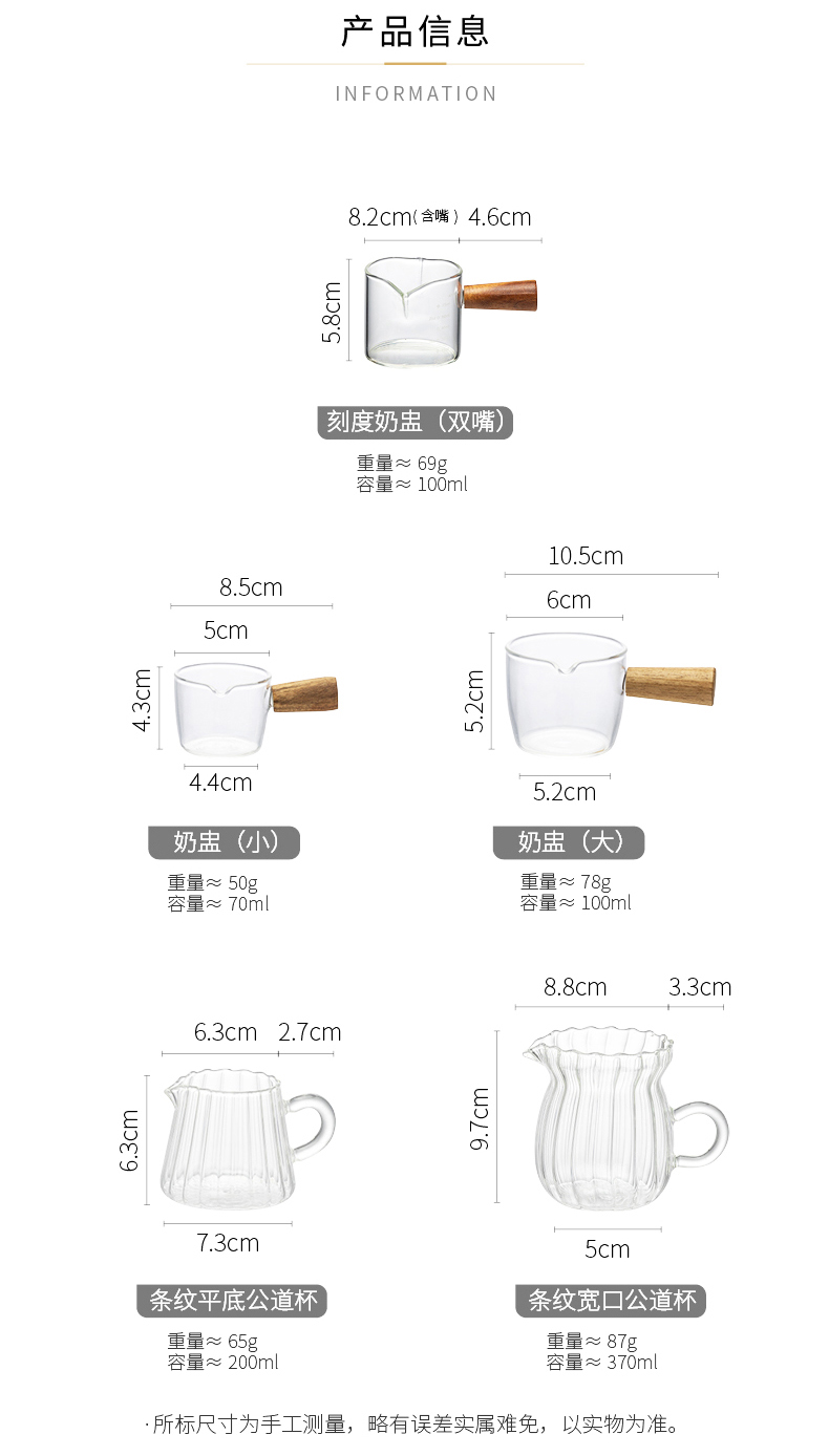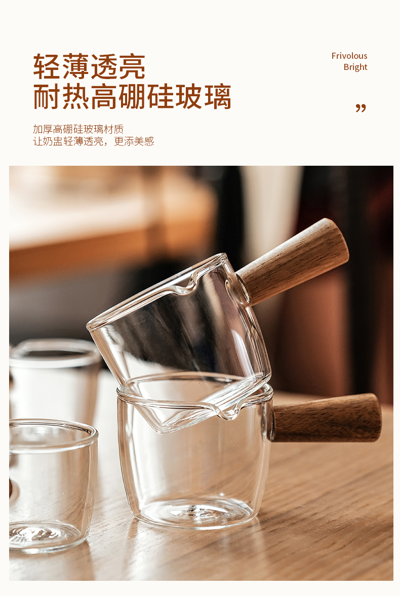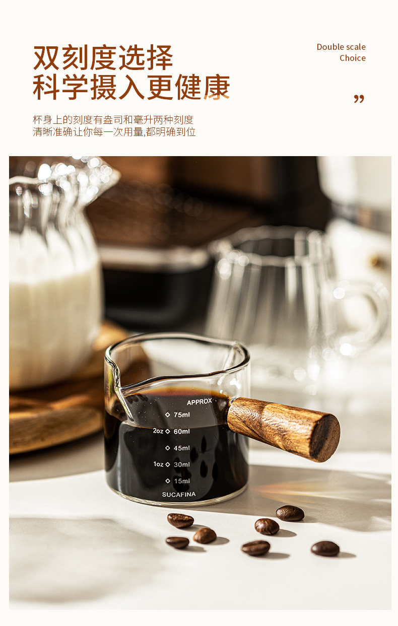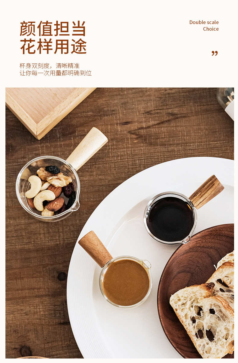 摩登主妇玻璃小奶盅牛奶壶浓缩咖啡刻度量杯咖啡加奶杯木柄小奶罐