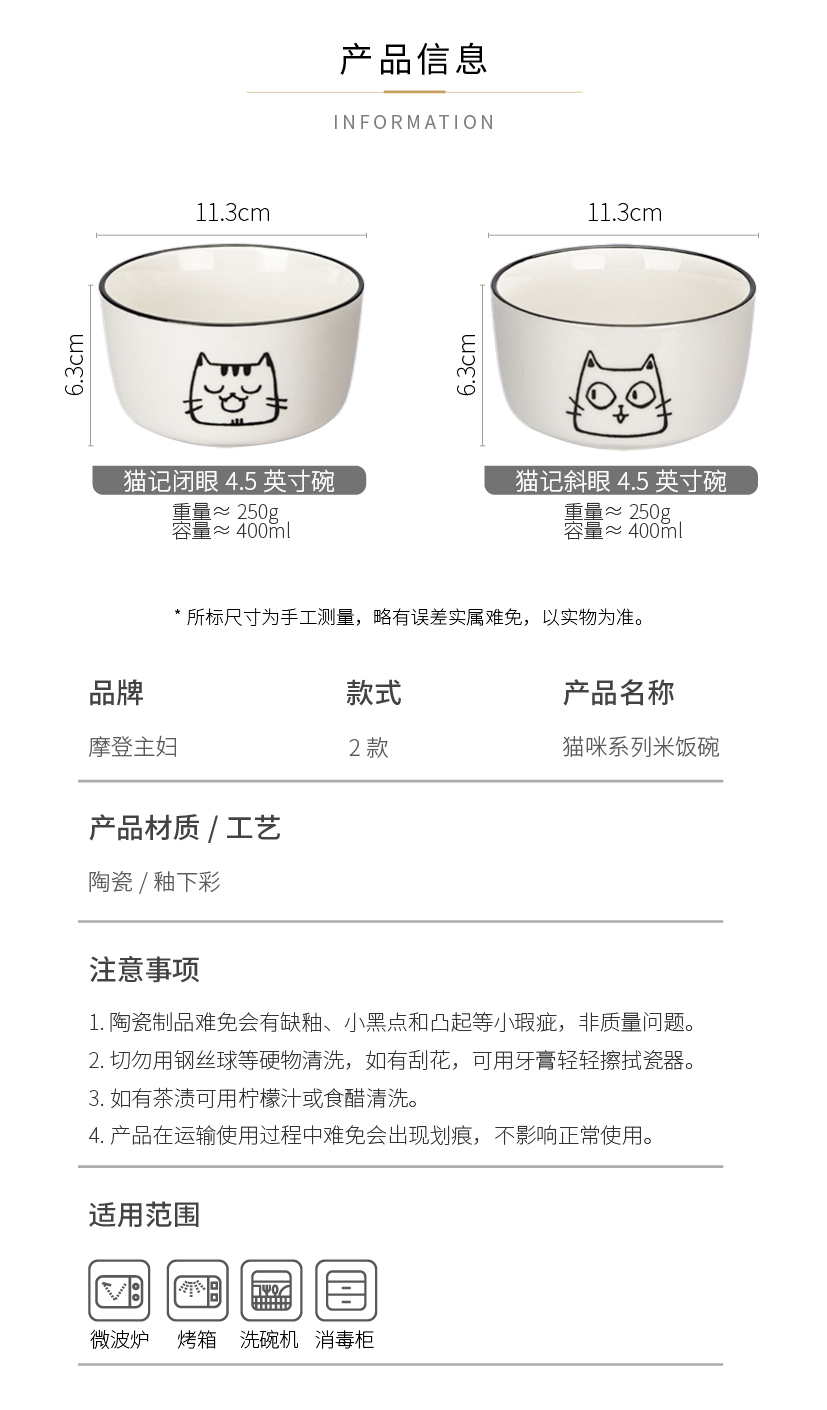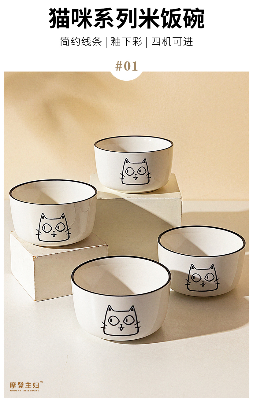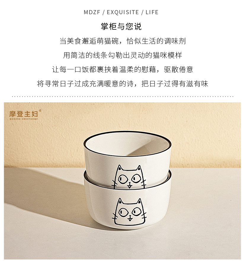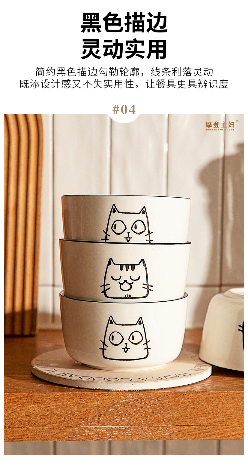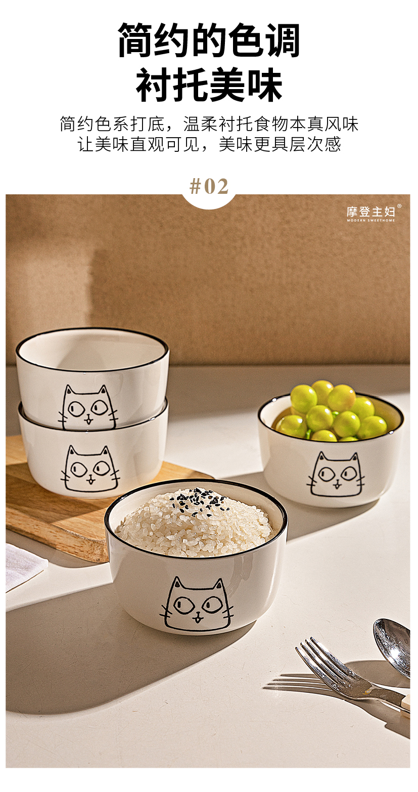 摩登主妇可爱陶瓷米饭碗家用2025新款餐具儿童碗具个人专用吃饭碗