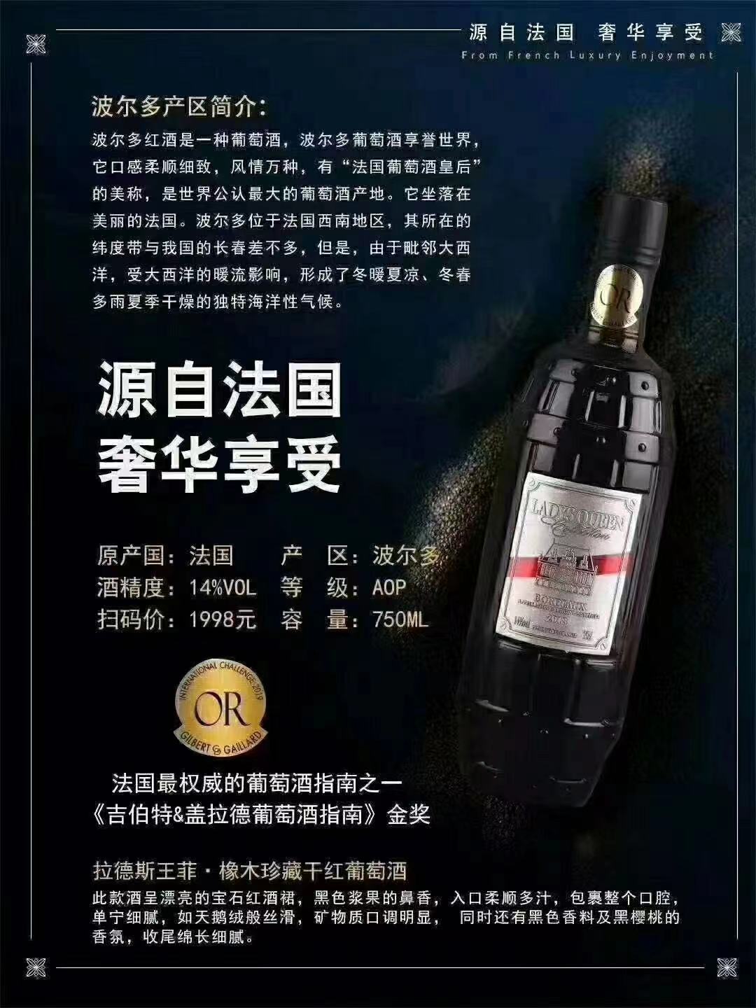【法国原瓶进口 波尔多产区AOP级】拉德斯王菲名品优选金奖干红