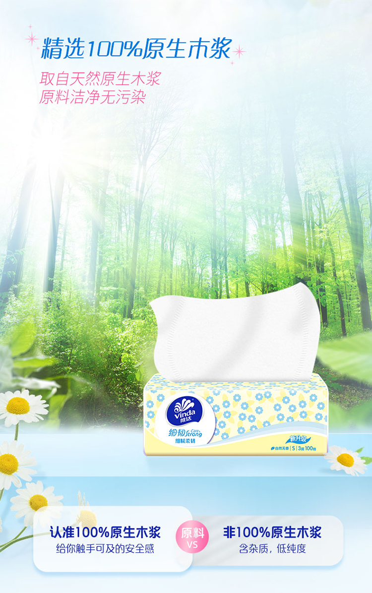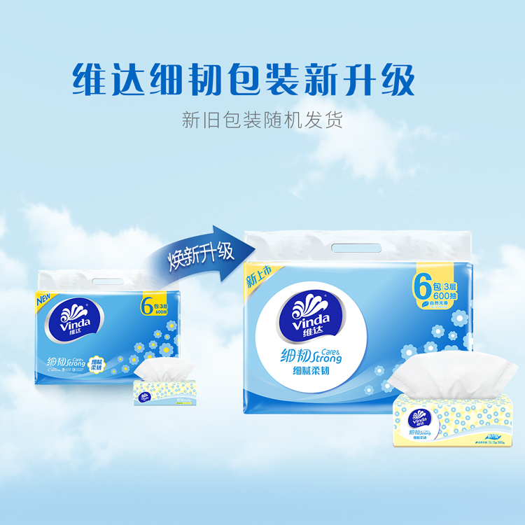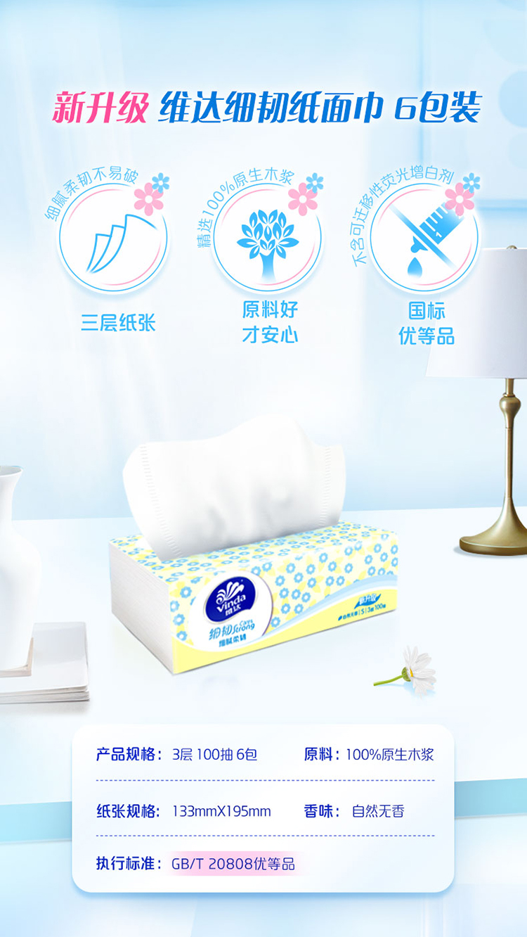 【官方包邮】维达细韧小清新风格软抽3层S码100抽×6包