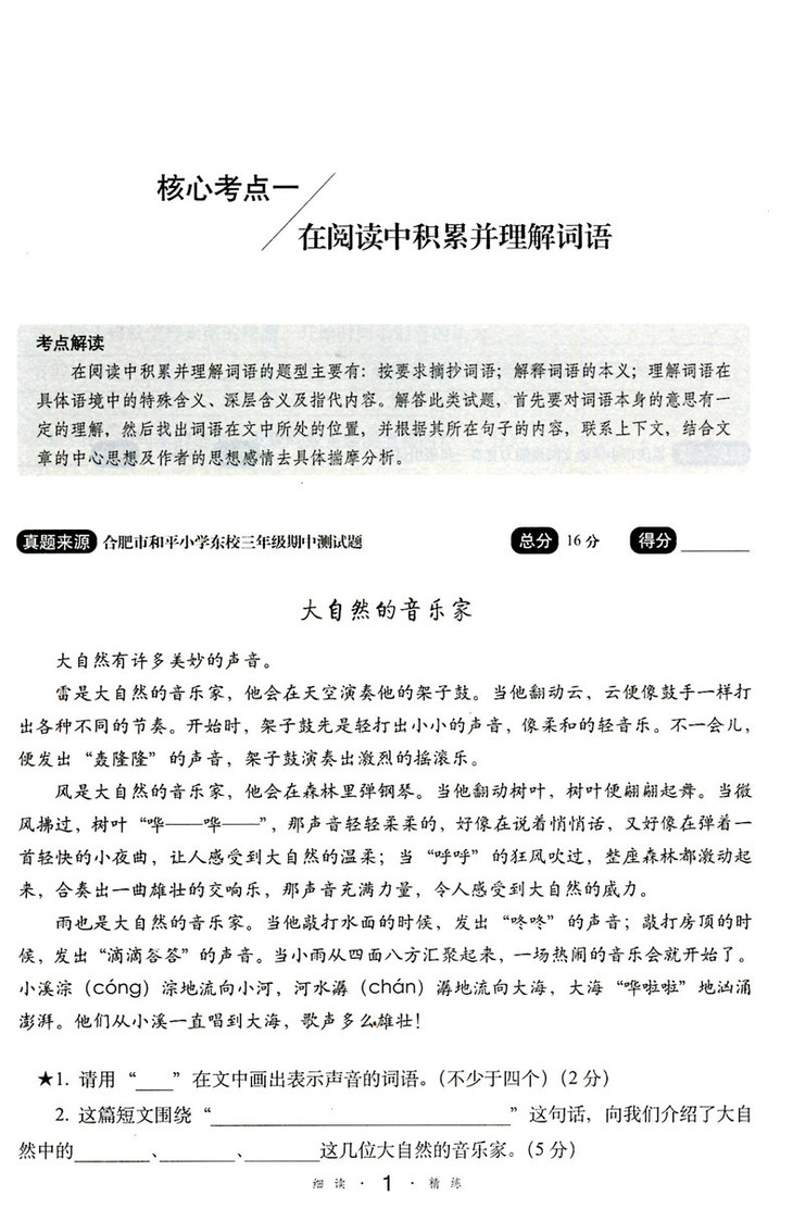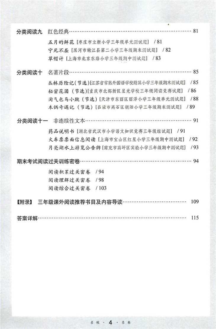 小学语文考试阅读真题精选专练详解三年级 68所教学教科所