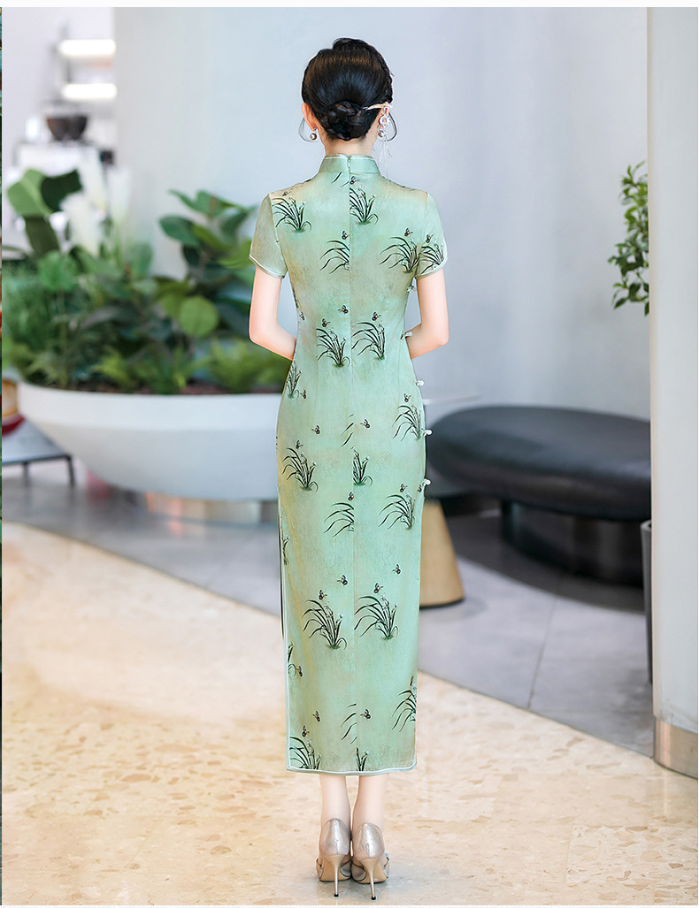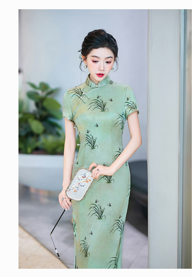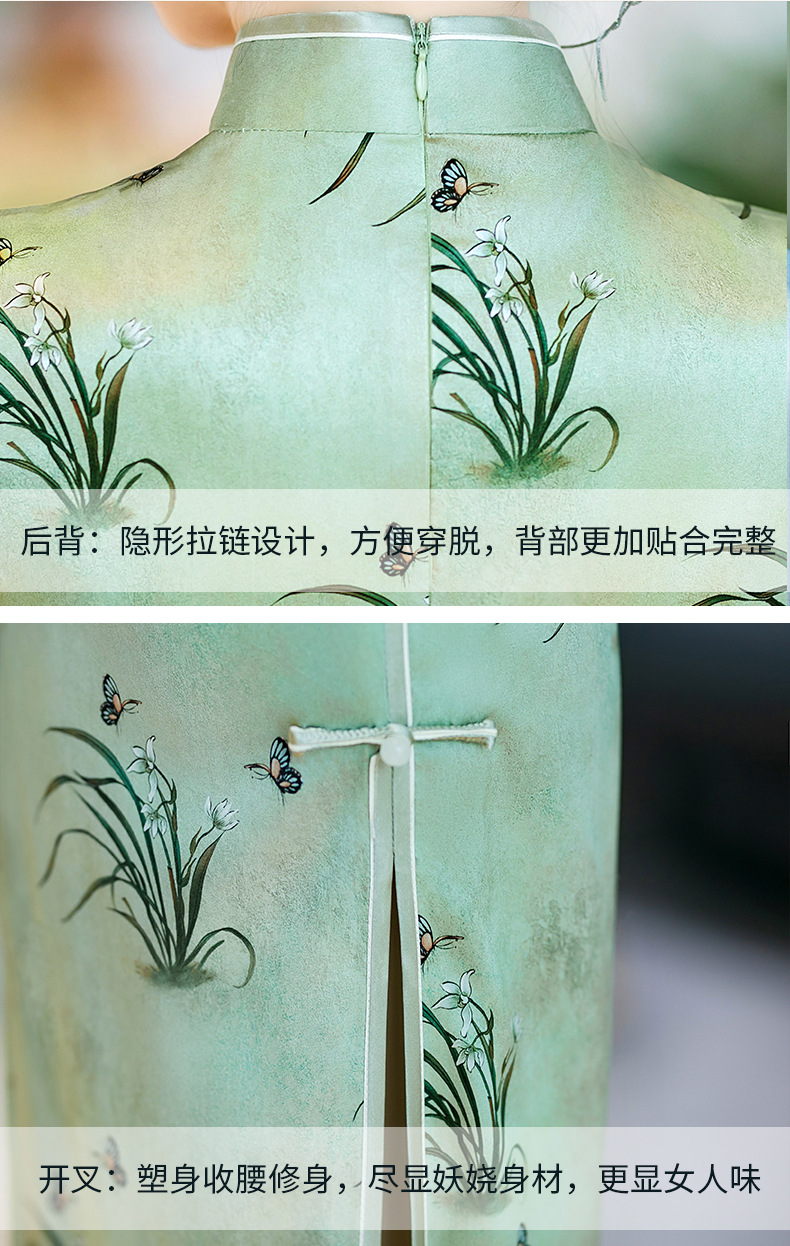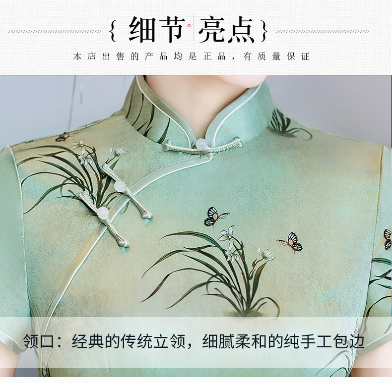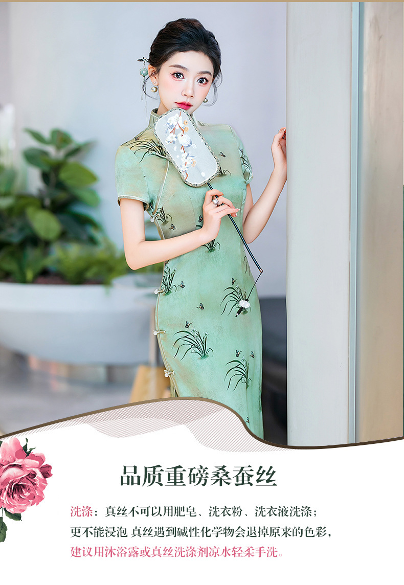 WX-ZS-2506春季新款真丝旗袍中式桑蚕丝连衣裙手工缝制送考宴席日常可穿
