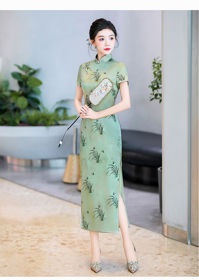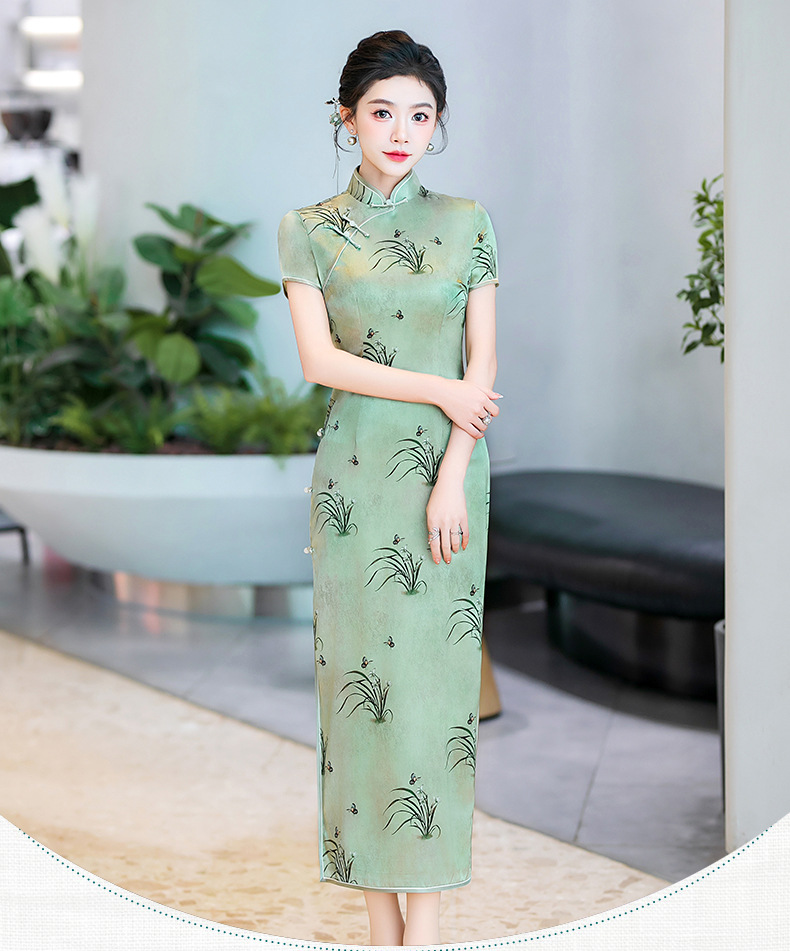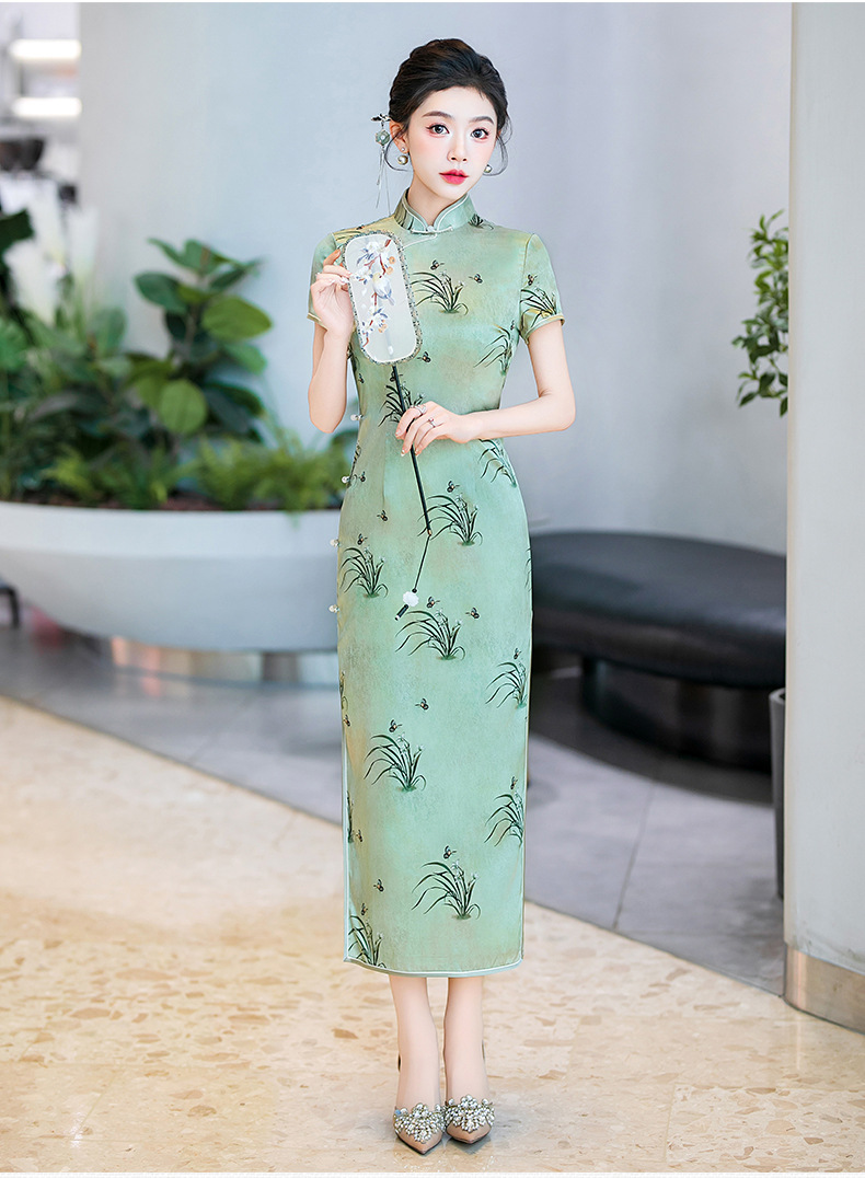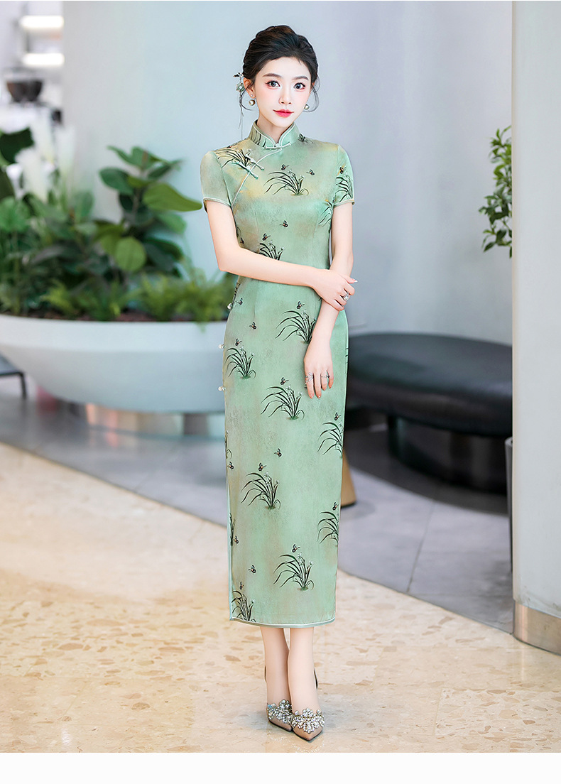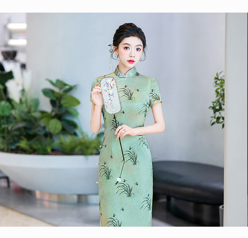WX-ZS-2506春季新款真丝旗袍中式桑蚕丝连衣裙手工缝制送考宴席日常可穿