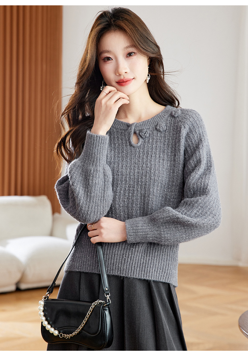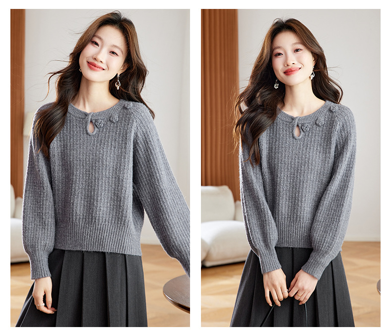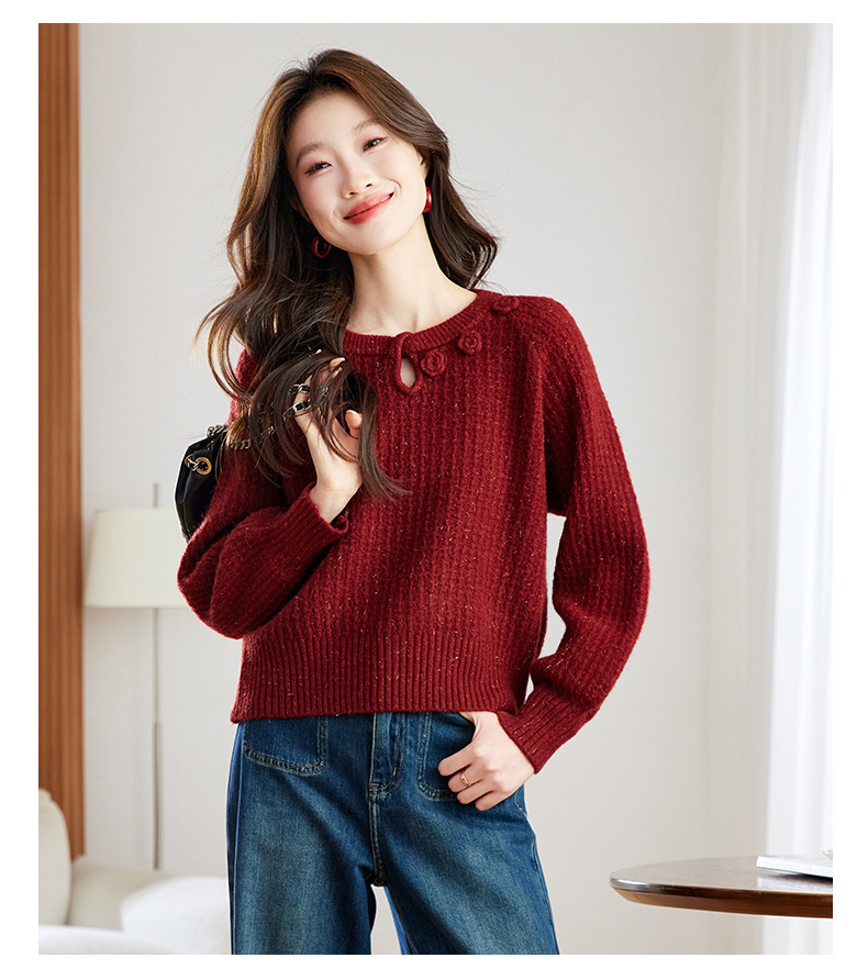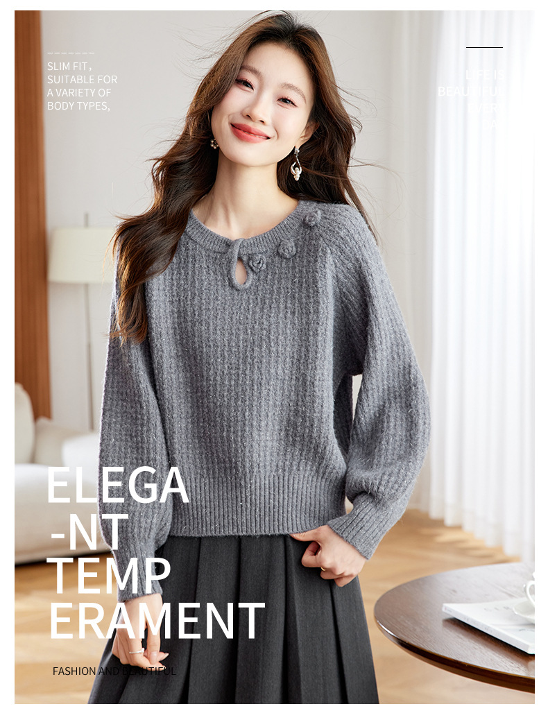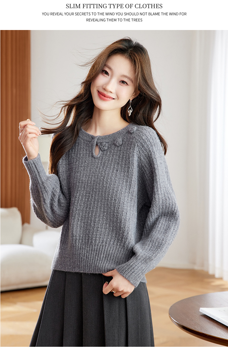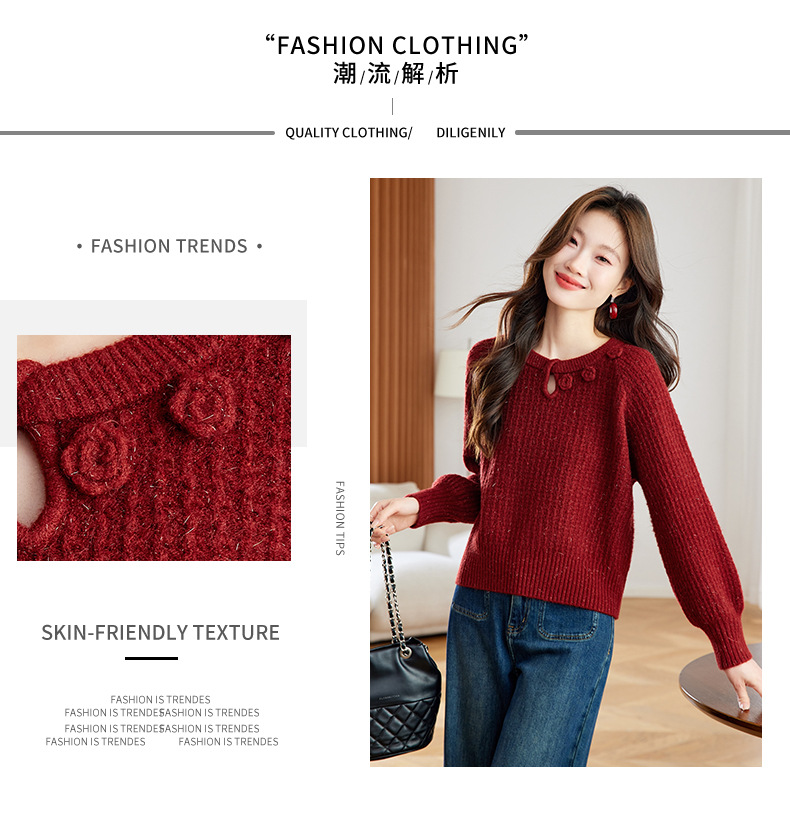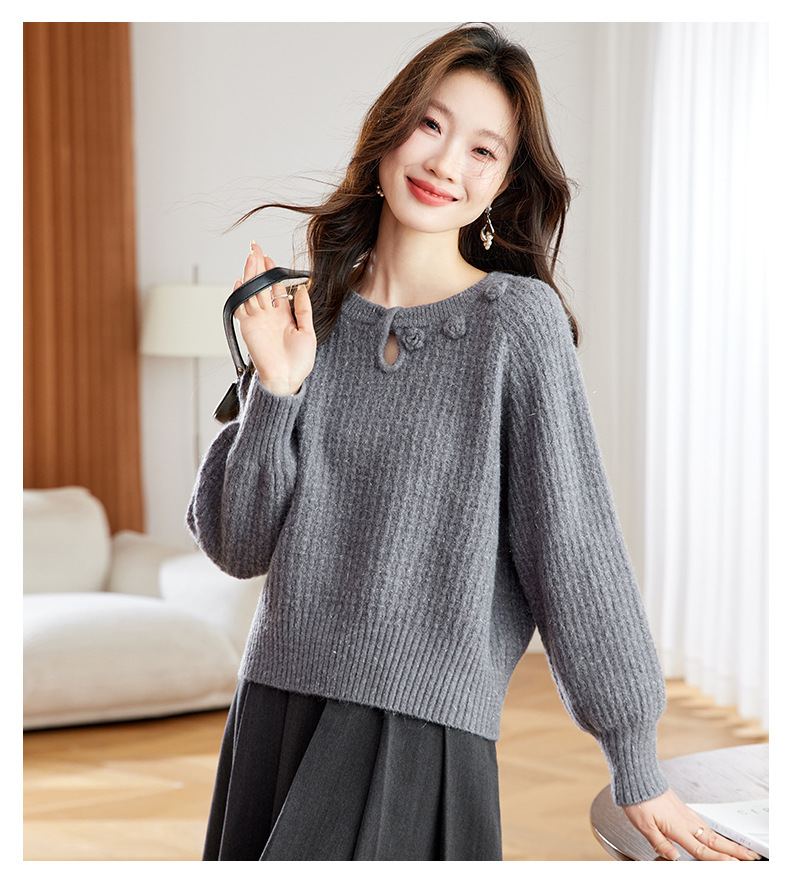 CC立体花朵高级感慵懒毛衣女秋冬宽松洋气内搭小个子针织打底衫上衣