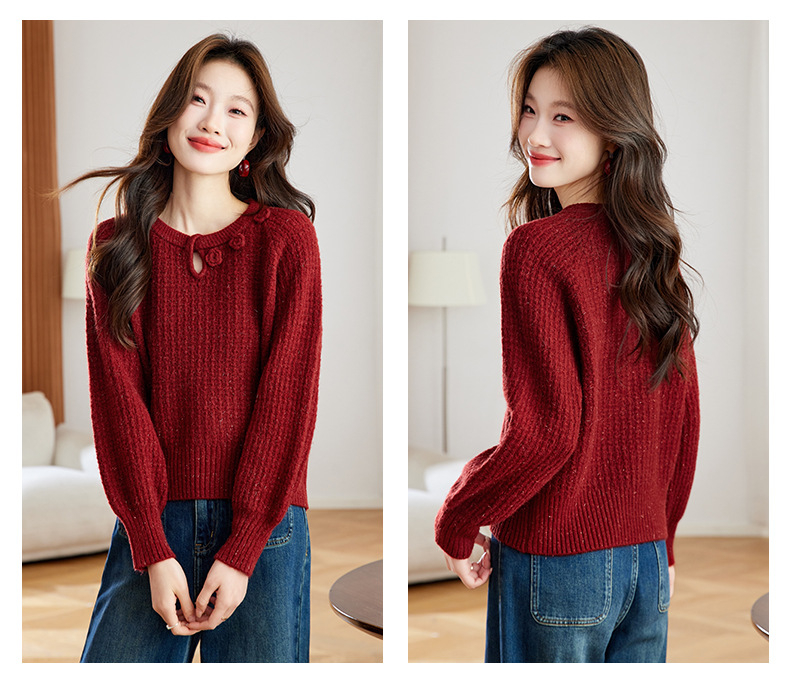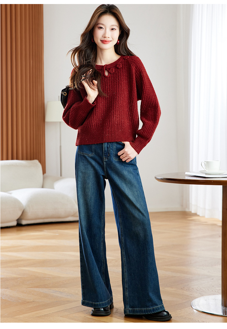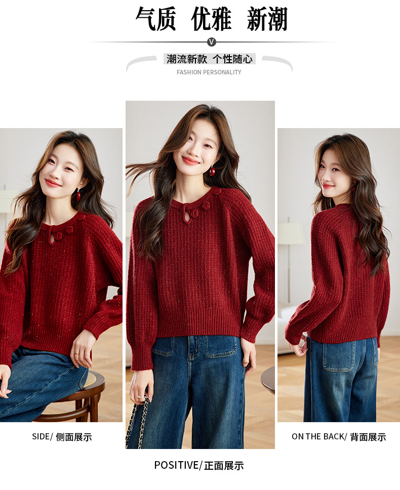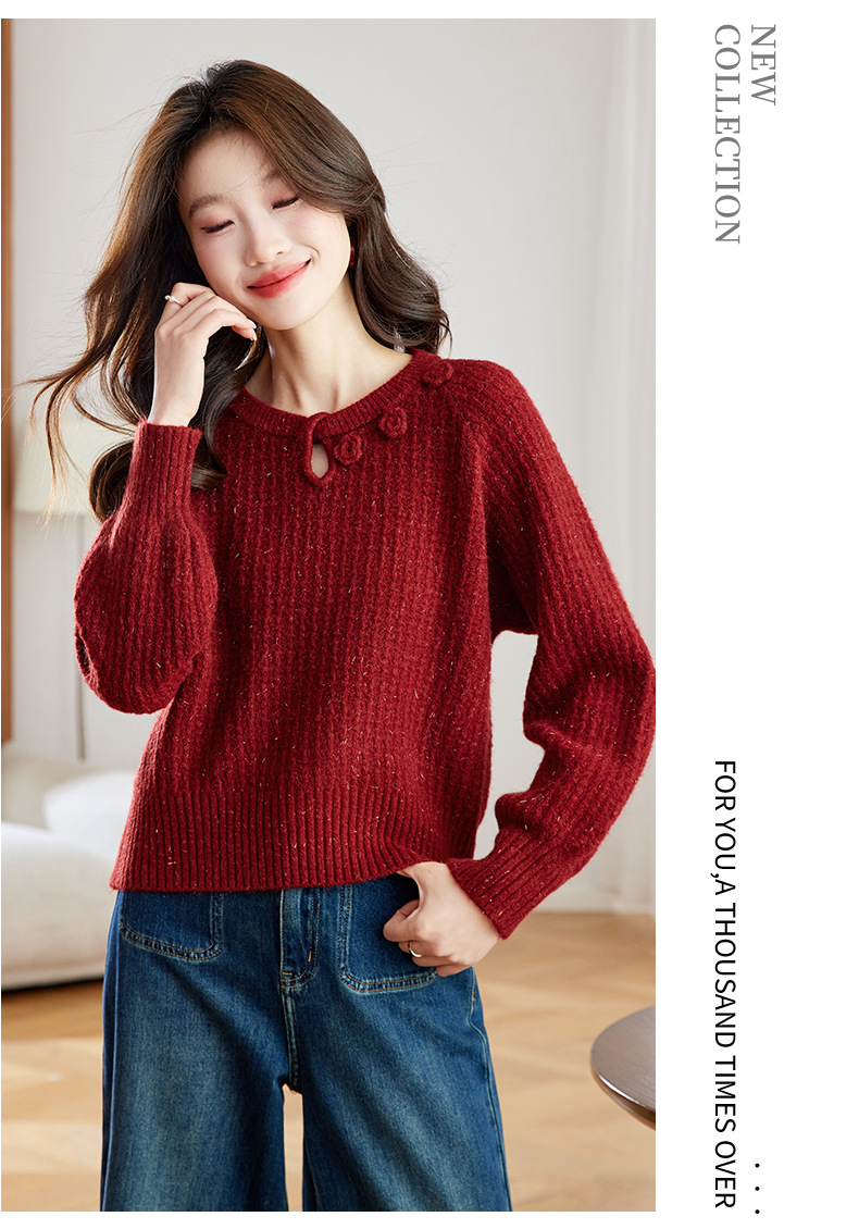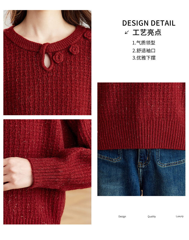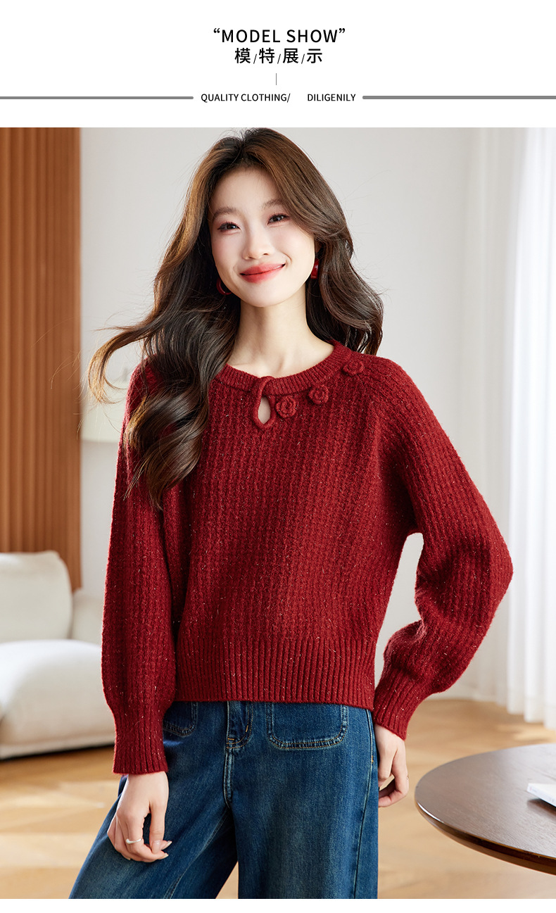 CC立体花朵高级感慵懒毛衣女秋冬宽松洋气内搭小个子针织打底衫上衣