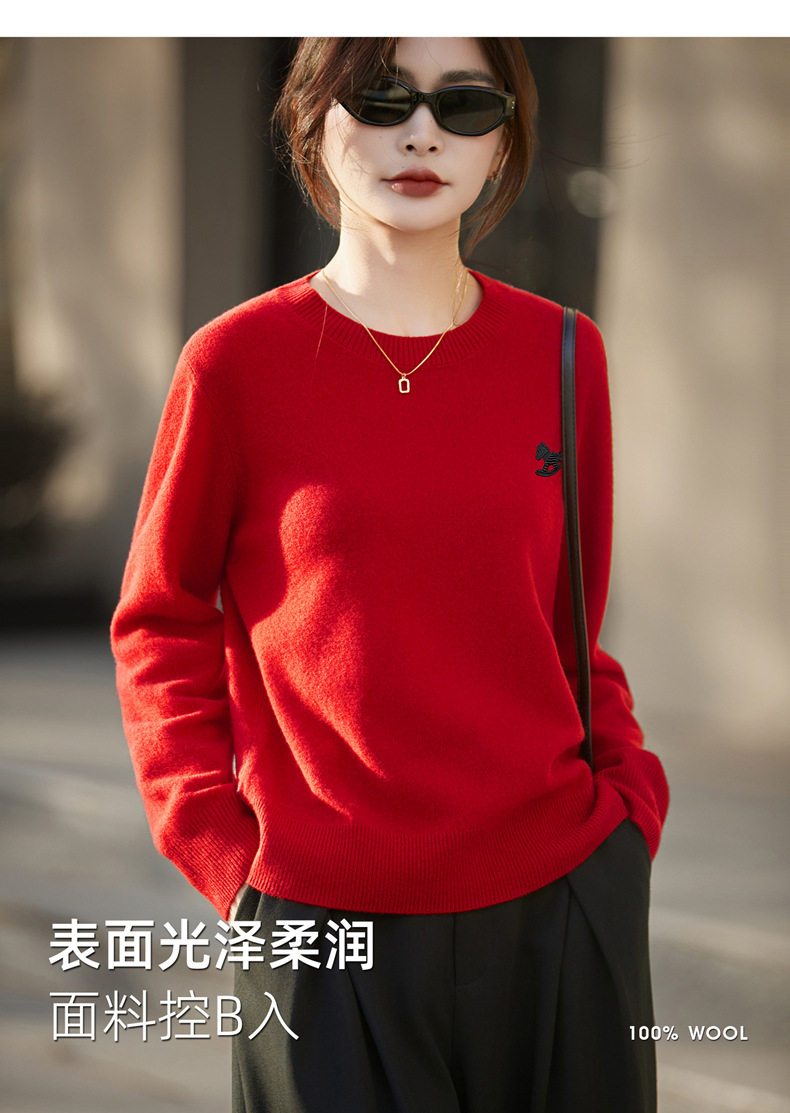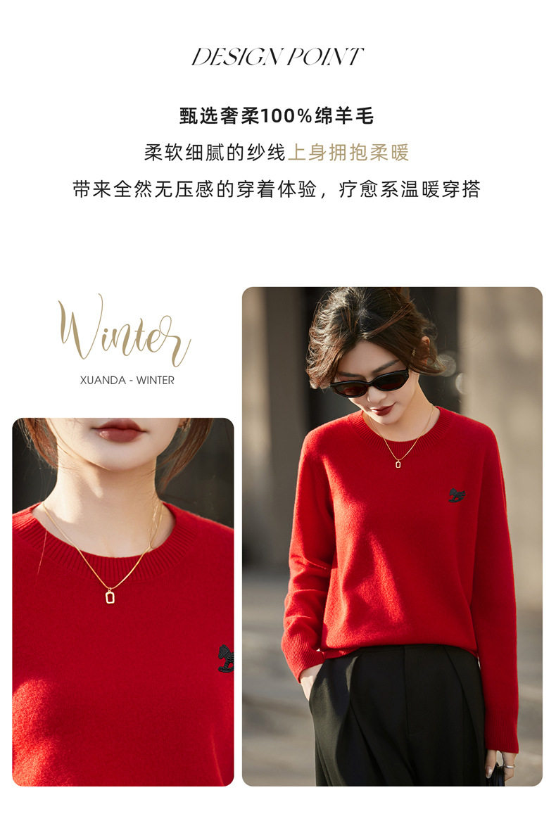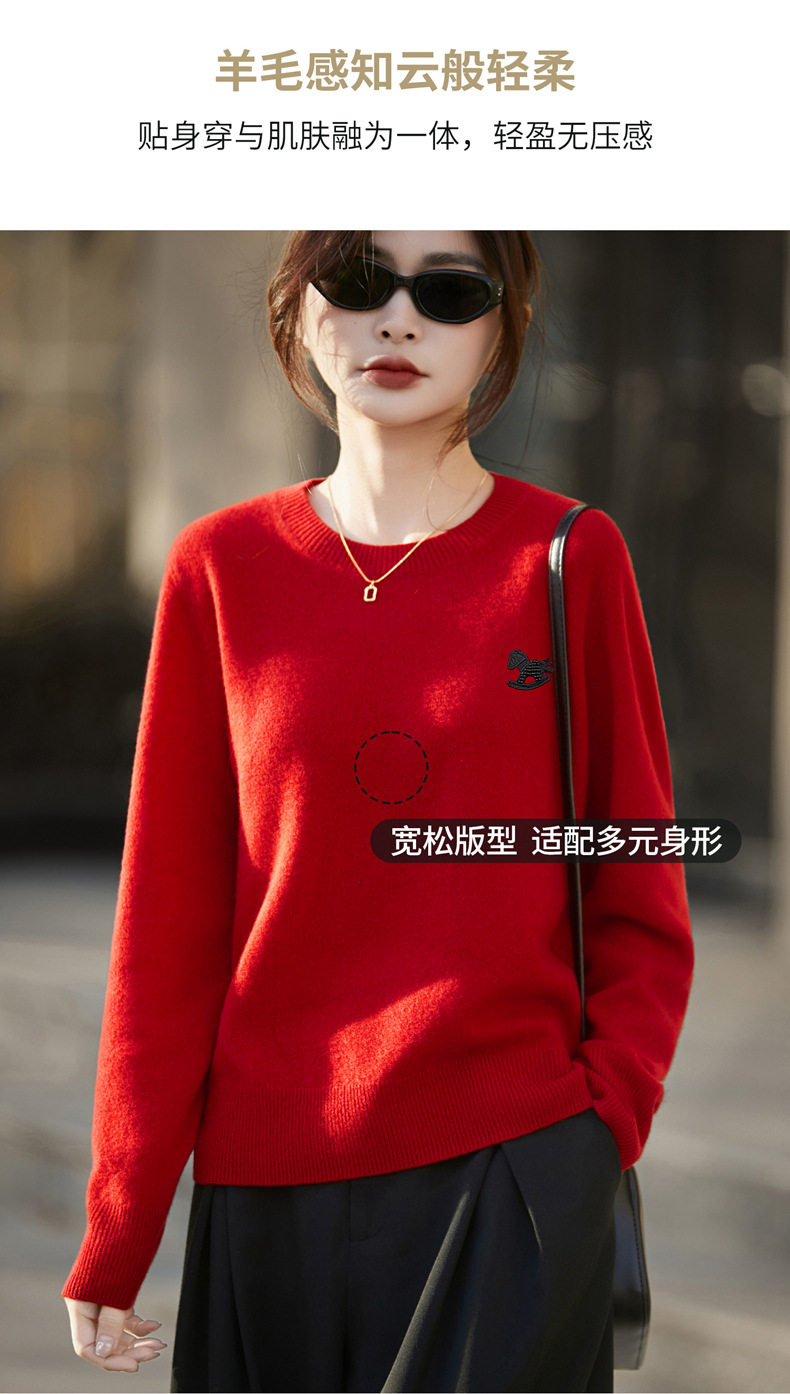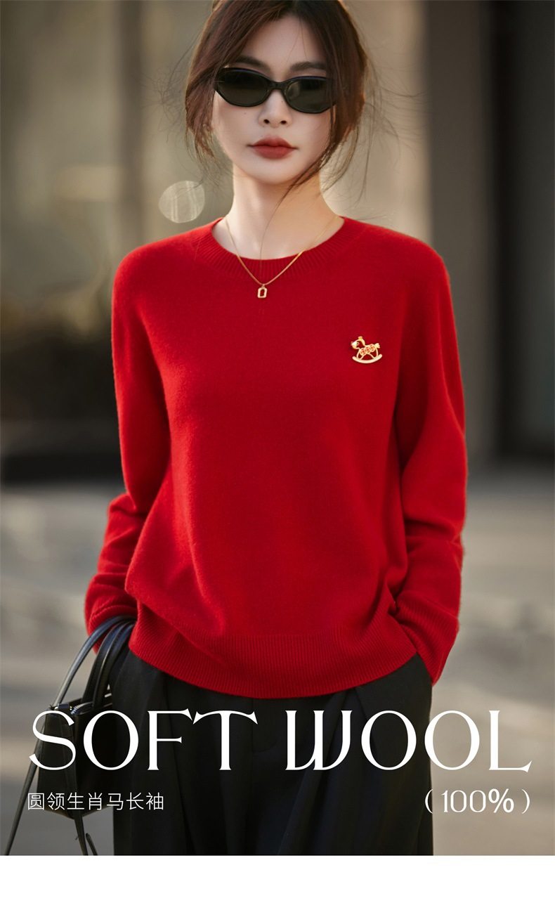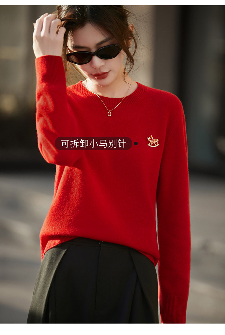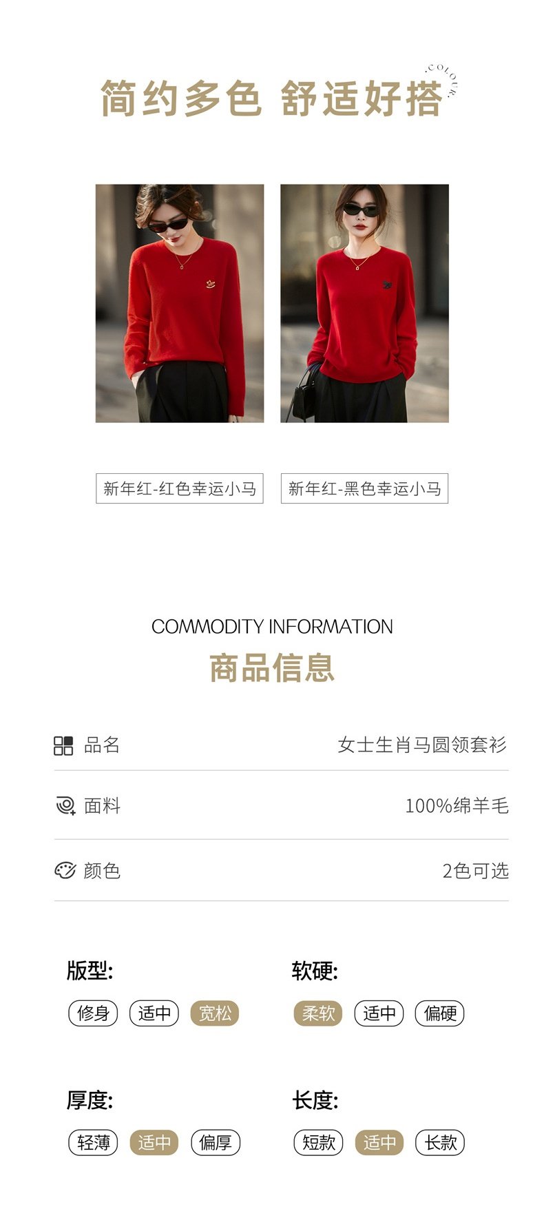 「自」全新升级【铂金会员174/天猫229/差价55】(04300)洛诗琳新年红羊毛衫2025秋冬设计感小马装饰圆领针织毛衣