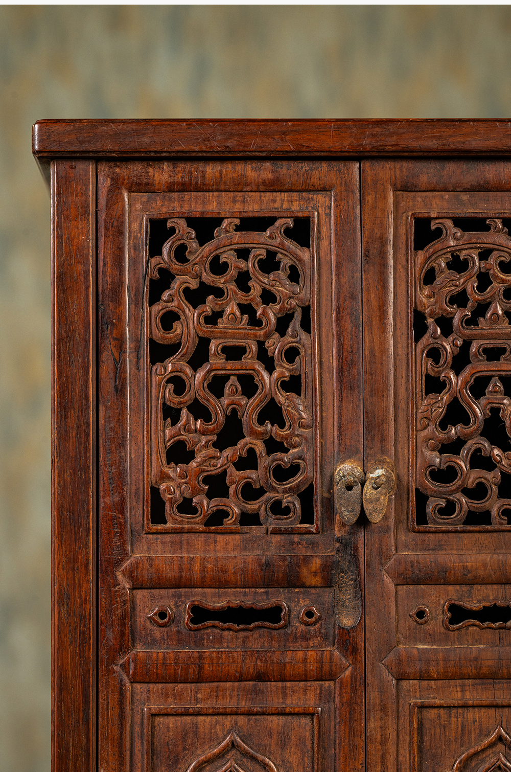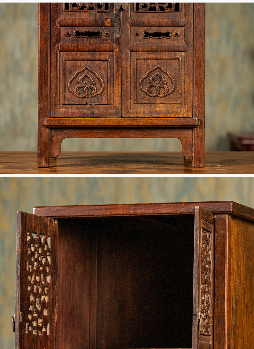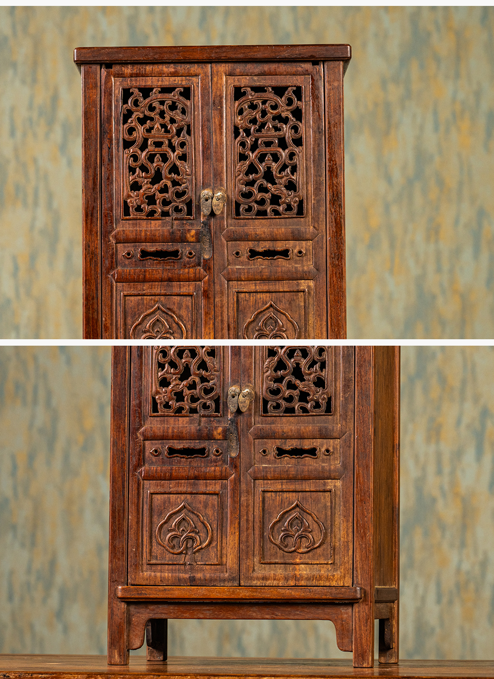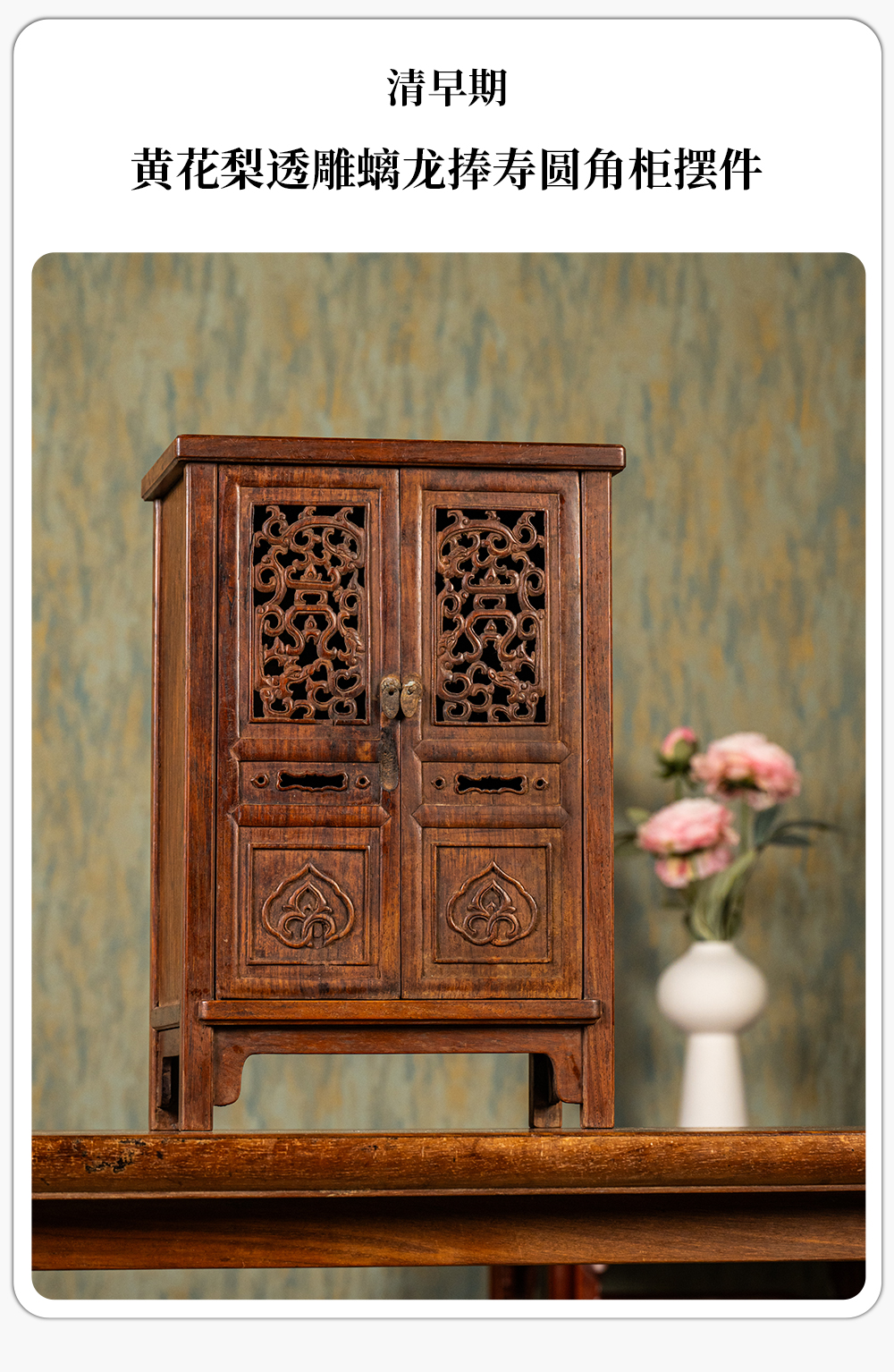清早期 黄花梨透雕螭龙捧寿圆角柜摆件