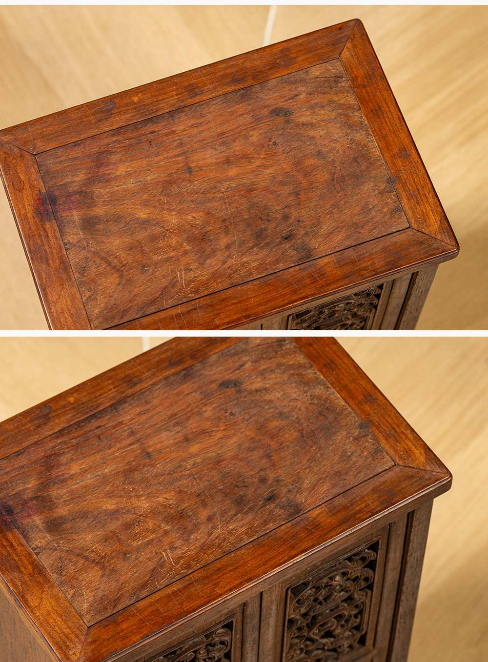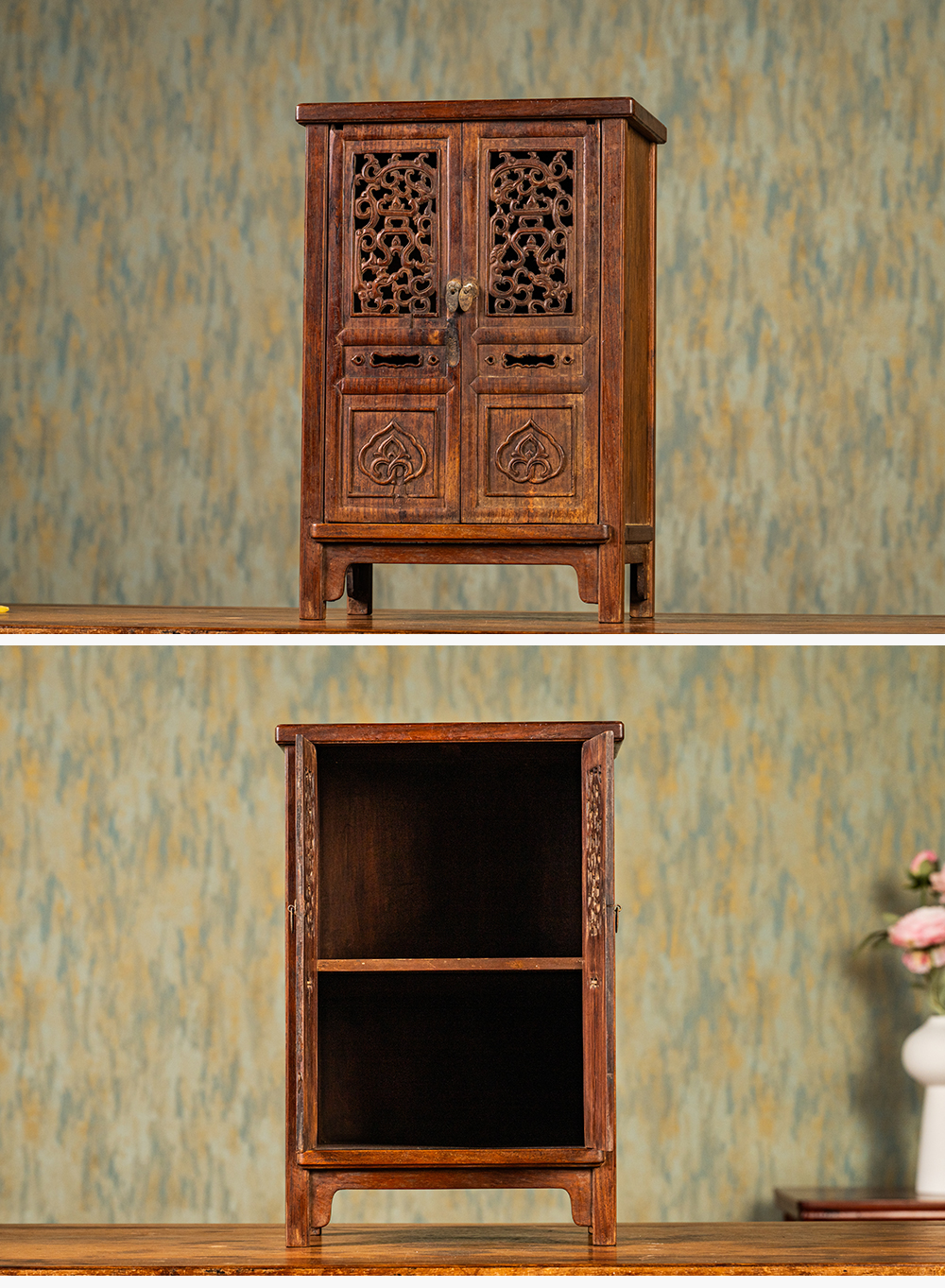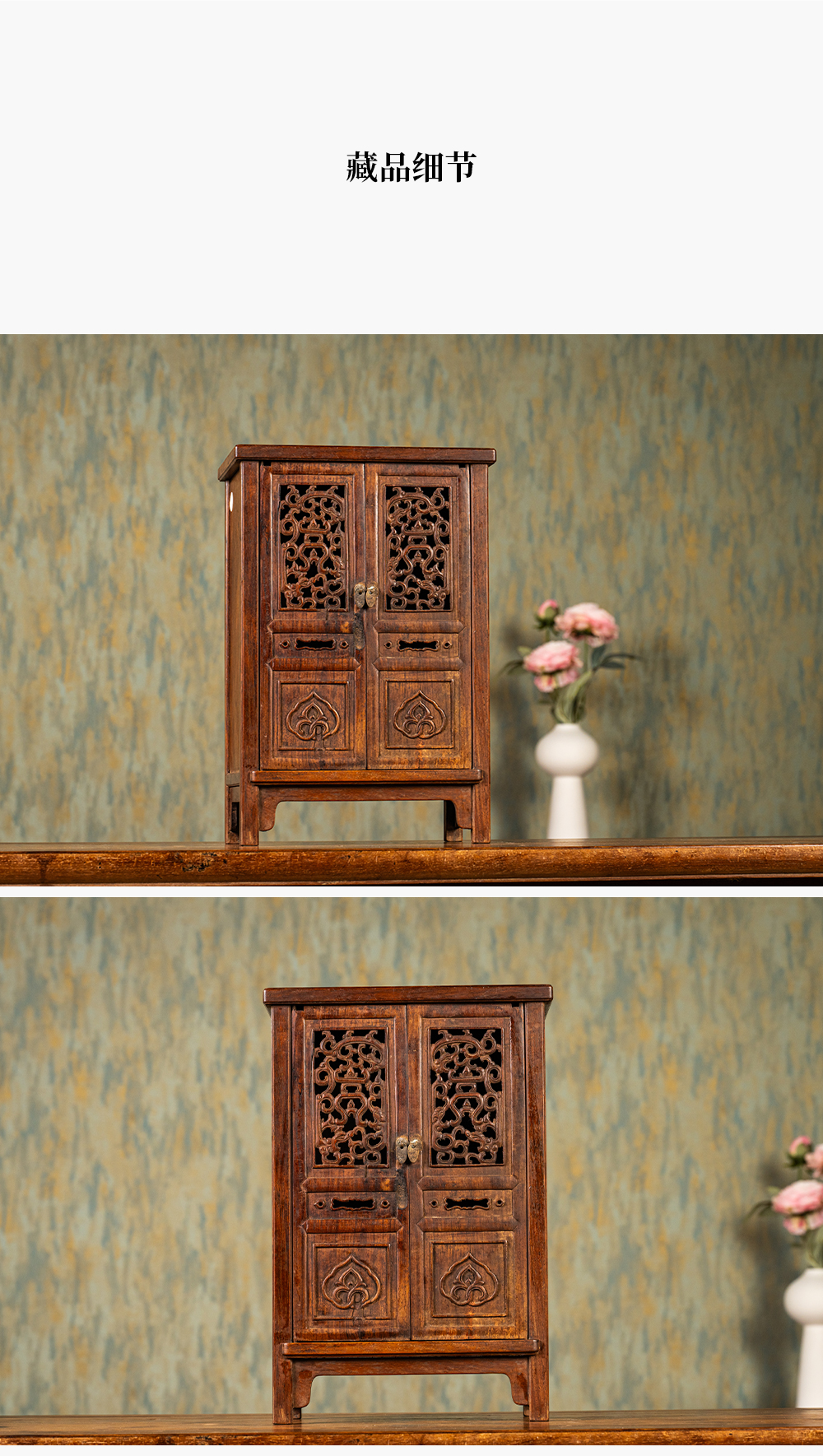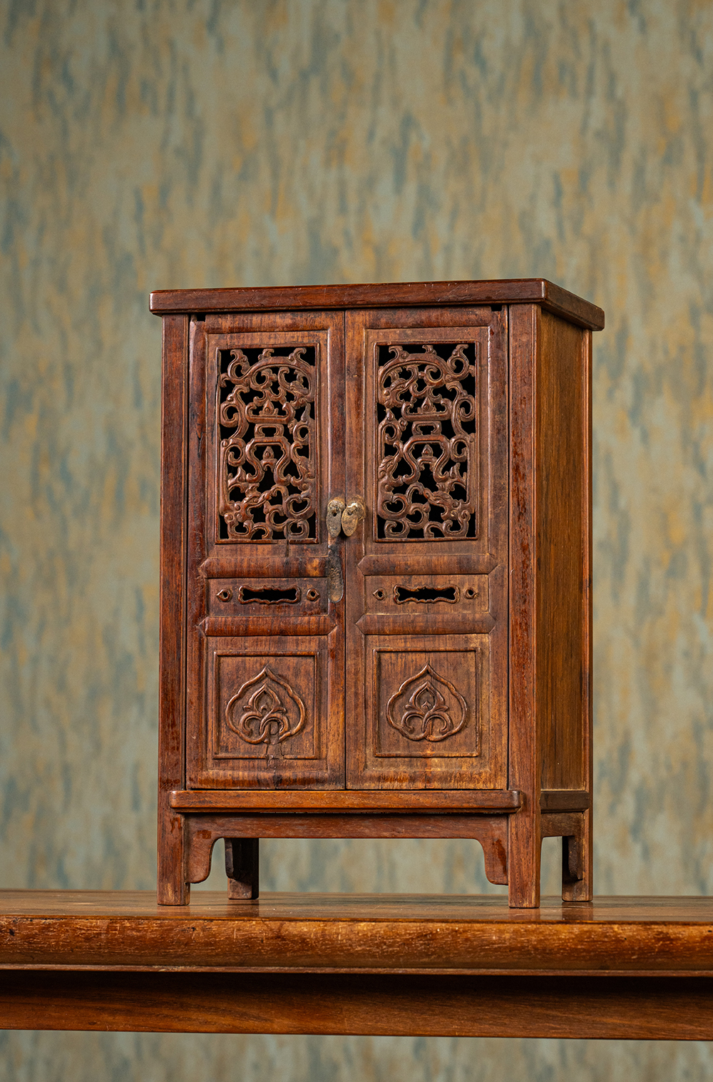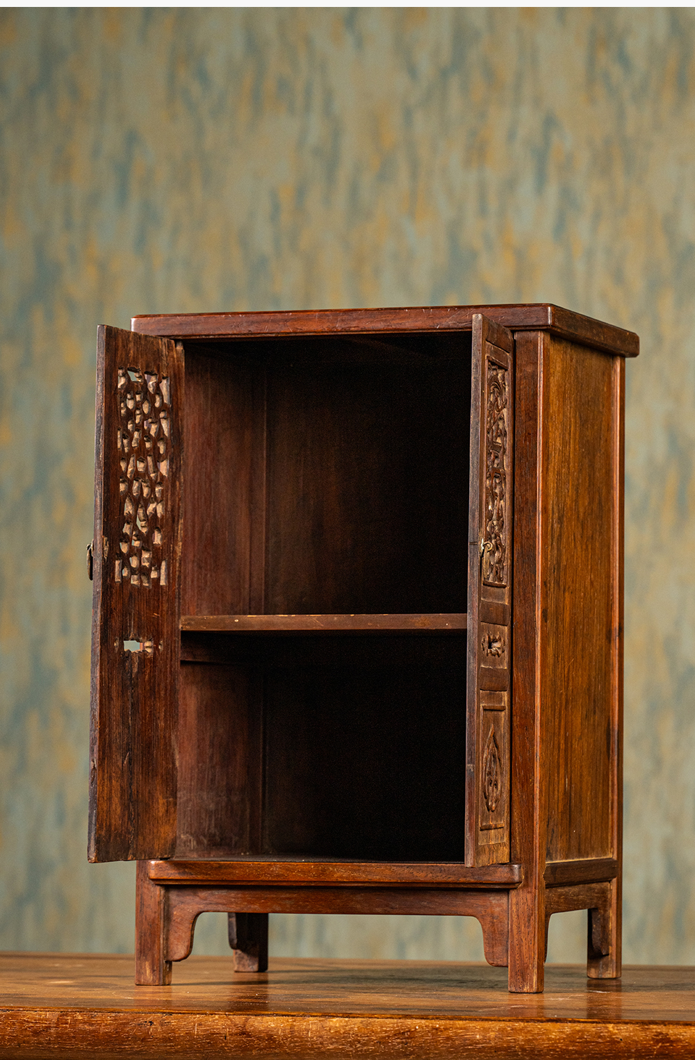 清早期 黄花梨透雕螭龙捧寿圆角柜摆件