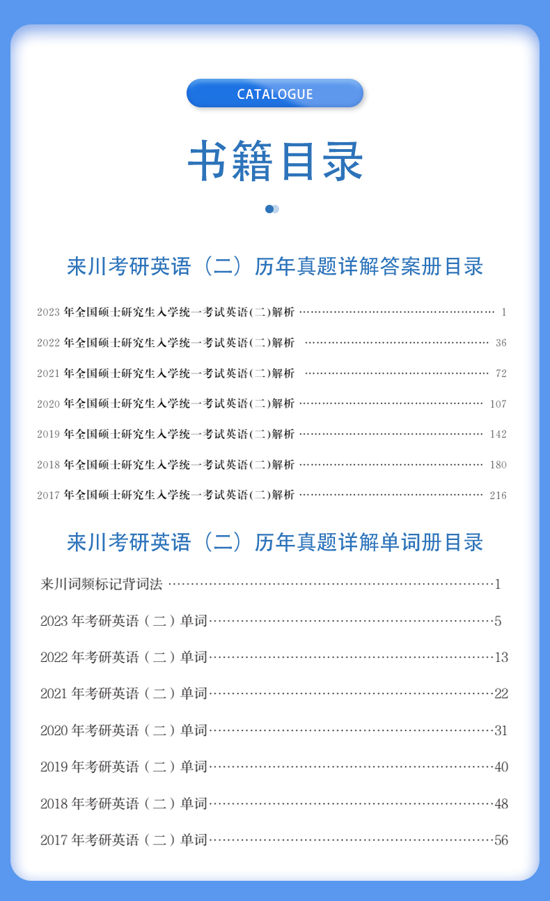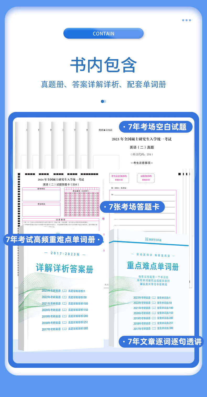 2024来川考研英语二真题详解2017-2023共7年真题含答题卡含单词册