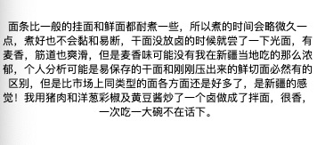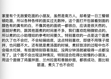 众测评价都说这个面条好吃,有的是孩子吃完了还想再吃,有的是自小吃面条的北方人,吃完了还来问有没有,还有的家里老人也说,这个跟市面上卖的面条 口感 筋道完全不一样。
