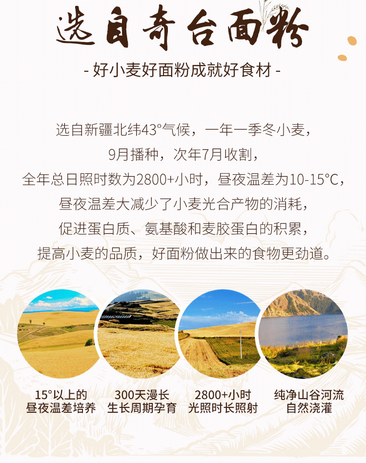 1.面粉选用新疆奇台县冬小麦雪花粉,麦香浓郁
