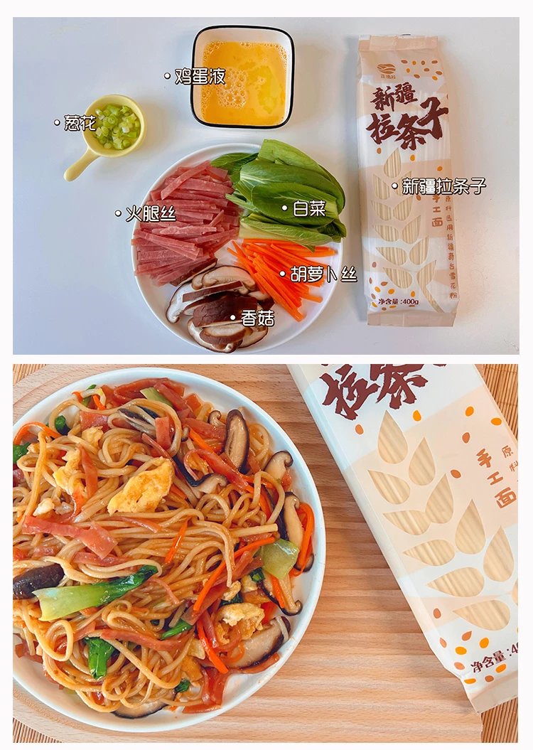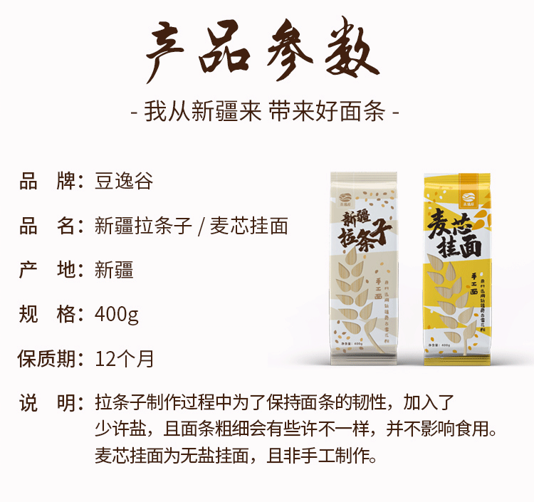 豆逸谷新疆拉条子,采用新疆奇台雪花粉,超有弹性有嚼劲,根根爽滑筋道,做汤面炒面拌面都适合,吸溜吸溜大口吃面
