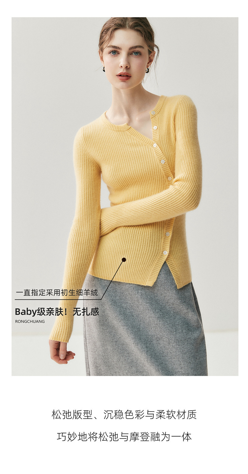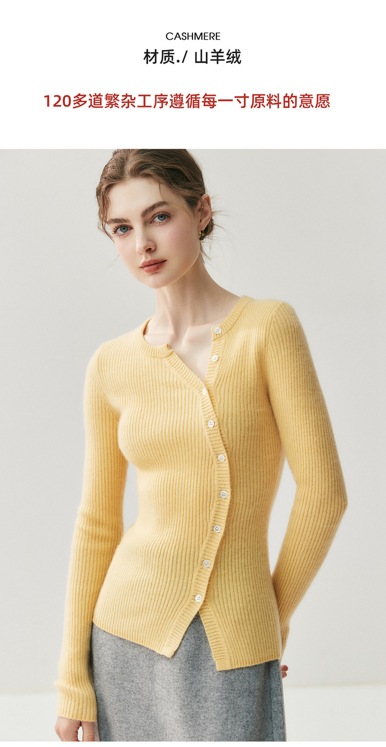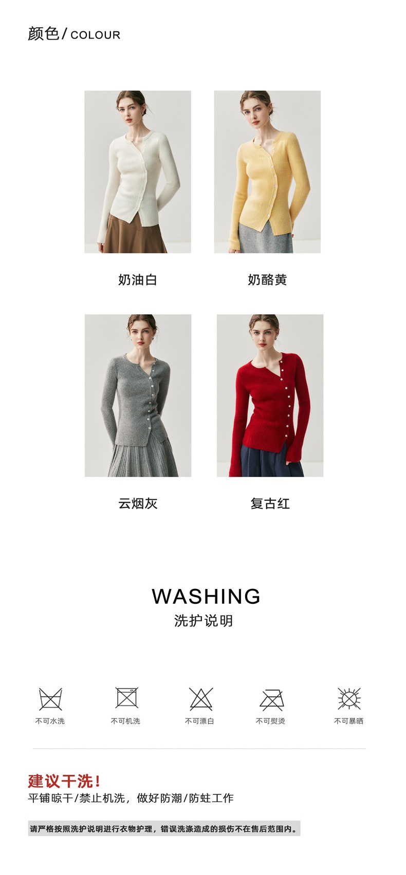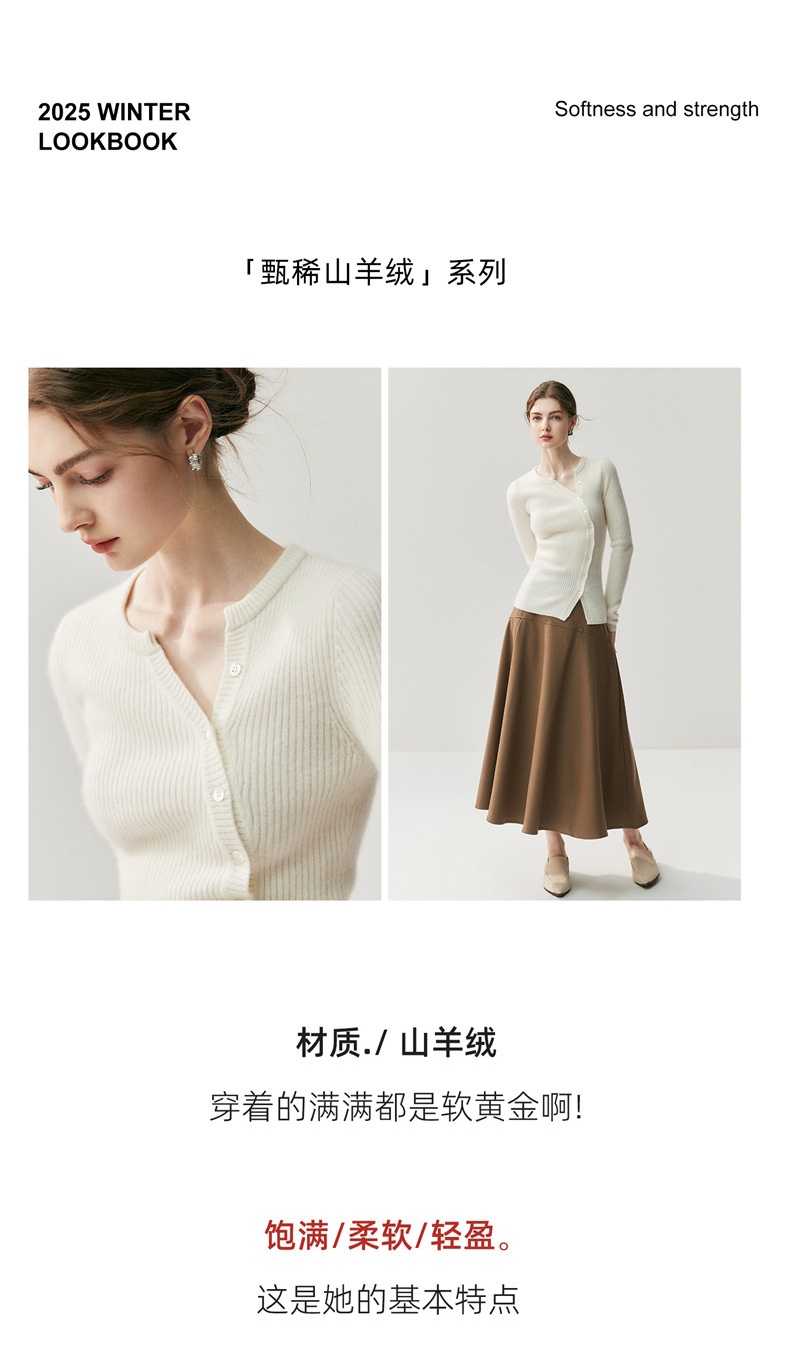 「高货qj」全新升级【铂金会员431/天猫579/差价148】(01311)洛诗琳优雅羊绒混纺开衫2025秋冬百搭显瘦侧开叉羊毛衫