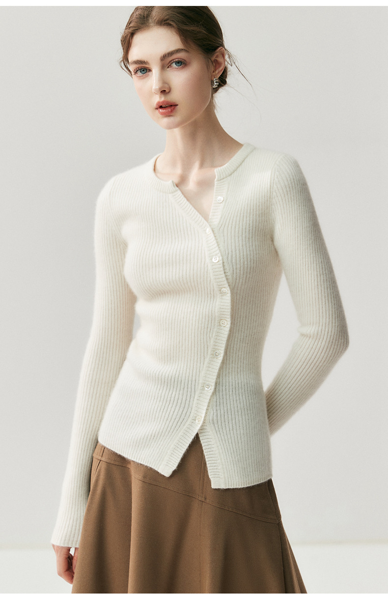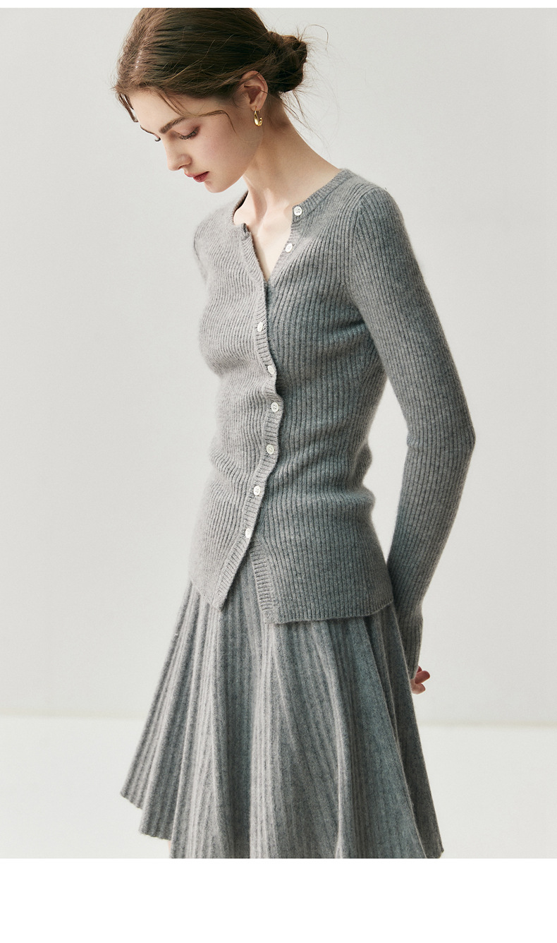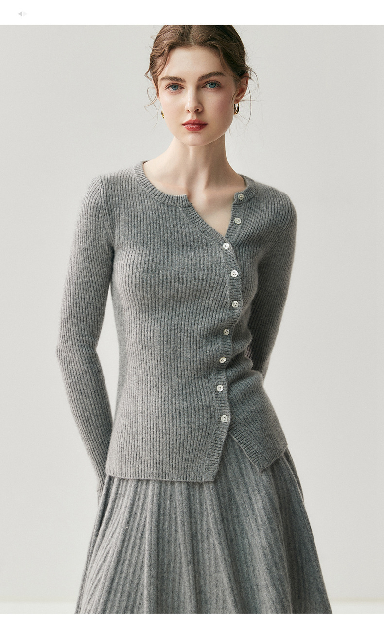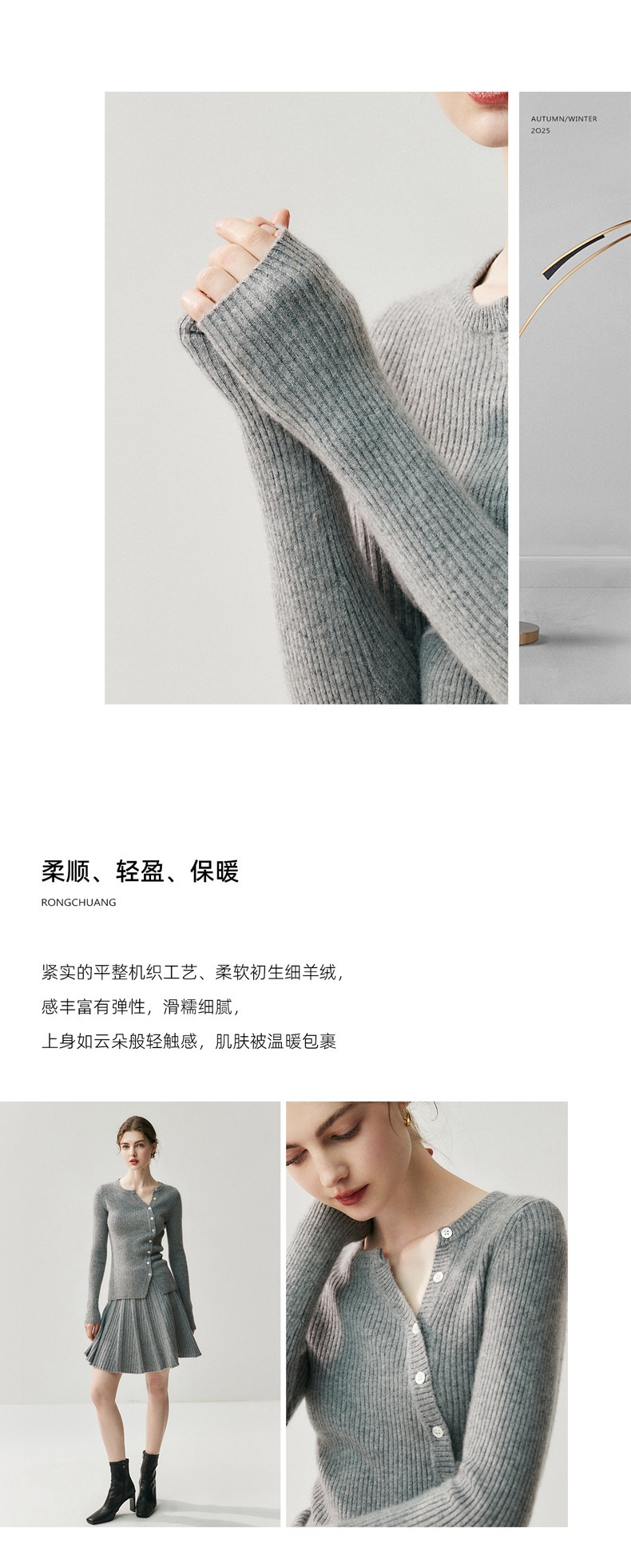 「高货qj」全新升级【铂金会员431/天猫579/差价148】(01311)洛诗琳优雅羊绒混纺开衫2025秋冬百搭显瘦侧开叉羊毛衫