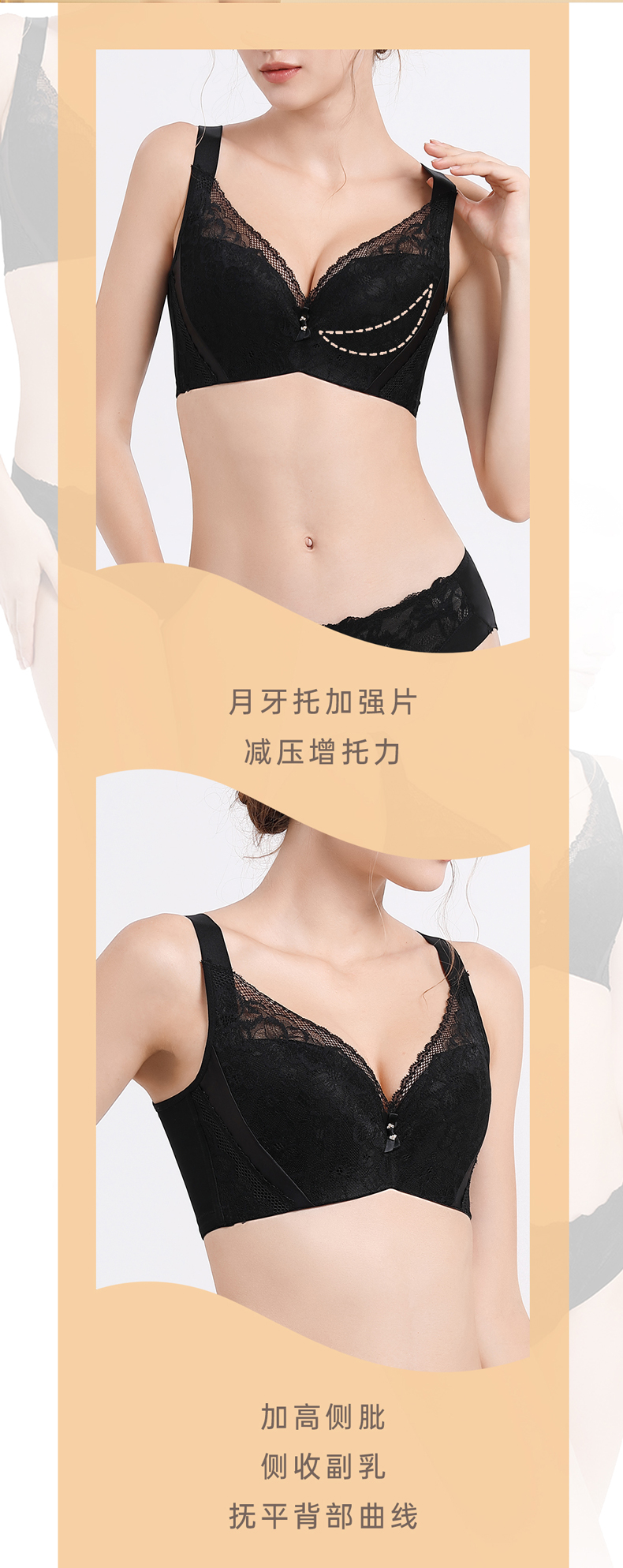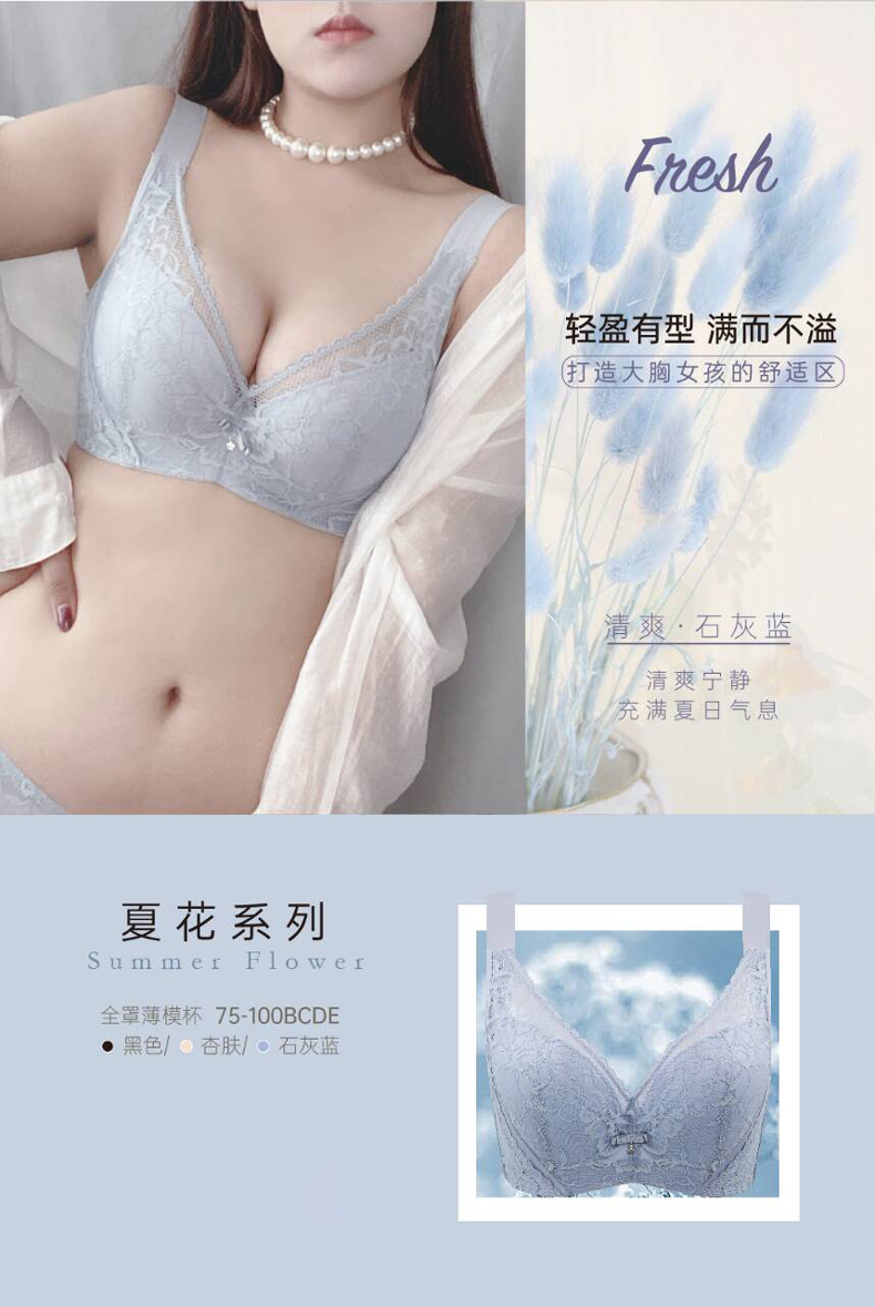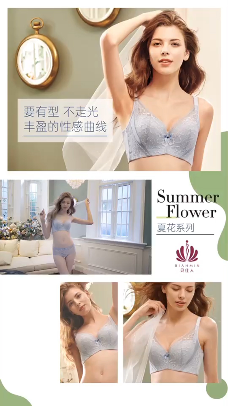 贝佳人新品大码文胸性感蕾丝软钢圈上托侧收调整型文胸女BW902008