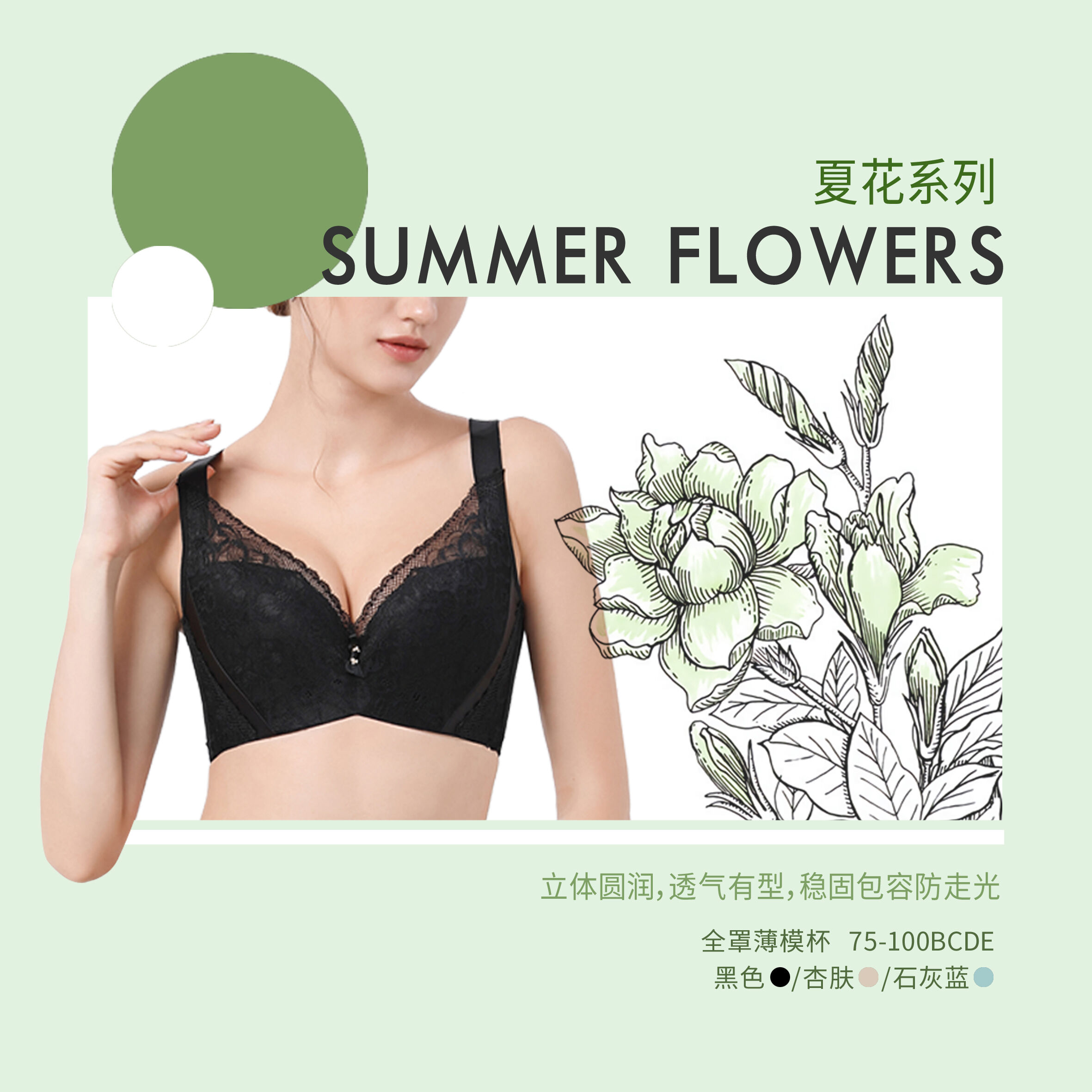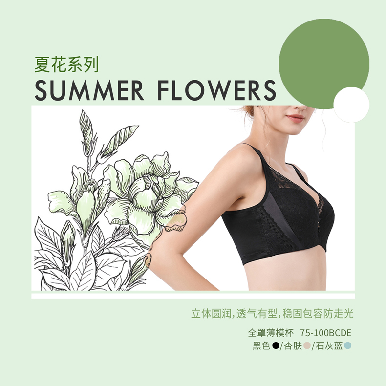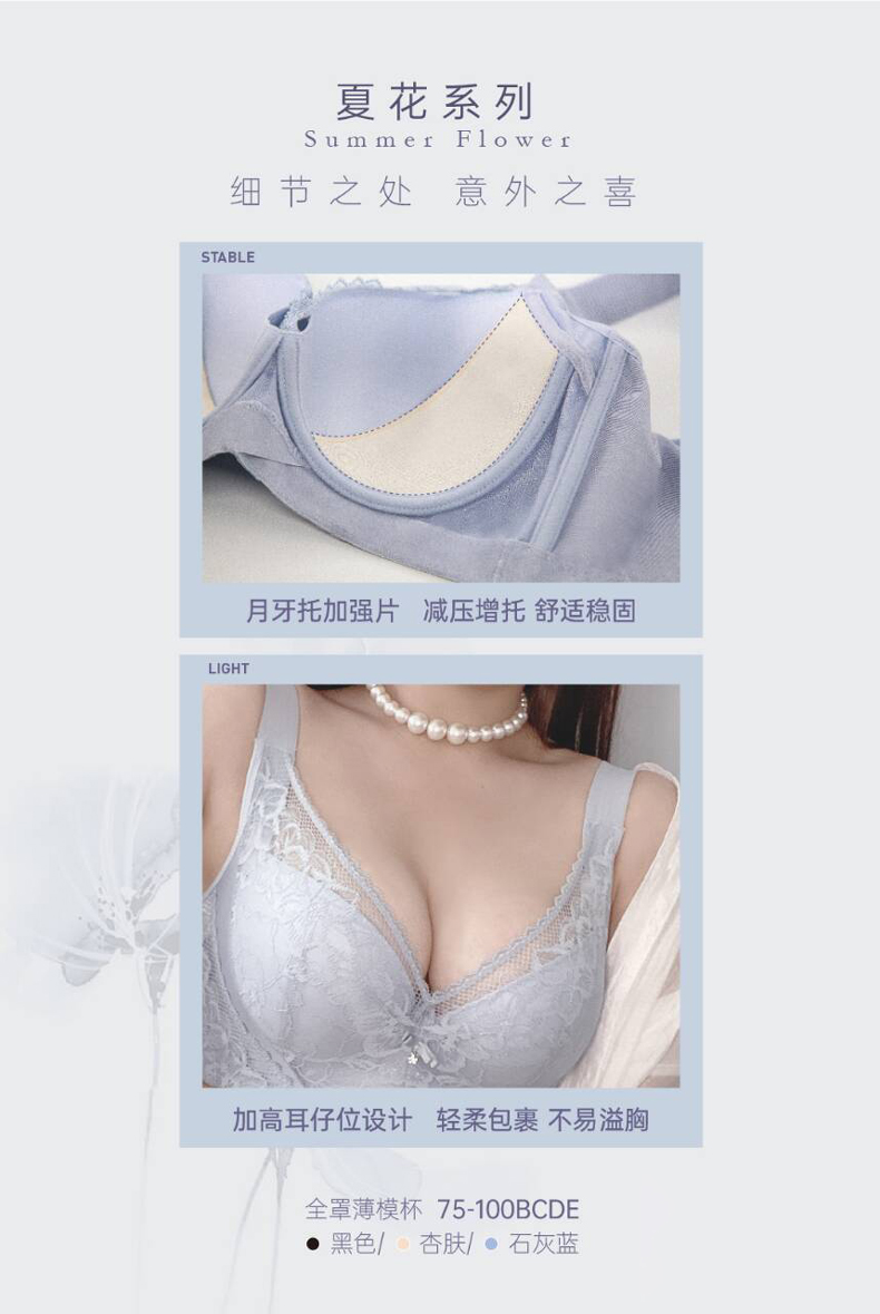 贝佳人薄杯文胸3/4杯舒适无钢圈上托聚拢稳固内衣女BW952008
