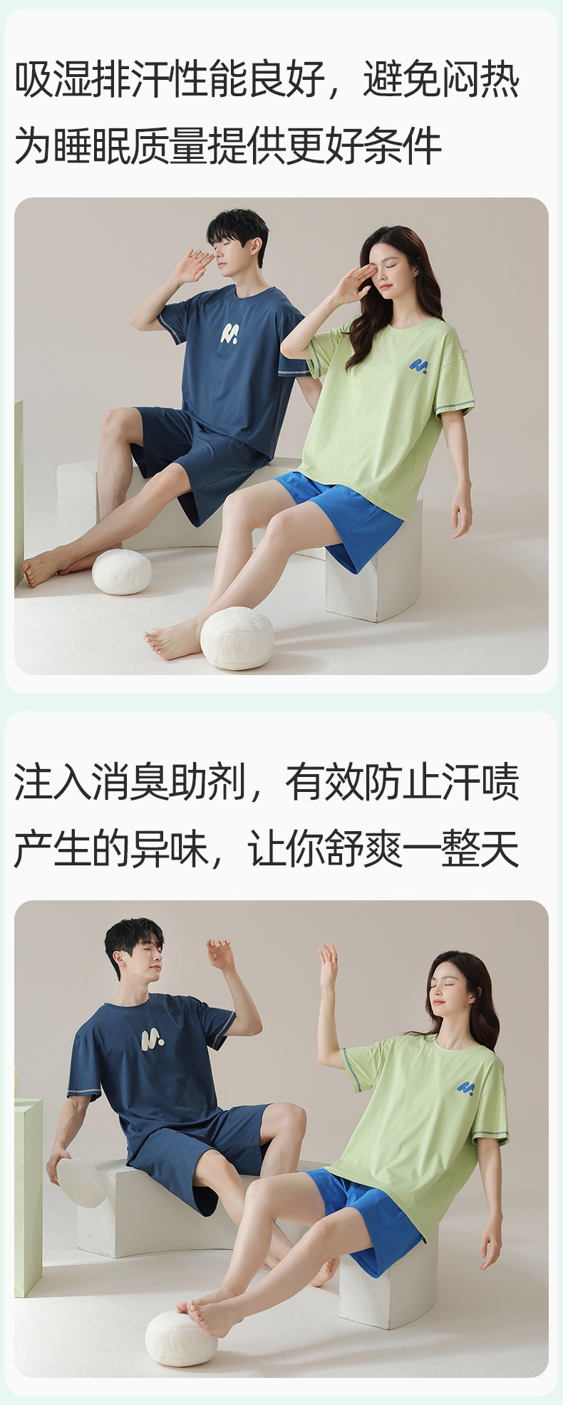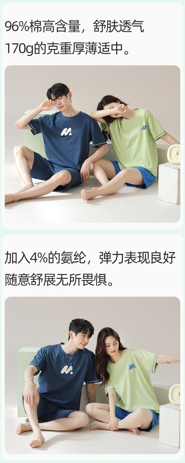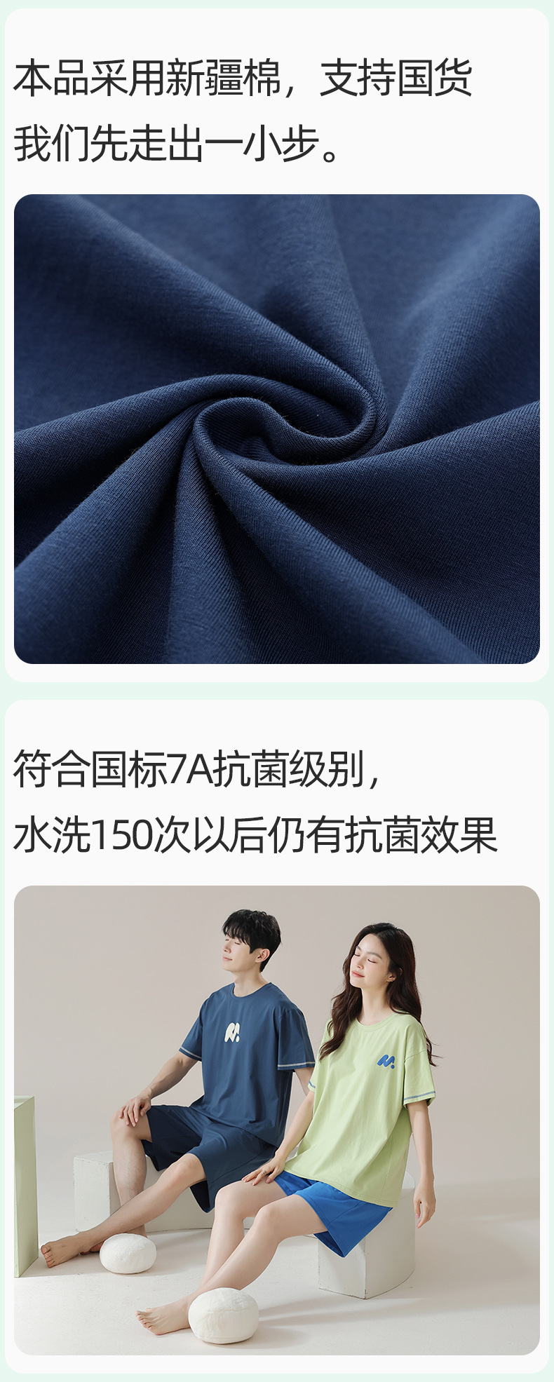 "雀说 【抗菌拉架棉】夏季情侣睡衣短袖纯棉休闲可外穿套装 4ZF-3E2800"