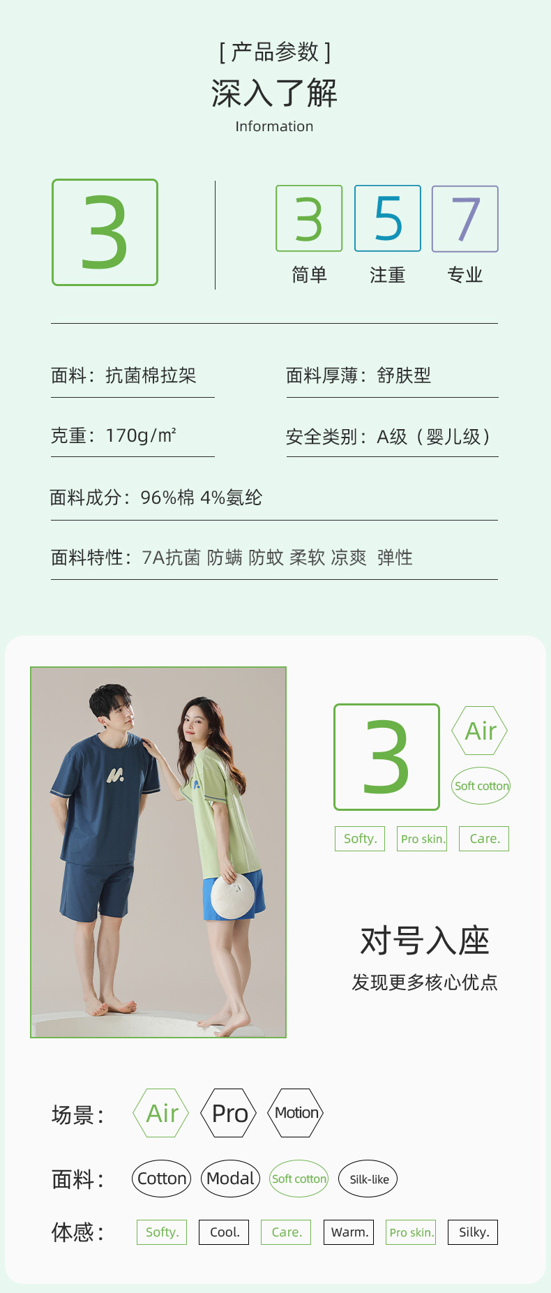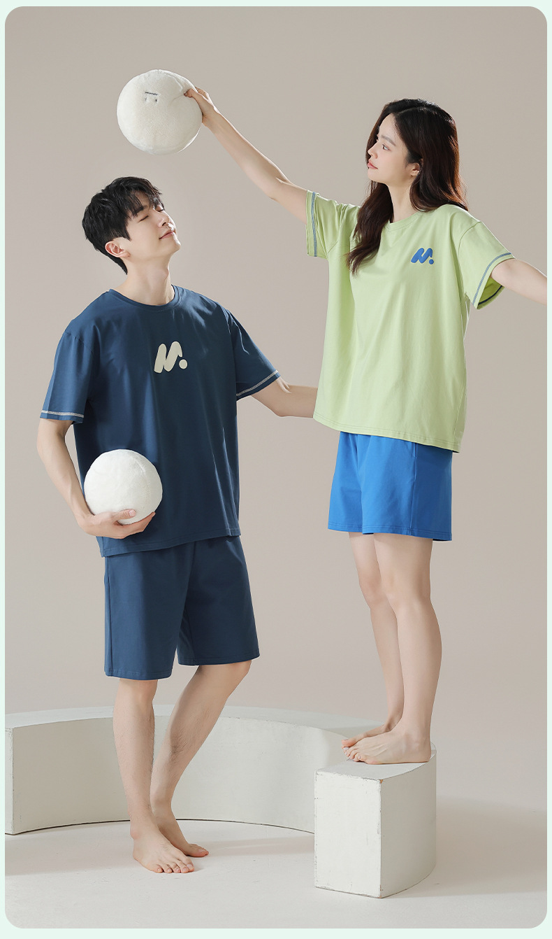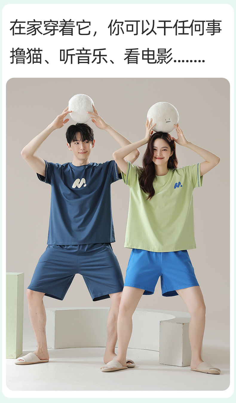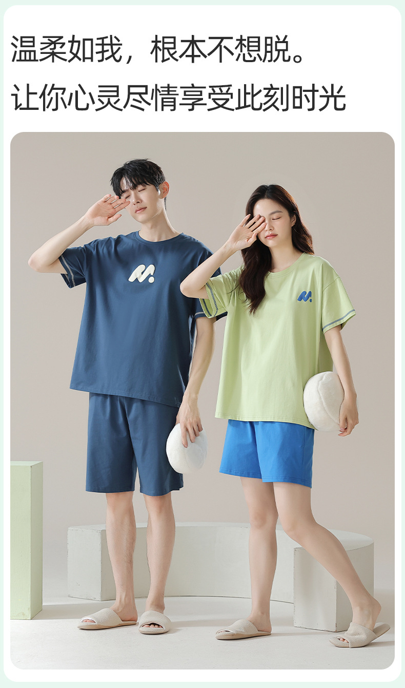 "雀说 【抗菌拉架棉】夏季情侣睡衣短袖纯棉休闲可外穿套装 4ZF-3E2800"