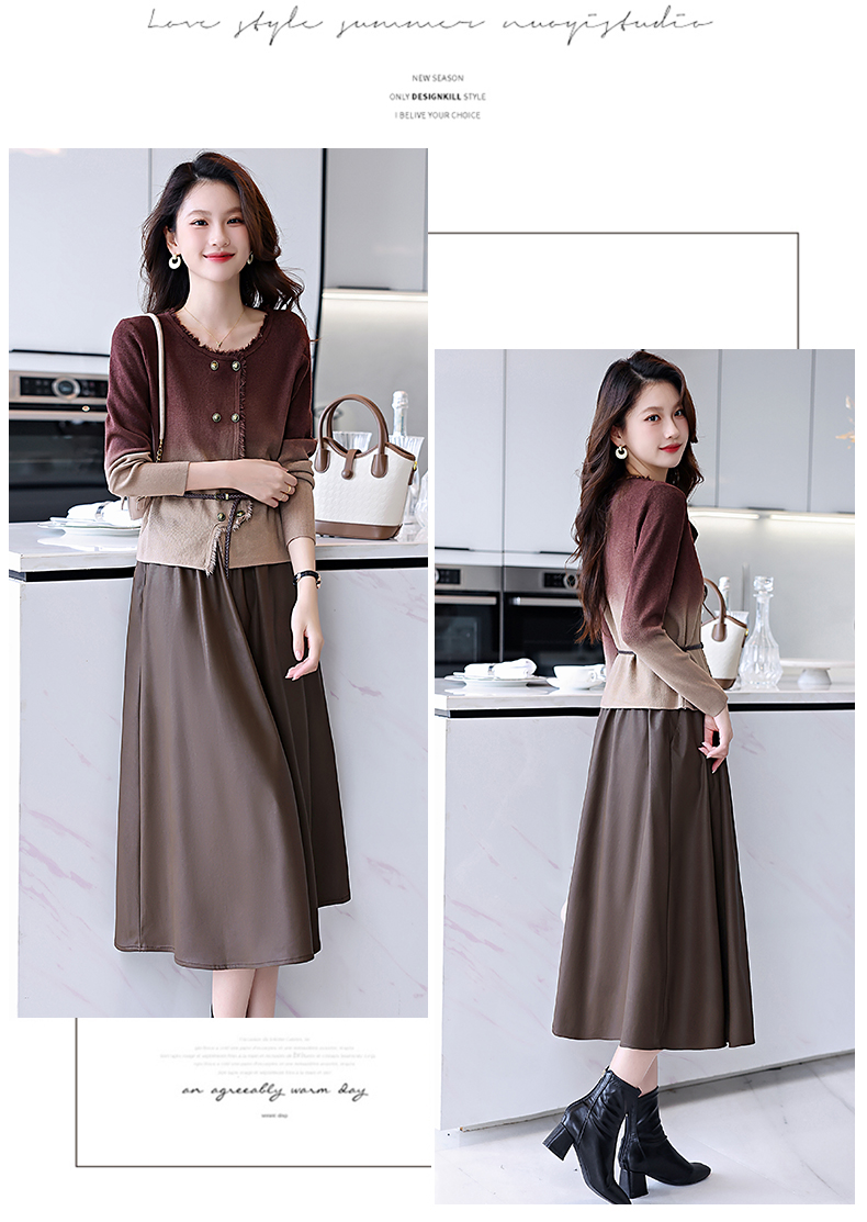 法式时尚潮流针织上衣,修身半裙两件套套装裙HR-ABS80138