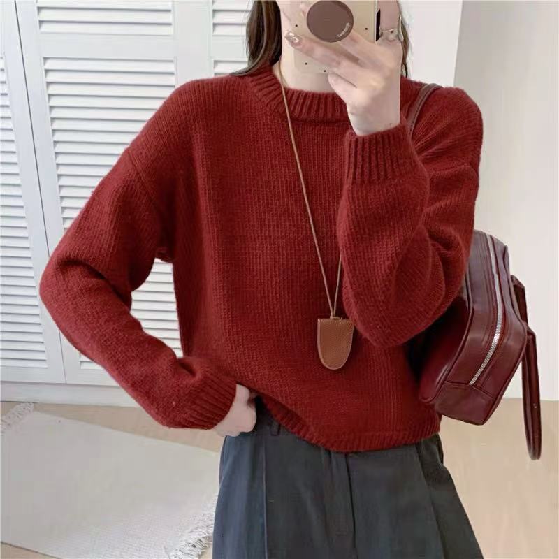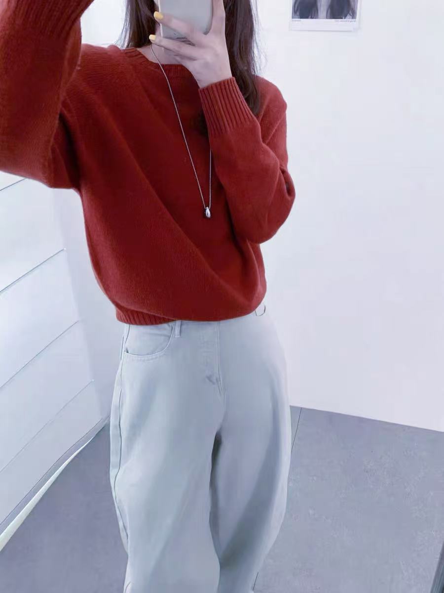 【孤品捡漏】(样衣)G68 橙红圆领简约针织毛衣-喜出