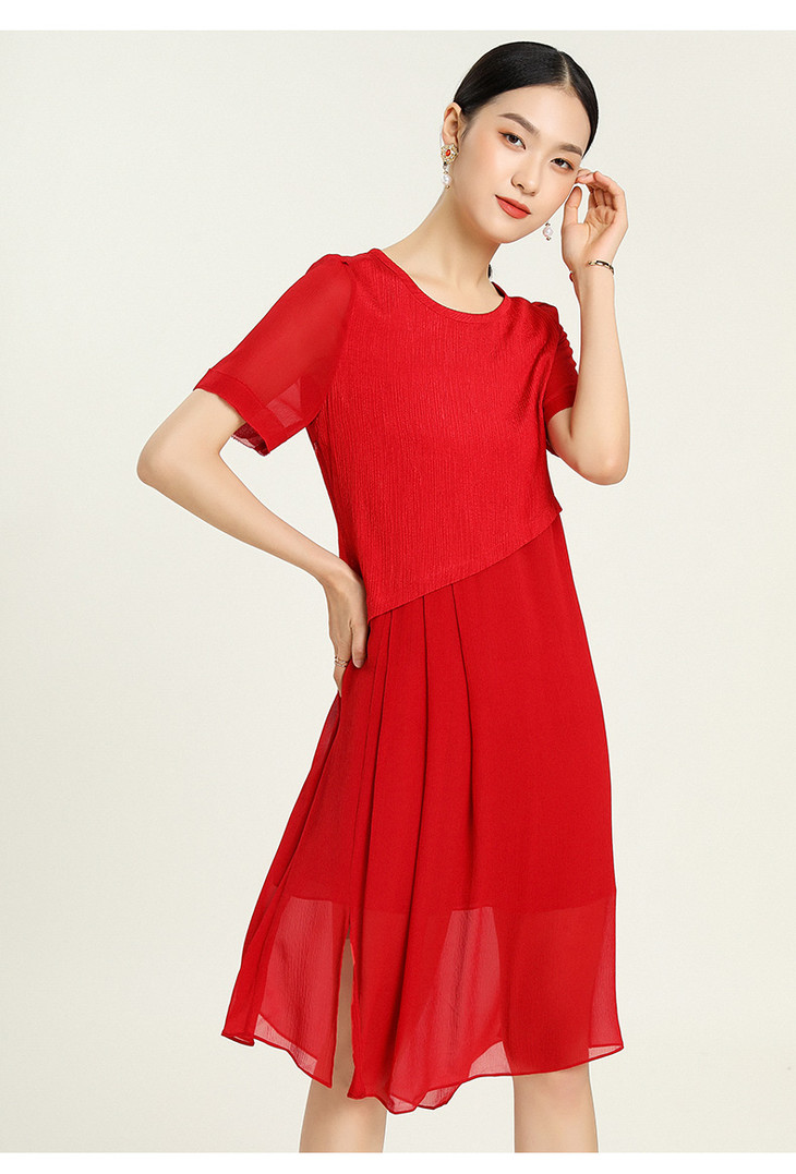 乔万尼夏季简约修身桑蚕丝真丝连衣裙女短袖显瘦中长款女中长裙EB2E905